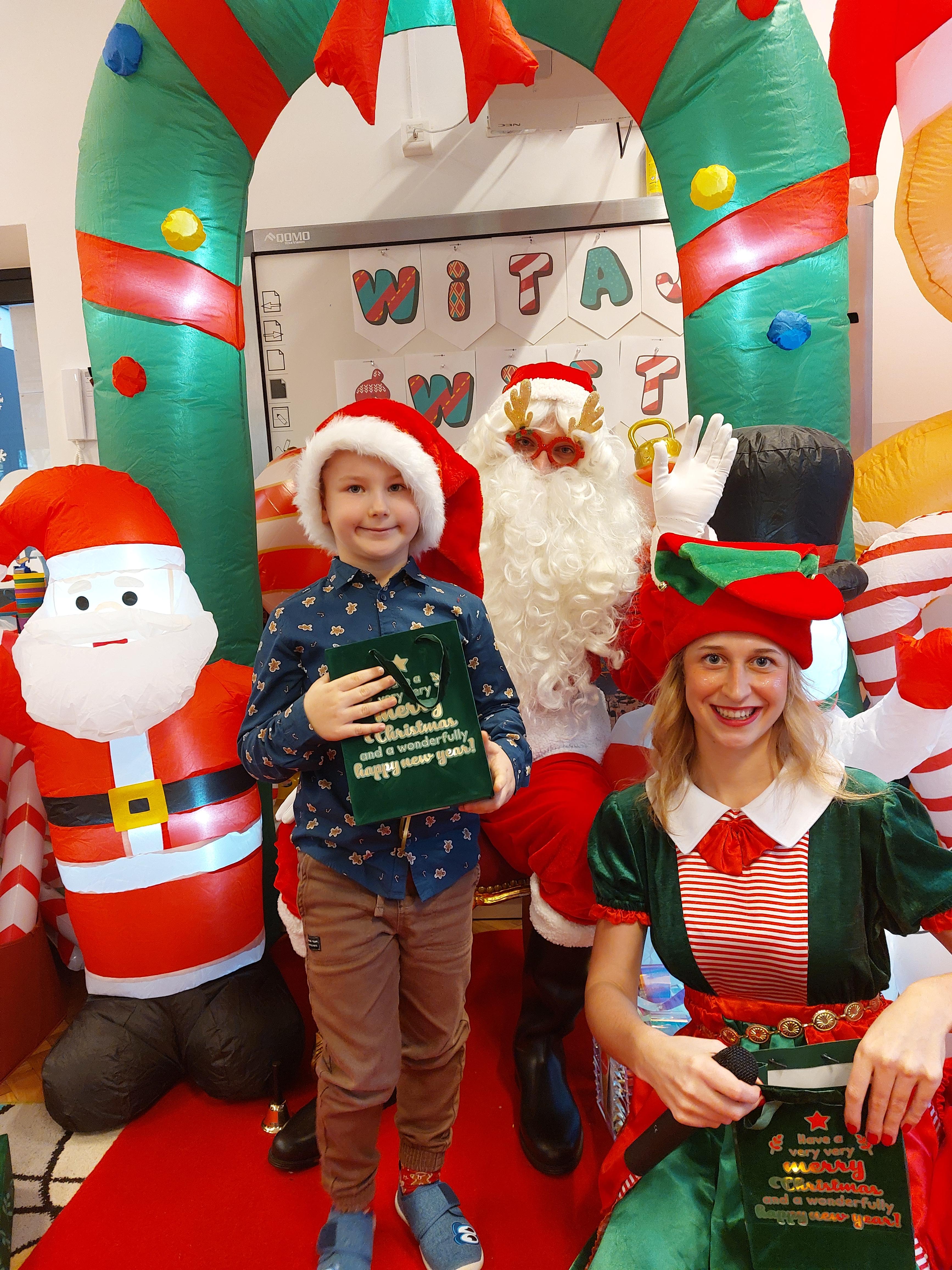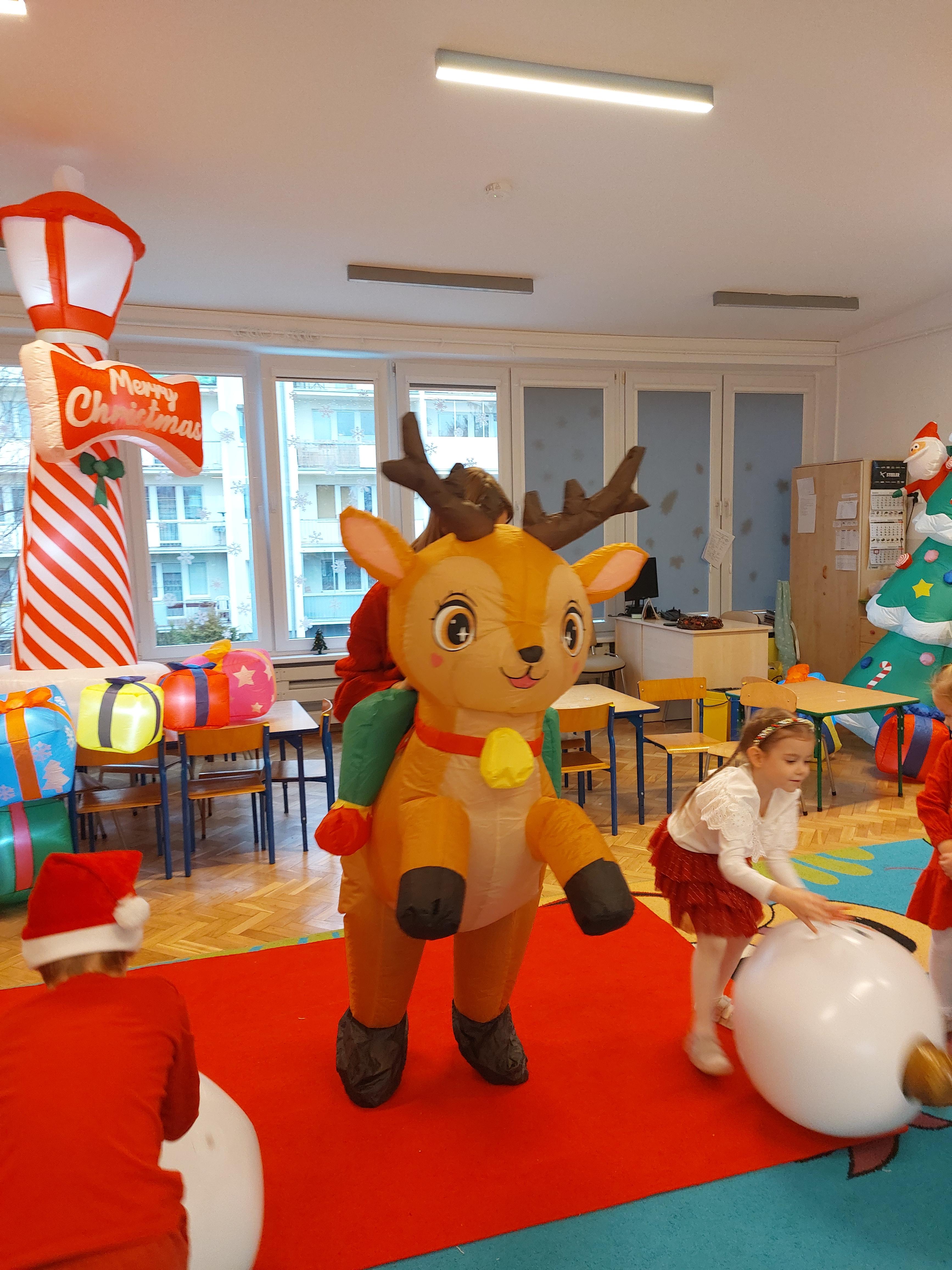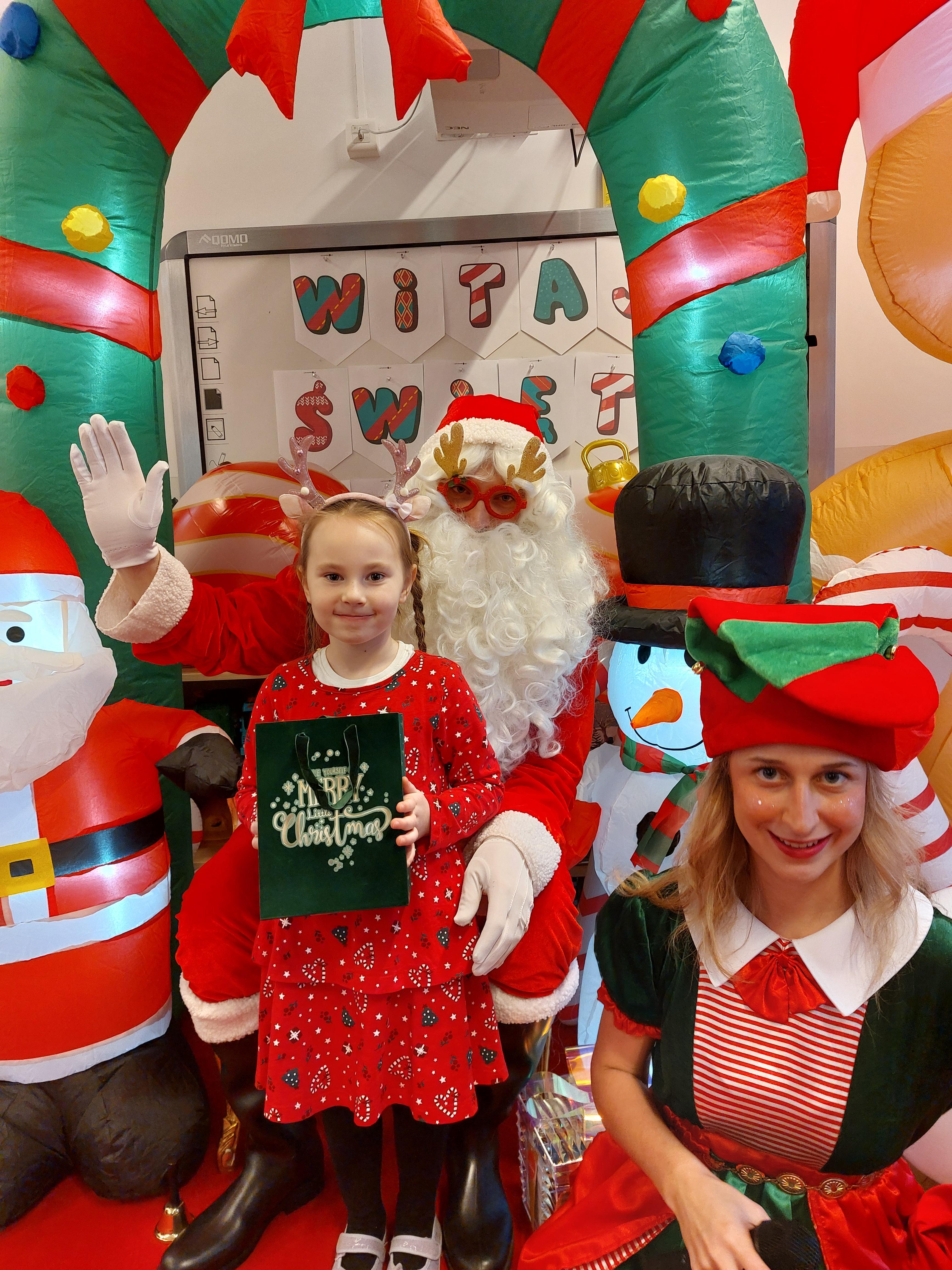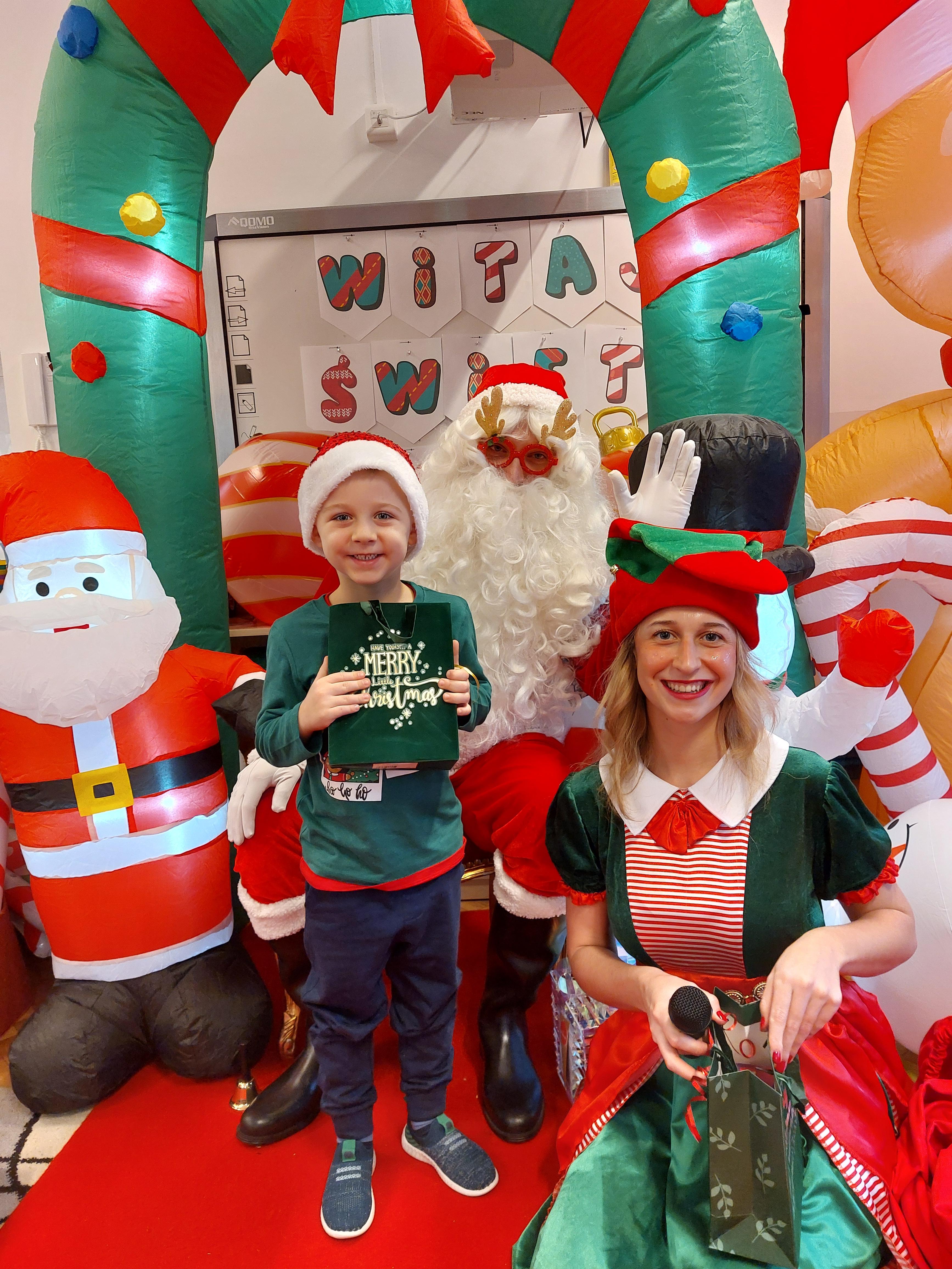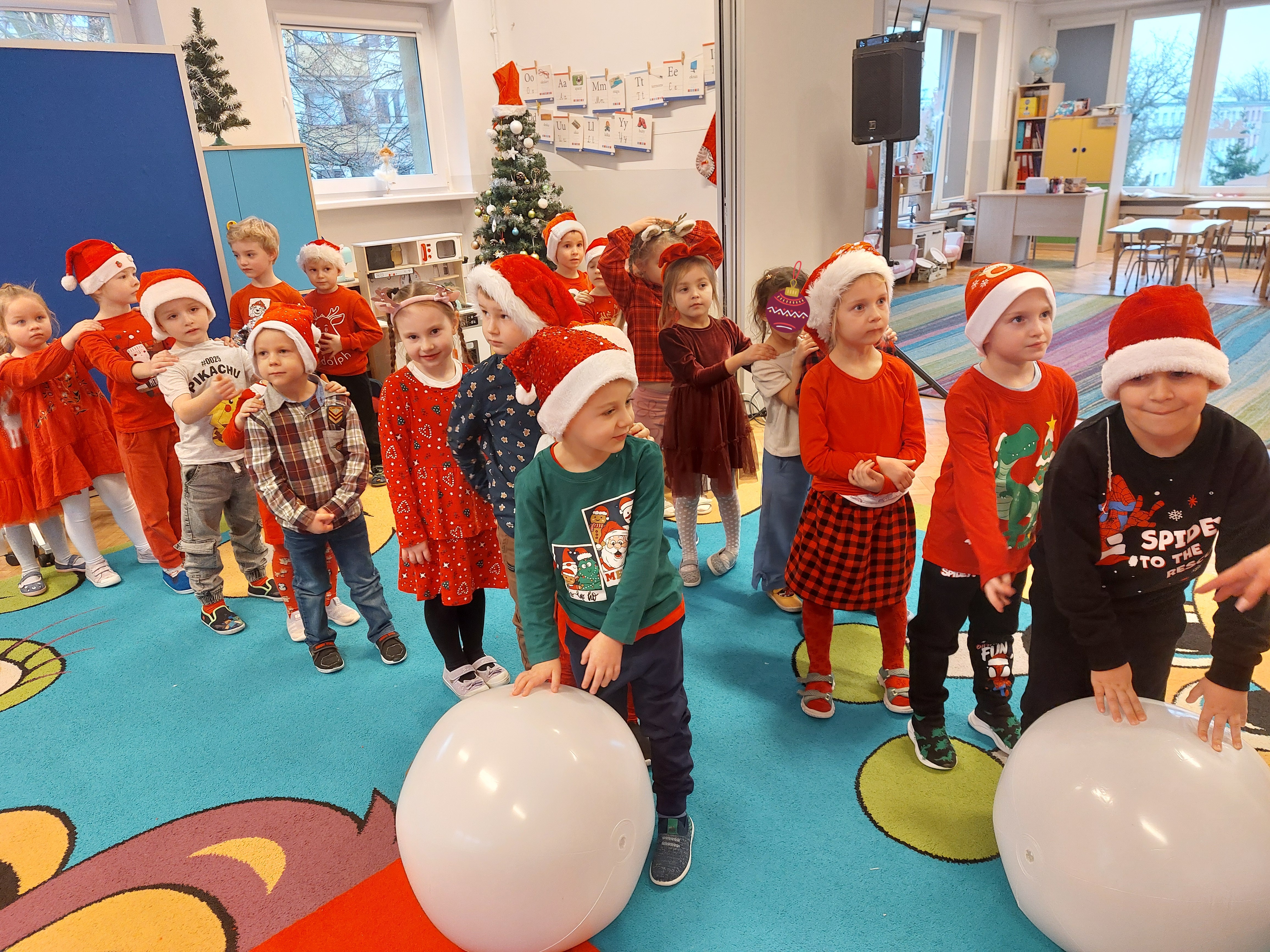 3 grudnia obchodziliśmy w naszym przedszkolu mikołajki. Tego dnia odwiedził nas wyjątkowy gość - Mikołaj, wraz ze swoimi sympatycznymi elfkami. To była prawdziwa impreza! Zaczęliśmy zabawami przy świątecznych piosenkach, później były zawody w toczeniu ogromnej bombki i reniferkowy pociąg. Choć prawdziwa zima do nas jeszcze nie zawitała, elfki sprawiły, że w sali spadł na nas prawdziwy śnieg! Po tych ekscytujących zabawach nastąpiła główna atrakcja dnia - do sali wszedł prawdziwy Mikołaj, dźwigając ogromny worek pełen prezentów! To nie był koniec zabaw - wspólnie z Mikołajem bawiliśmy się w ,,pytanie czy zadanie", zatańczyliśmy, a na koniec nadszedł czas, aby Mikołaj rozdał dzieciom wyczekiwane przez nie niespodzianki. Emocjom nie było końca!