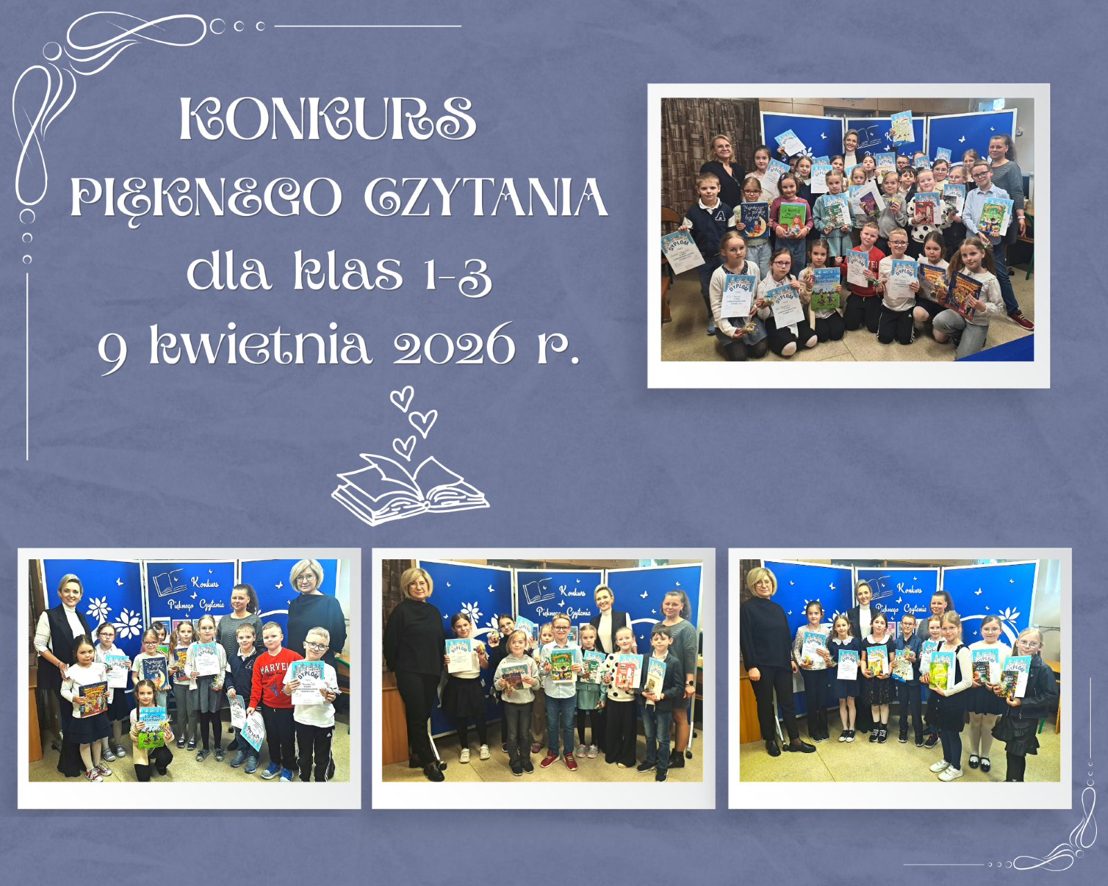 Wyrazy wdzięczności kieruję również do wszystkich uczniów biorących udział w konkursie – za odwagę, zaangażowanie i piękne interpretacje czytanych fragmentów lektur. Szczególne gratulacje składam zdobywcom tytułu Mistrza Pięknego Czytania. Życzymy Wam dalszych sukcesów oraz powodzenia w etapie powiatowym.