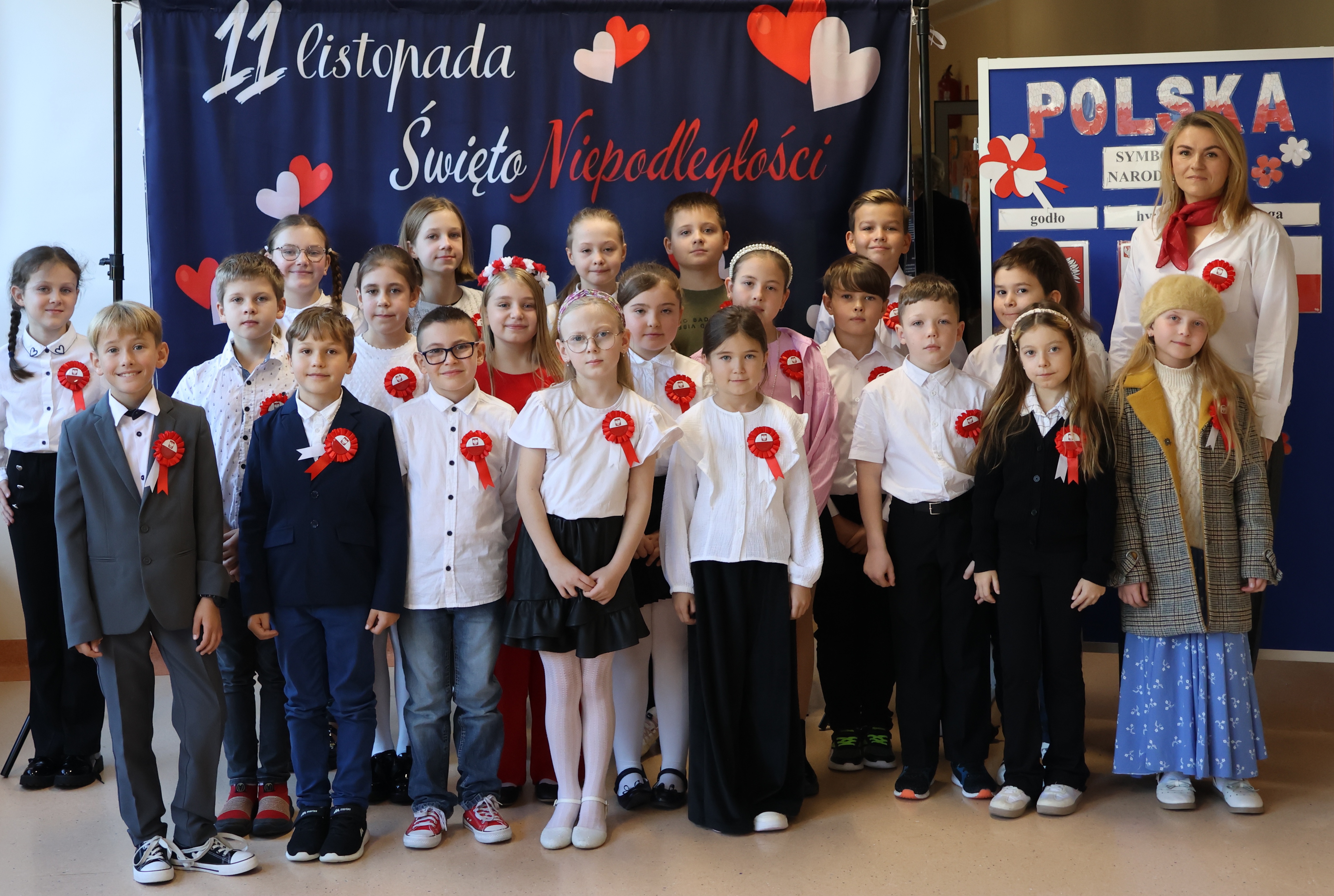 Całość uświetniły piękne piosenki patriotyczne, w tym „Flaga Polski” i „Zachwyca nas Polska”, a także wspólne odśpiewanie hymnu narodowego. Uroczystość była pełna wzruszeń i dumy z bycia Polakiem, a młodzi aktorzy z klasy 3a pokazali, że patriotyzm można wyrażać słowem, śpiewem i gestem.