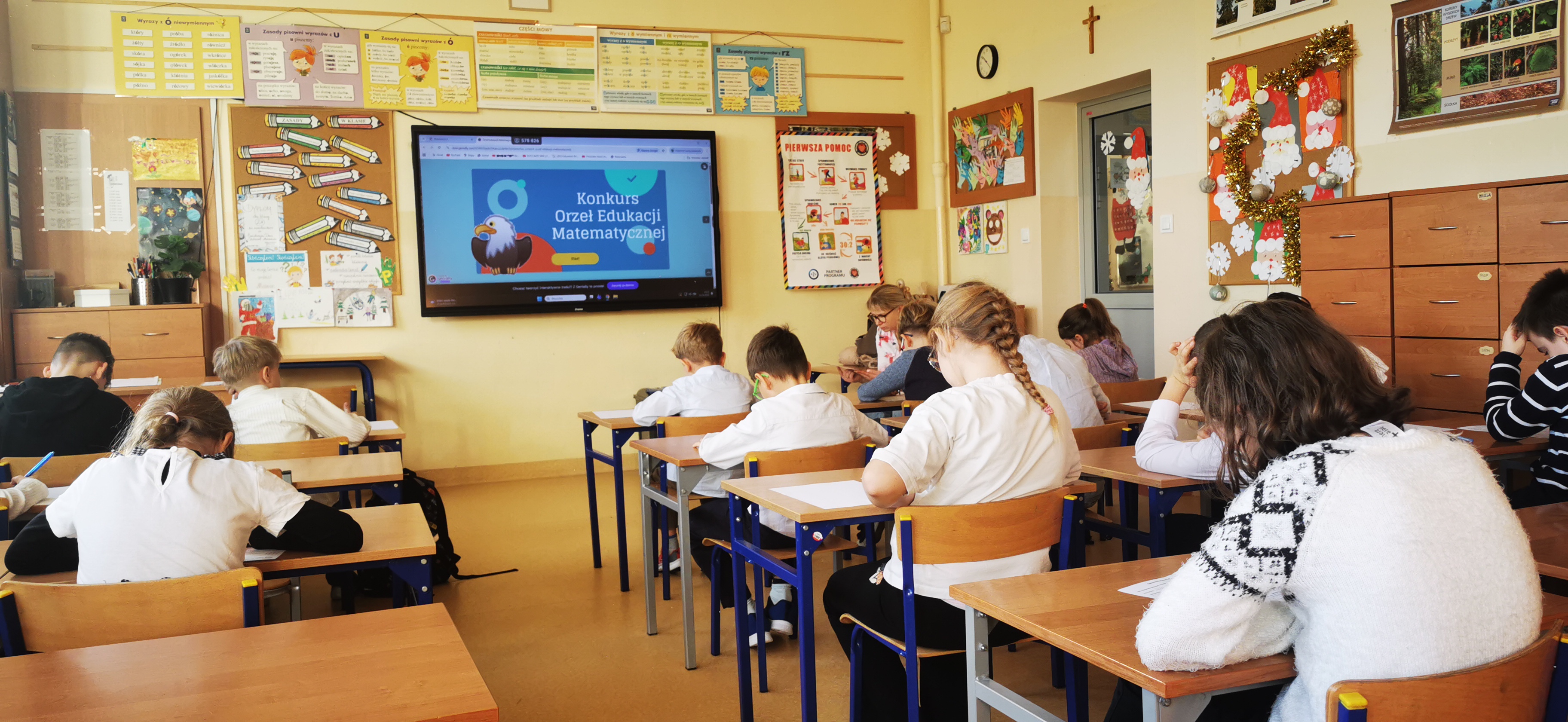Dnia 11 grudnia 2025 r. w naszej szkole odbył się Ogólnopolski Konkurs „Orzeł Matematyczny” przeznaczony dla uczniów klas II- III. Zainteresowani uczniowie klas I rozwiązywali test w kategorii wiekowej przeznaczonej dla klas II. Konkurs rozgrywany był w dwóch kategoriach wiekowych: