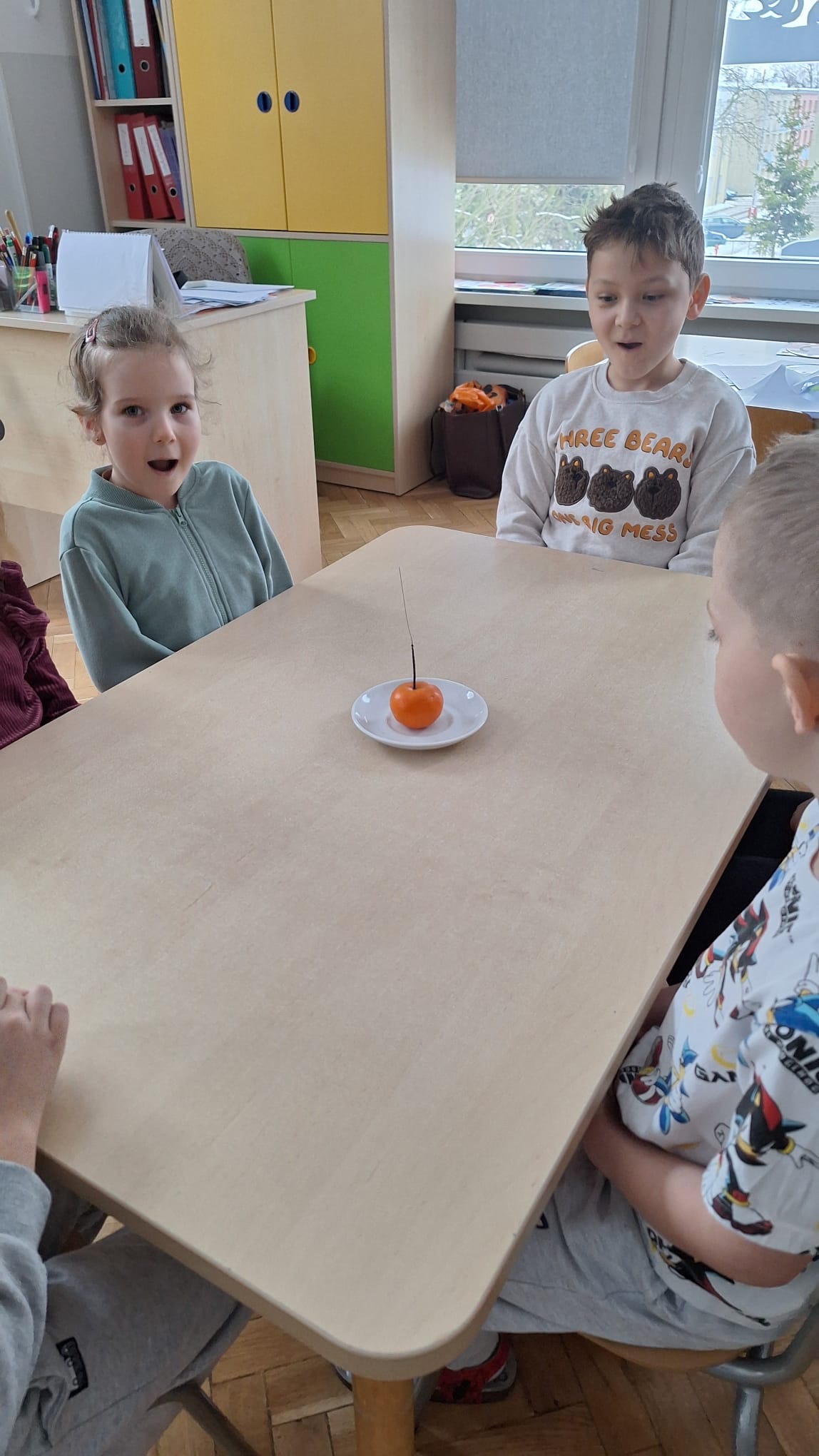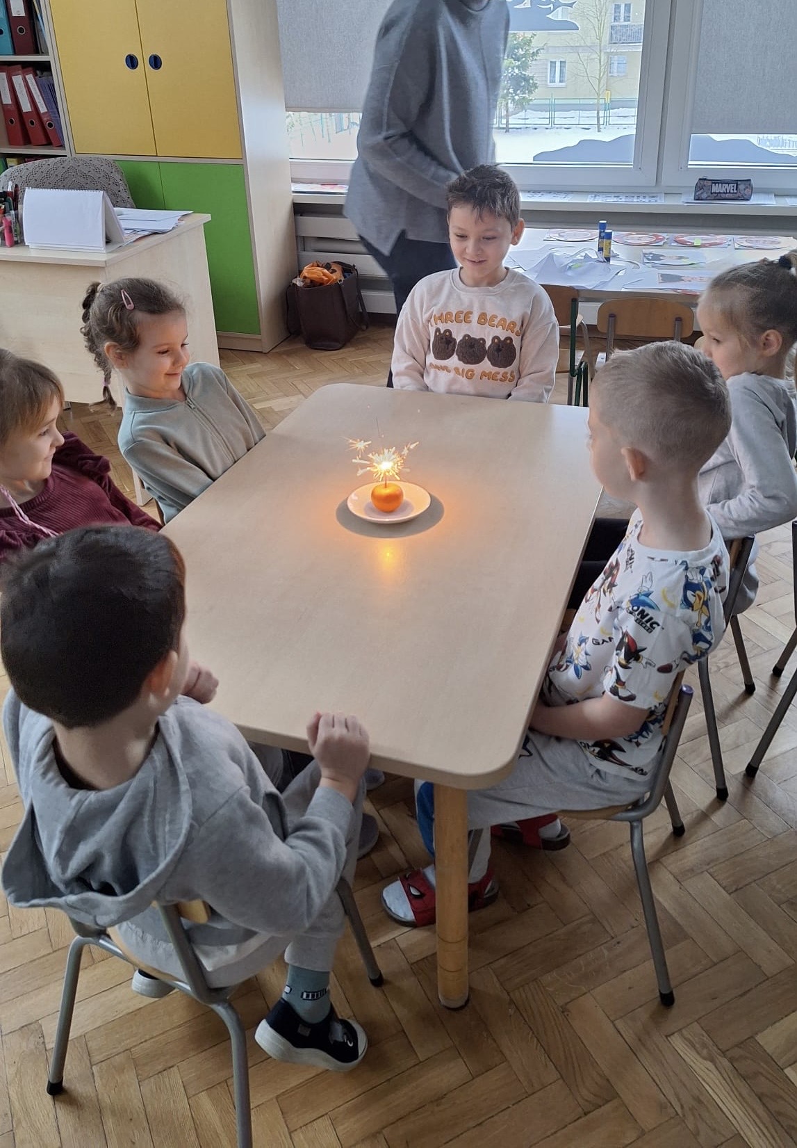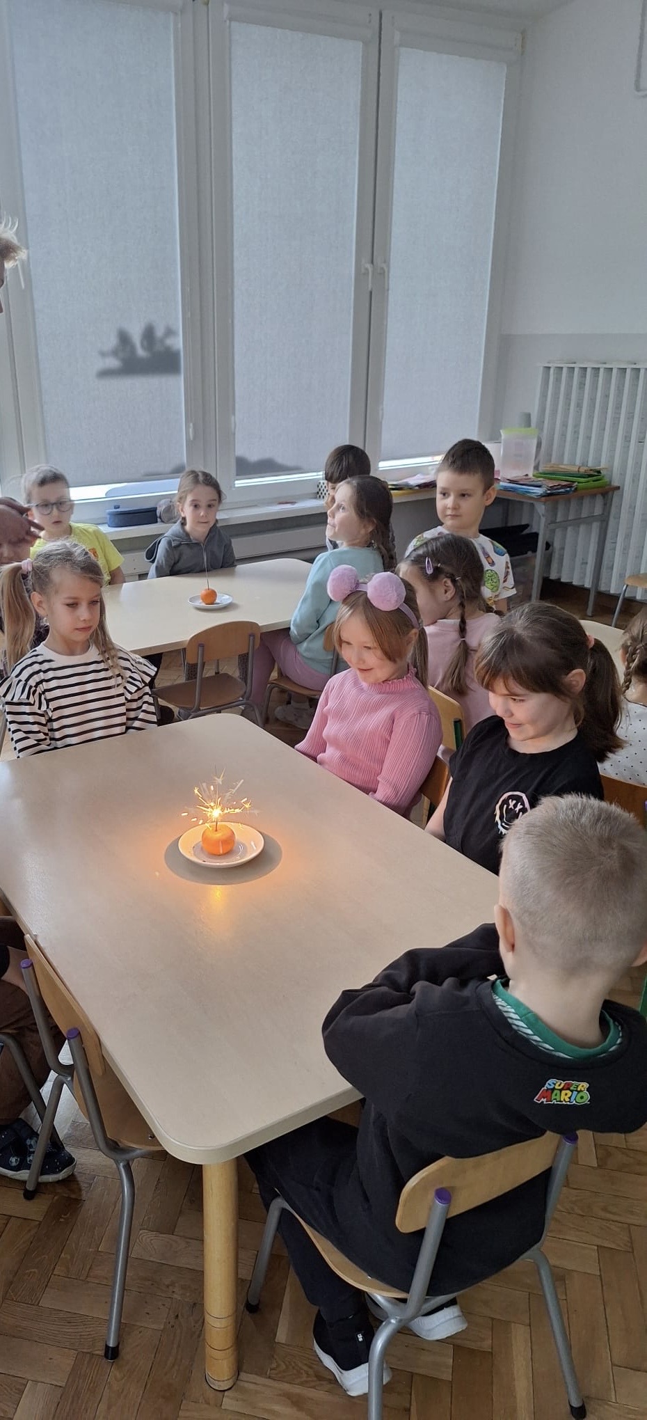 Grupa „0b” z Oddziałów Przedszkolnych przy Szkole Podstawowej nr 2 w Pruszczu Gdańskim wykonała V zadanie – „Matematyczne eksperymenty”. Dzieci podczas zajęć miały możliwość doświadczenia prawdziwej ekscytacji. Do realizacji tego zadania potrzebne były: mandarynka oraz zimne ognie. Po wypaleniu się zimnego ognia mandarynka zaczynała się świecić, co wzbudziło wśród dzieci ogromne zainteresowanie i radość. Było to niezwykłe doświadczenie, które połączyło naukę z zabawą i pozwoliło najmłodszym odkrywać świat poprzez eksperymentowanie.