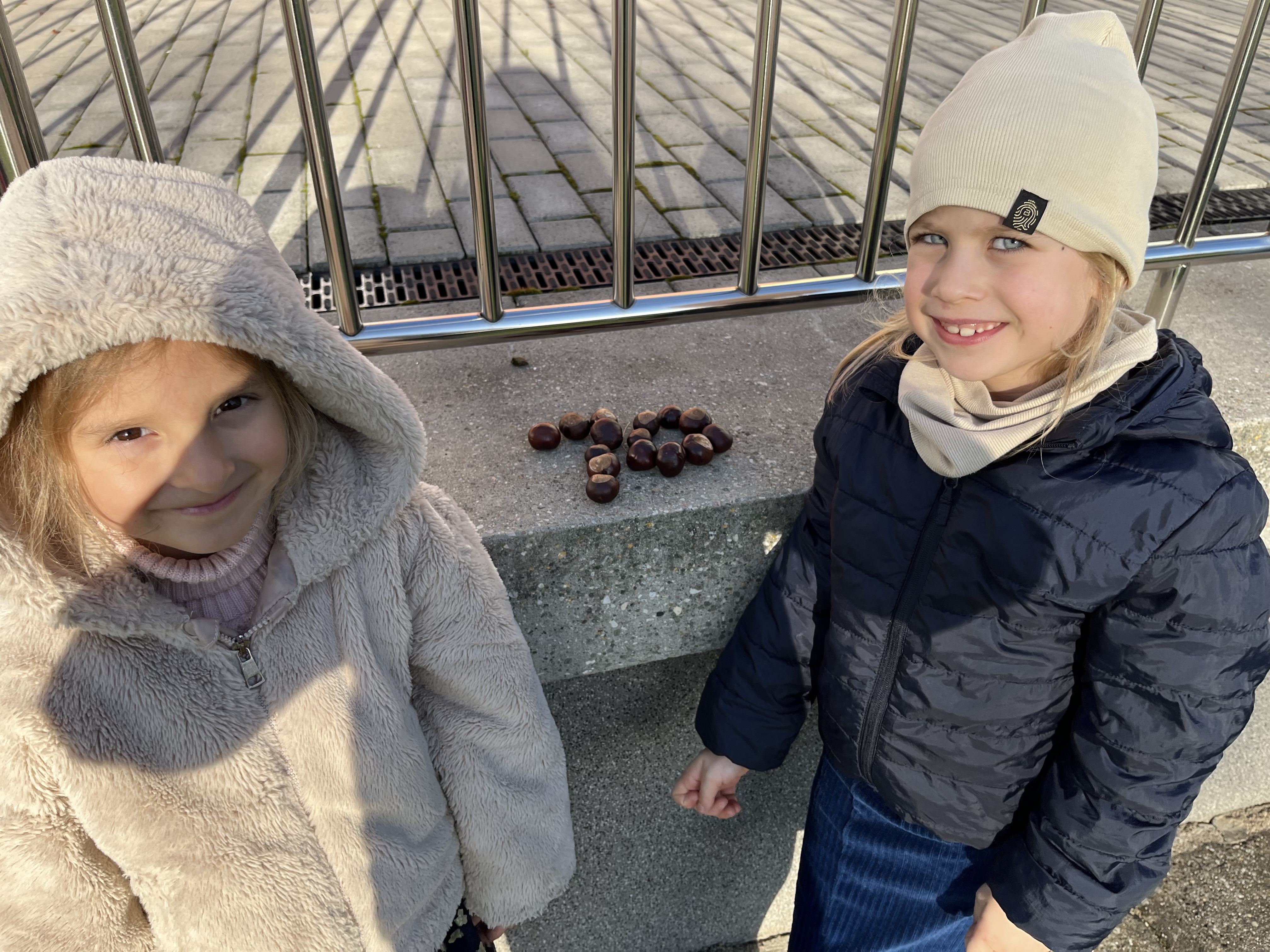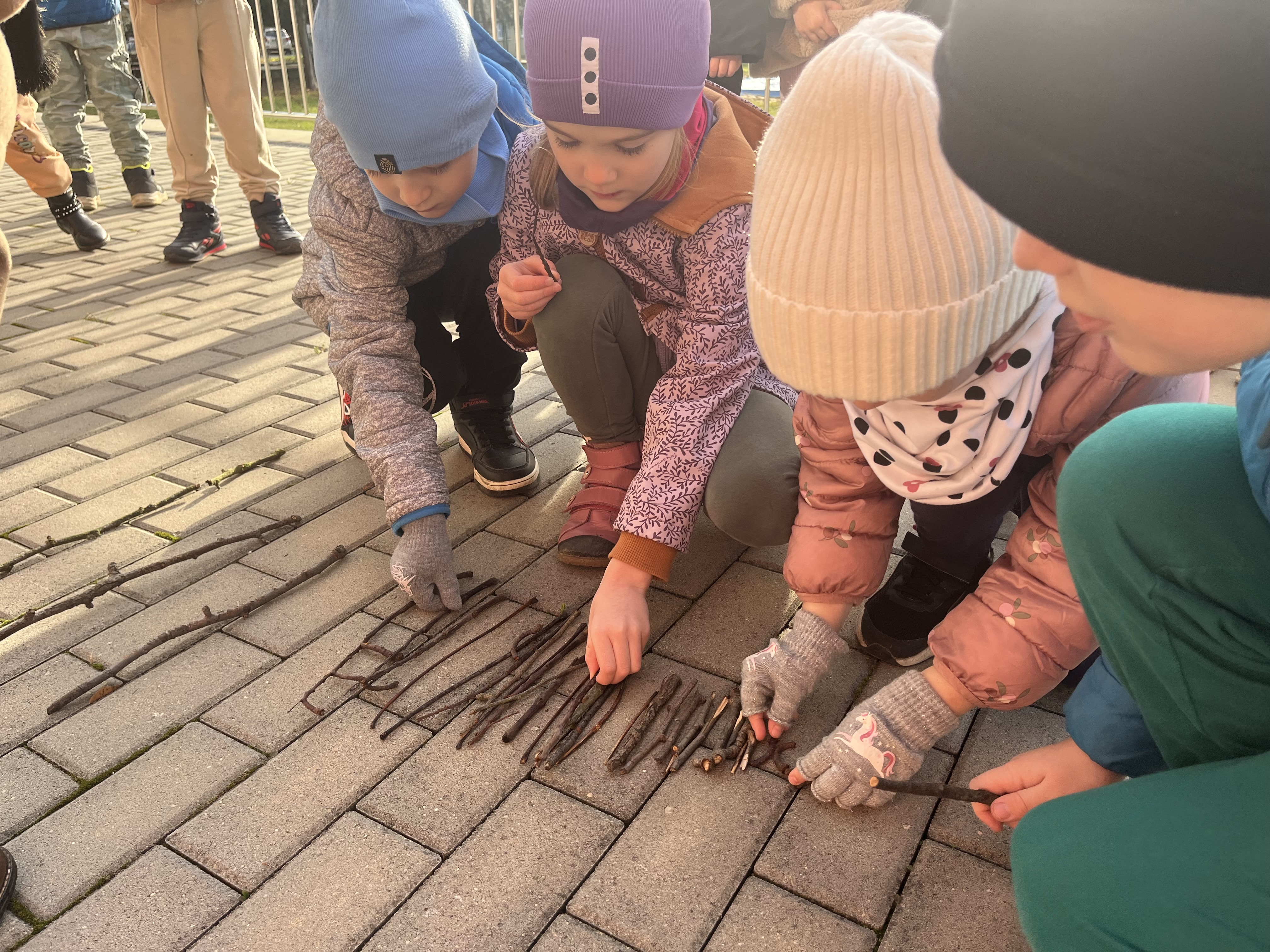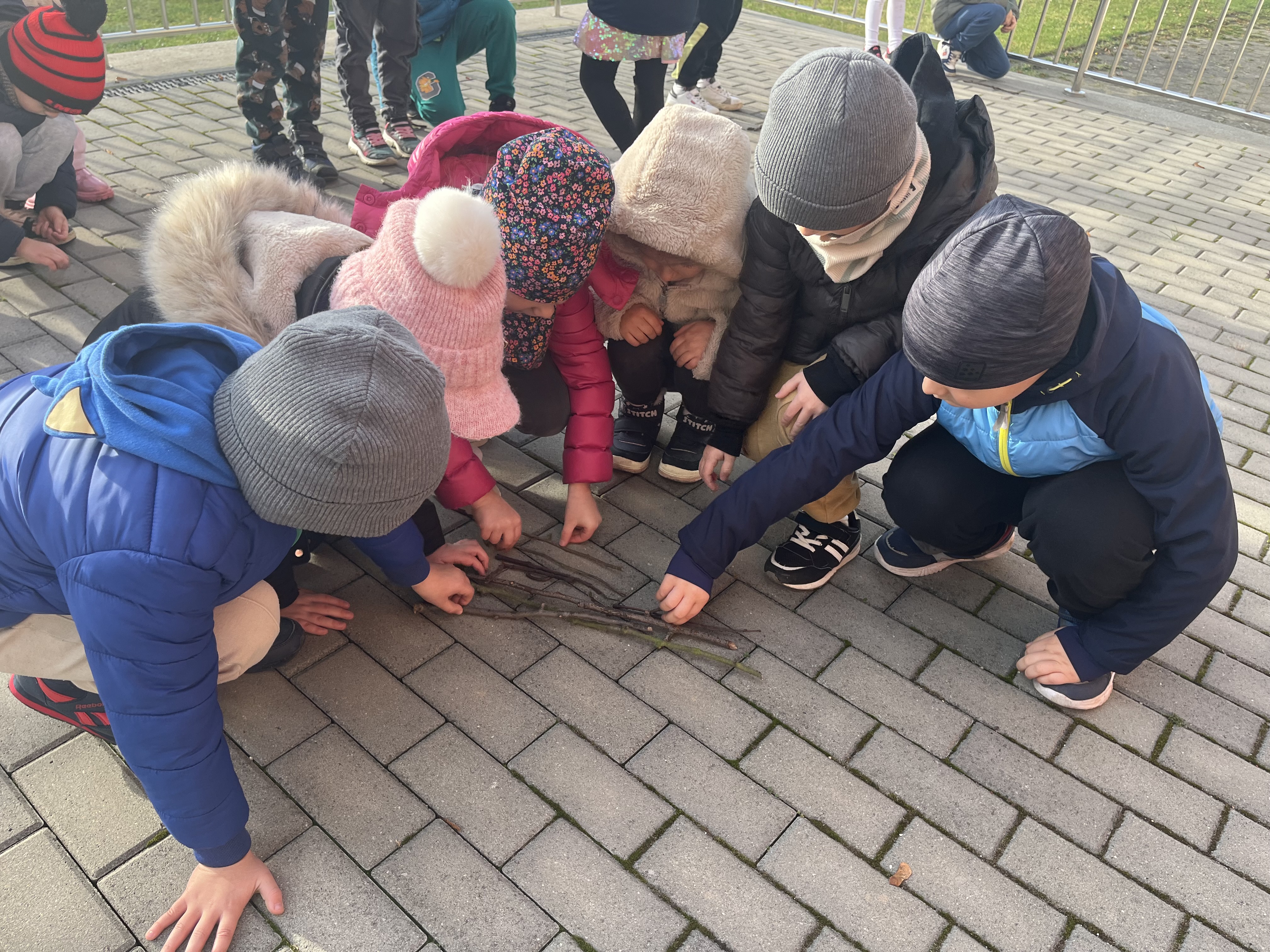 Grupa 0b z Oddziałów Przedszkolnych przy Szkole Podstawowej nr 2 im. Mikołaja Kopernika w Pruszczu Gdańskim melduje wykonanie pierwszego zadania – „Matematyka w plenerze”. Zabawy z porównywaniem długości patyków oraz układaniem ich od najmniejszego do największego przyniosły nam mnóstwo radości. Z darów jesieni ćwiczyliśmy także rozpoznawanie oraz układanie cyfr z kasztanów.