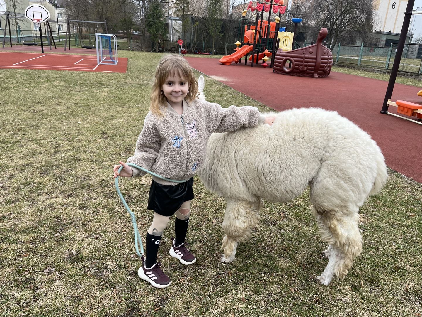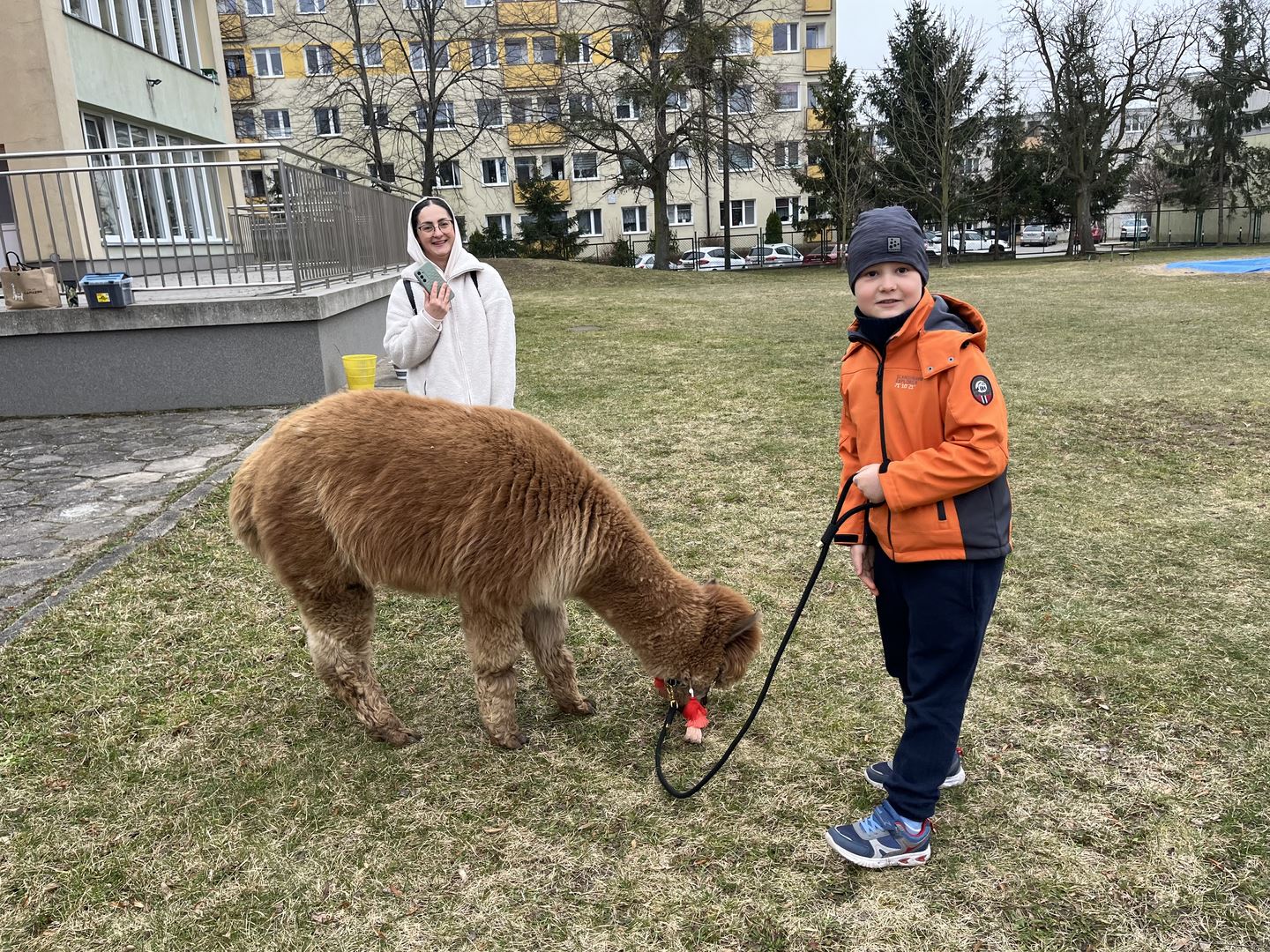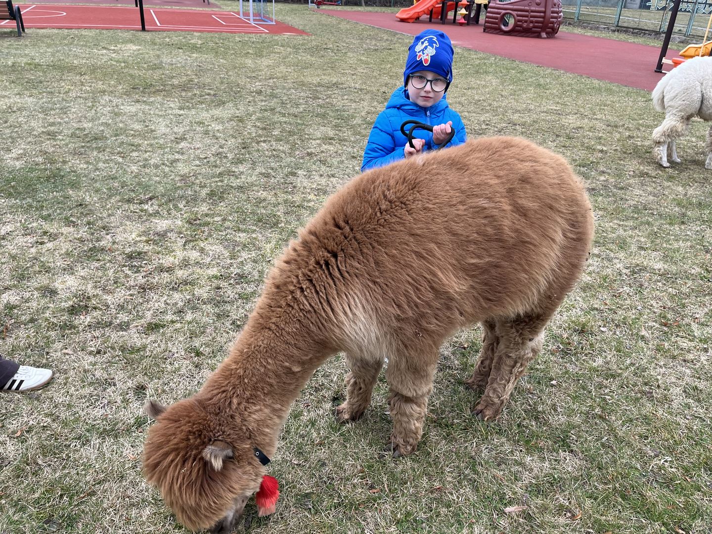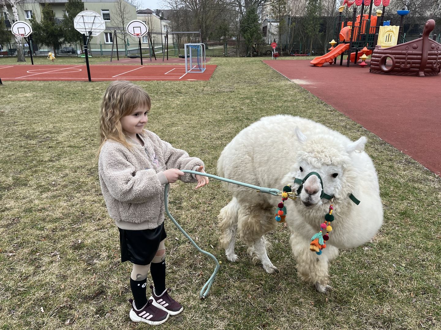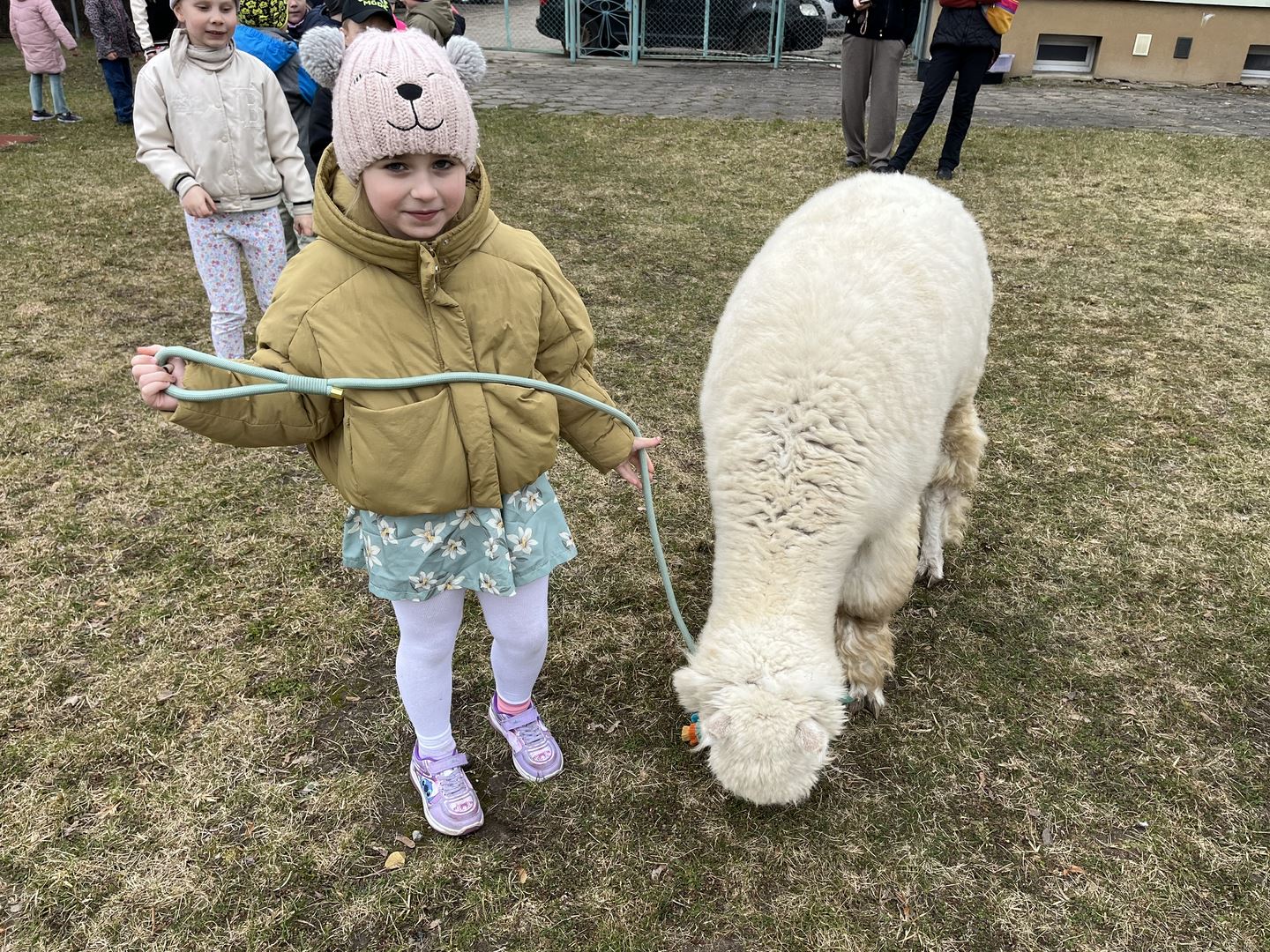 Niespodzianką dla dzieci było spotkanie z wyjątkowymi gośćmi – lamami. Dzieci dowiedziały się, czym się odżywiają, jak się zachowują oraz miały okazję wspólnie z nimi pospacerować, co sprawiło im wiele radości.