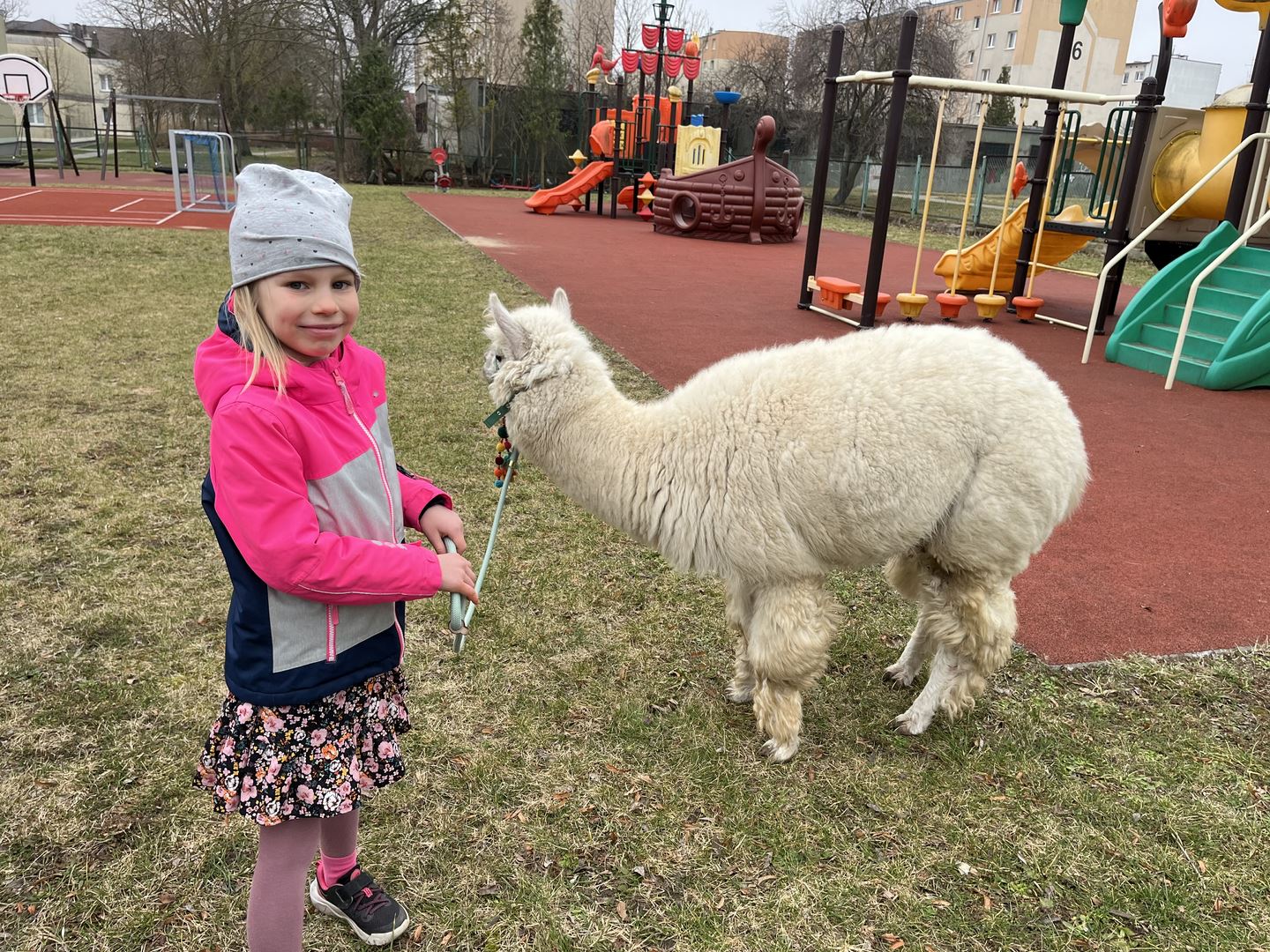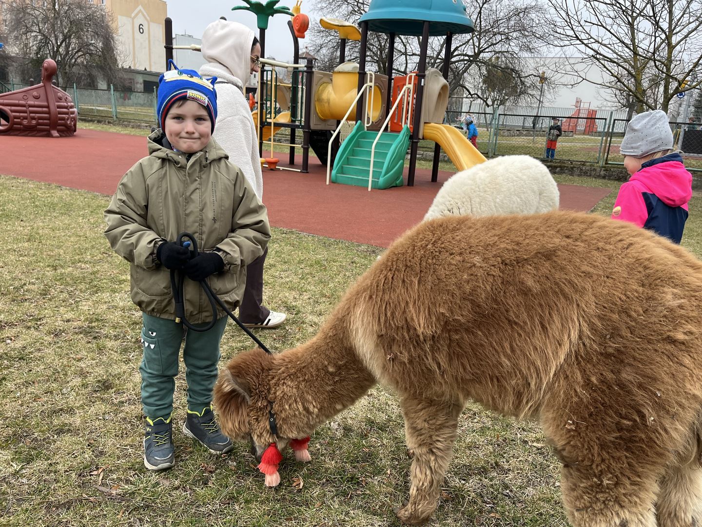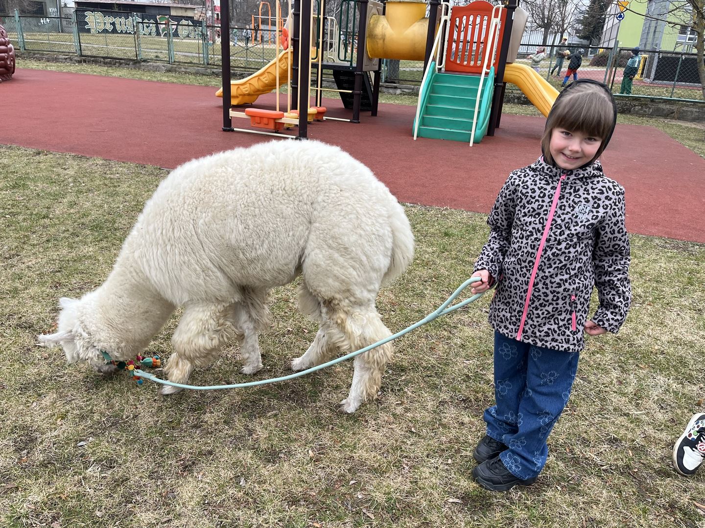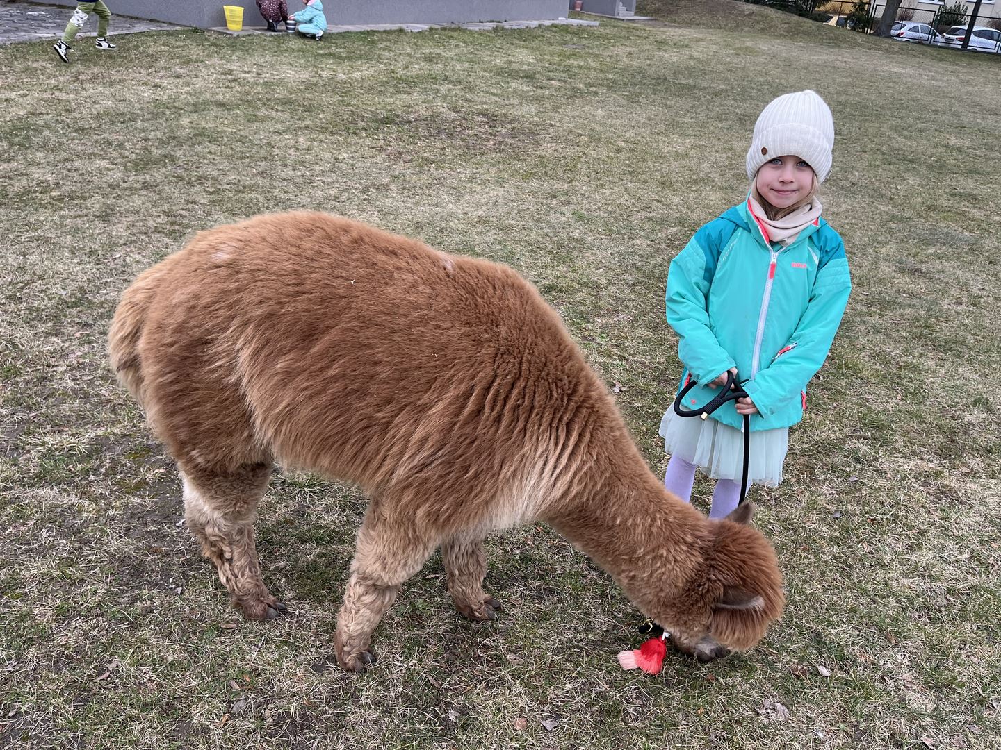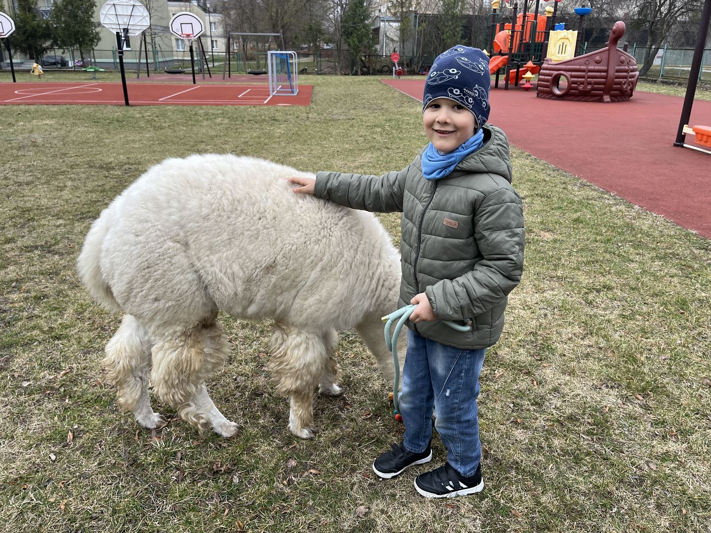 Niespodzianką dla dzieci było spotkanie z wyjątkowymi gośćmi – lamami. Dzieci dowiedziały się, czym się odżywiają, jak się zachowują oraz miały okazję wspólnie z nimi pospacerować, co sprawiło im wiele radości.