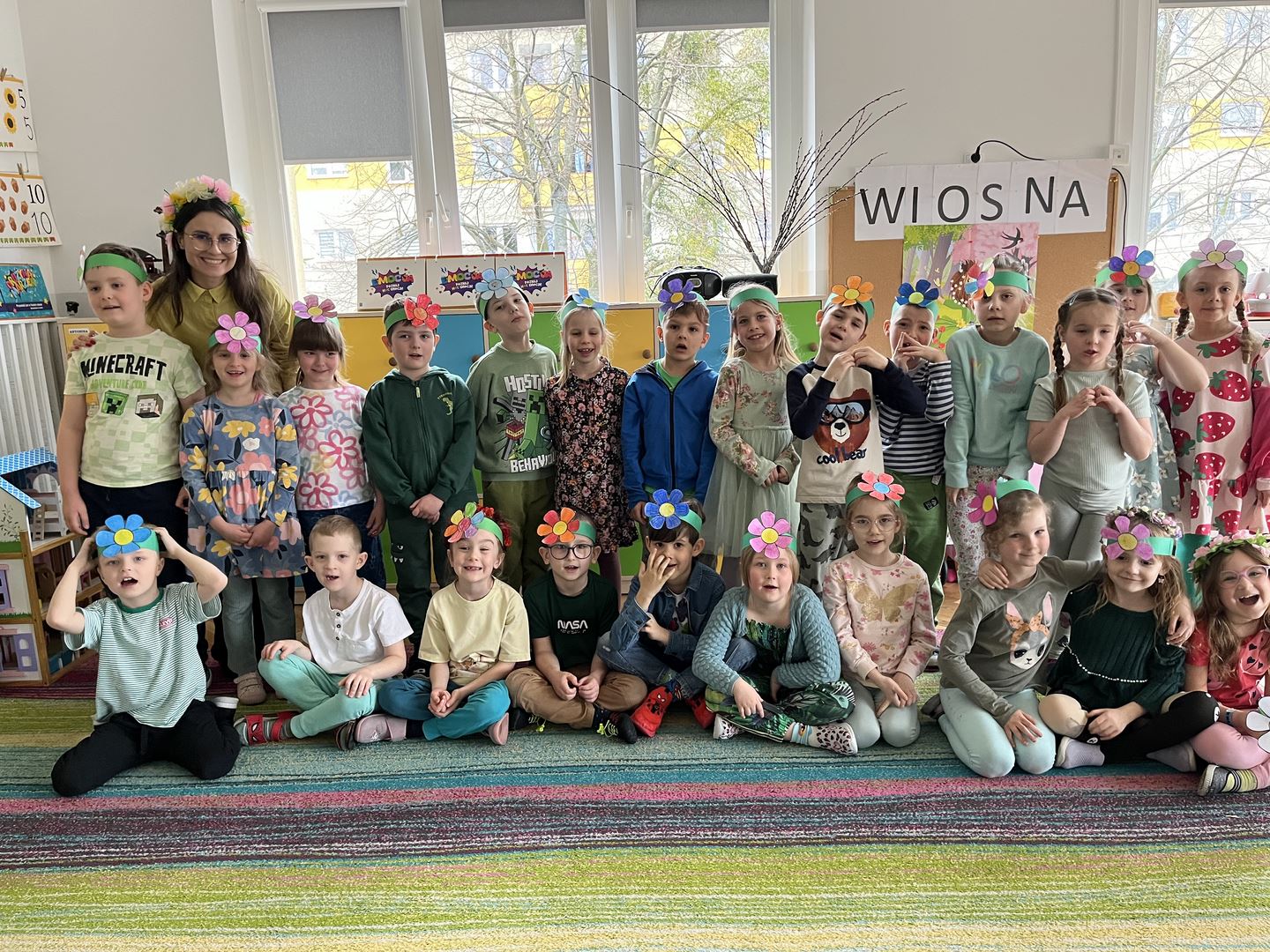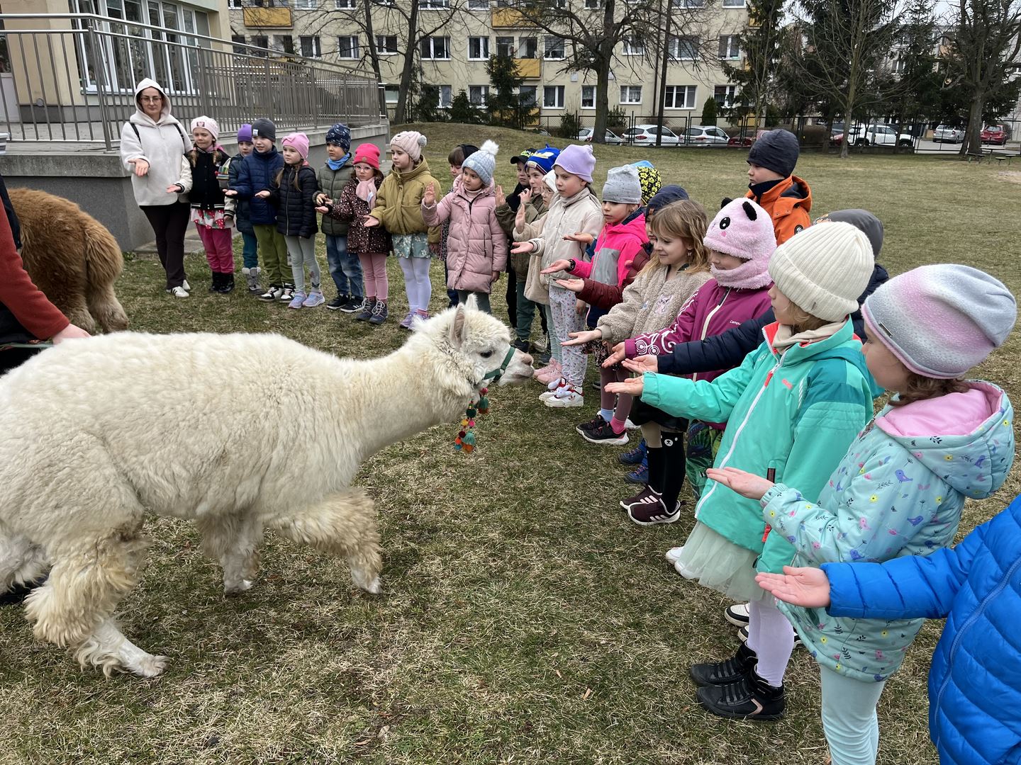 "Wiosna, wiosna, ach to Ty..."- słowa znanej piosenki doskonale oddają nastrój, jaki towarzyszył obchodom Pierwszego Dnia Wiosny w naszym przedszkolu. Tego dnia dzieci ze wszystkich grup przedszkolnych przyszły ubrane w wiosenne stroje, wprowadzając kolorową pogodną atmosferę. W ramach zajęć odbyło się wspólne śpiewanie piosenek o tematyce wiosennej oraz odczytanie listu od Pani Wiosny. Przedszkolaki wykonywały również prace plastyczne, rozwijając swoje zdolności artystyczne i kreatywność. Dodatkową atrakcją była wizyta alpak – Diego i Karmela. Dzieci miały możliwość bezpośredniego kontaktu ze zwierzętami, ich karmienia oraz głaskania, co dostarczyło wielu pozytywnych wrażeń. To był dzień pełen uśmiechu, zabawy i wiosennej energii, który umożliwiły dzieciom integrację, rozwijanie zainteresowań przyrodniczych oraz aktywne i radosne powitanie wiosny.