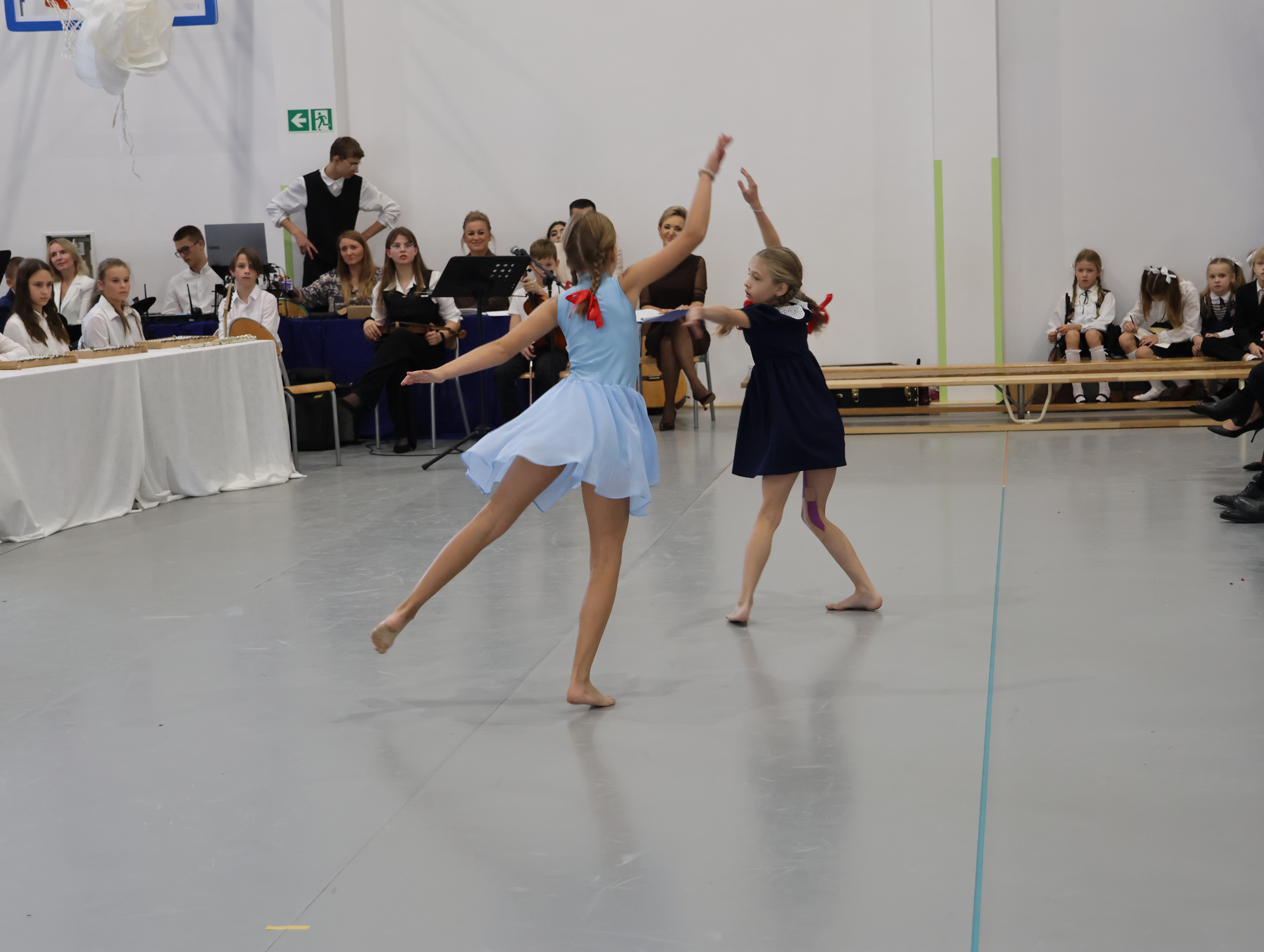 Dziękuję autorom scenariusza występu dzieci i uczniów, Pani Monice Stance – Wójcik i Pani Dorocie Jusiewicz – Sieczko, nauczycielkom przygotowującym dzieci i uczniów naszej szkoły, Paniom: Bożenie Krzyżanowskiej, Magdalenie Treder, Dorocie Gugniewicz - Bodus, Magdalenie Piotrak i Magdalenie Galin oraz wszystkim młodym artystom, za piękne występy, wzruszające prezentacje, szczególnie uczennicom, tancerkom akrobatycznym: Mai Pędzior i Hannie Filipek oraz Kyrylo Hryhorets szkolnemu pianiście. Szczególne podziękowania kieruję do Pani Joanny Mielewskiej i uczniów jej szkolnego zespołu muzycznego za oprawę muzyczną oraz Pani Monice Mróz – Madejskiej, Pani Marcie Słobodzie, Pani Elżbiecie Zwolińskiej, Pani Aleksandrze Sapielak – Martins, Panu Dariuszowi Wróblowi i wszystkim nauczycielom, którzy włączyli się w przygotowanie scenografii, która nadała uroczystości wyjątkowy charakter. Dziękuję Pani Joannie Lechowicz – Król za przygotowanie prezentacji multimedialnej pod tytułem: „Twarze naszej szkoły”, a Panu Wojciechowi Radziunowi za film o naszej szkole. Podziękowania kieruję również do Pani Pauliny Kuciny za nagłośnienie imprezy i Pani Marty Wołowczyk za fotografowanie wydarzenia.