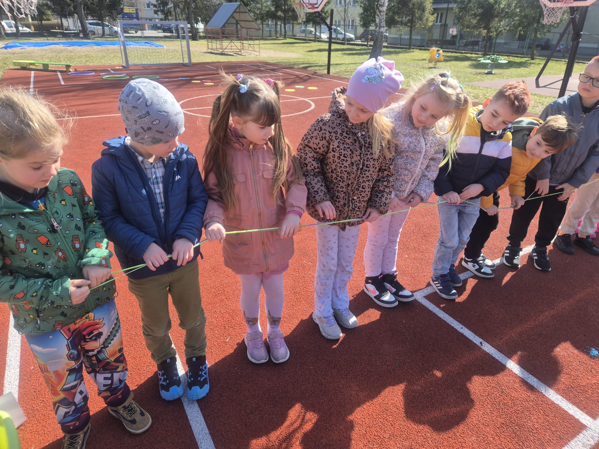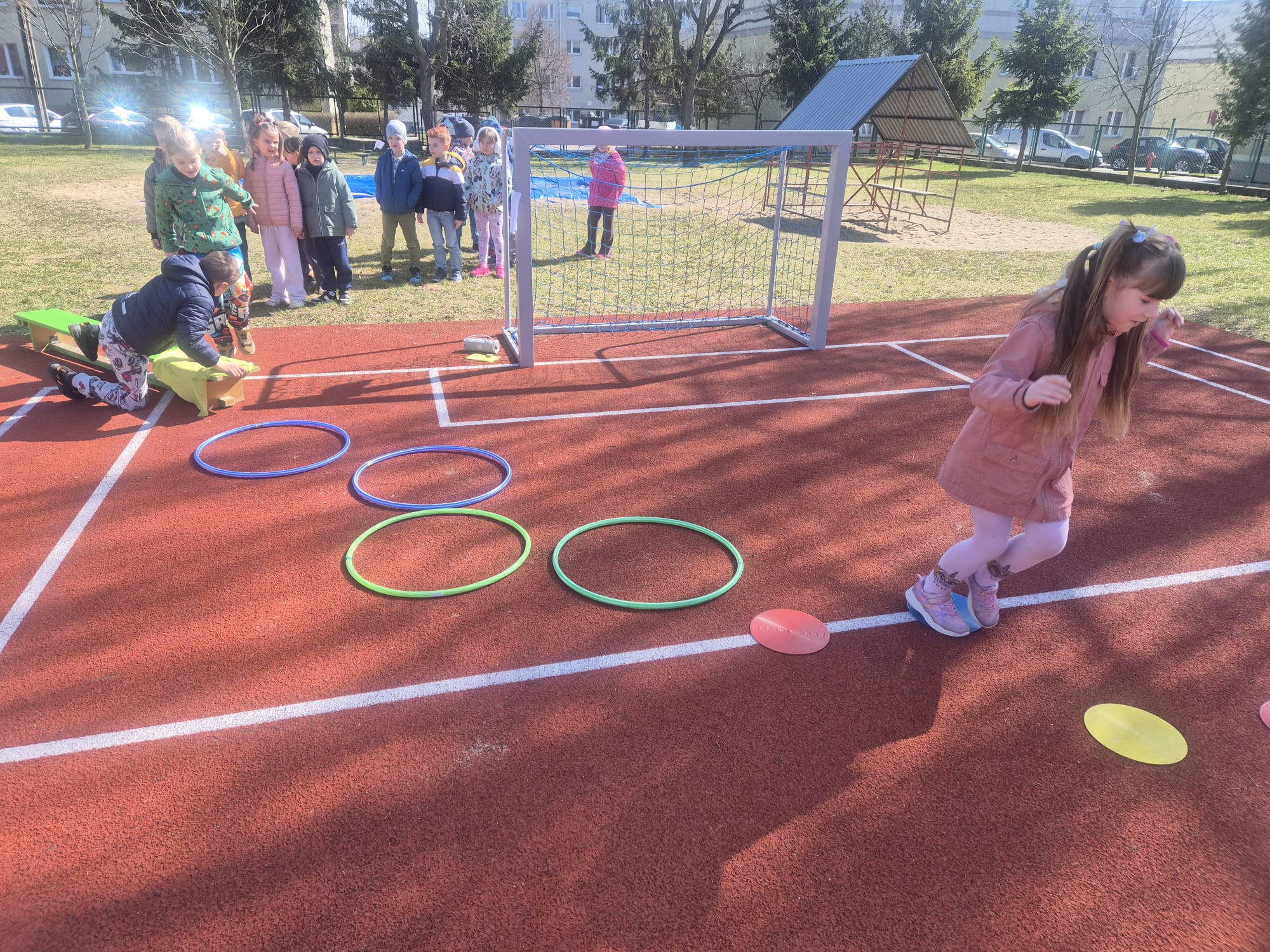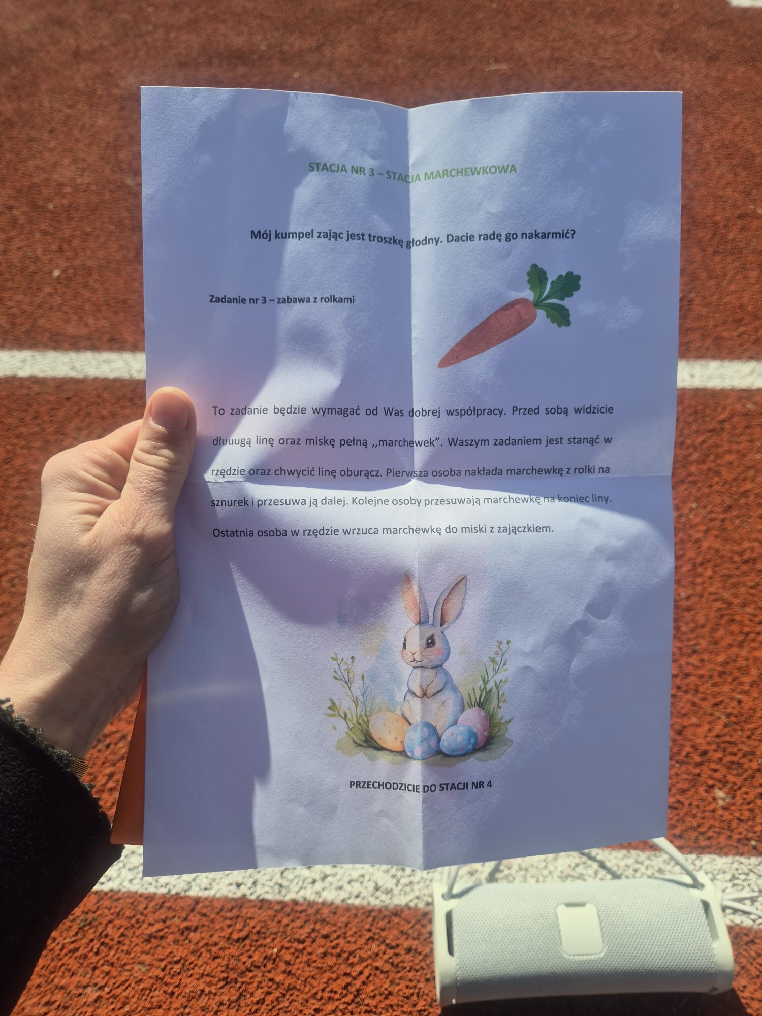 Dzieci w ogrodzie przedszkolnym wzięły udział w wyjątkowej zabawie, podczas której miały do przejścia aż 5 stacji przygotowanych specjalnie dla nich. Na uczestników czekała stacja zagadek, stacja sportowa, stacja marchewkowa, stacja muzyczna oraz stacja taneczna.