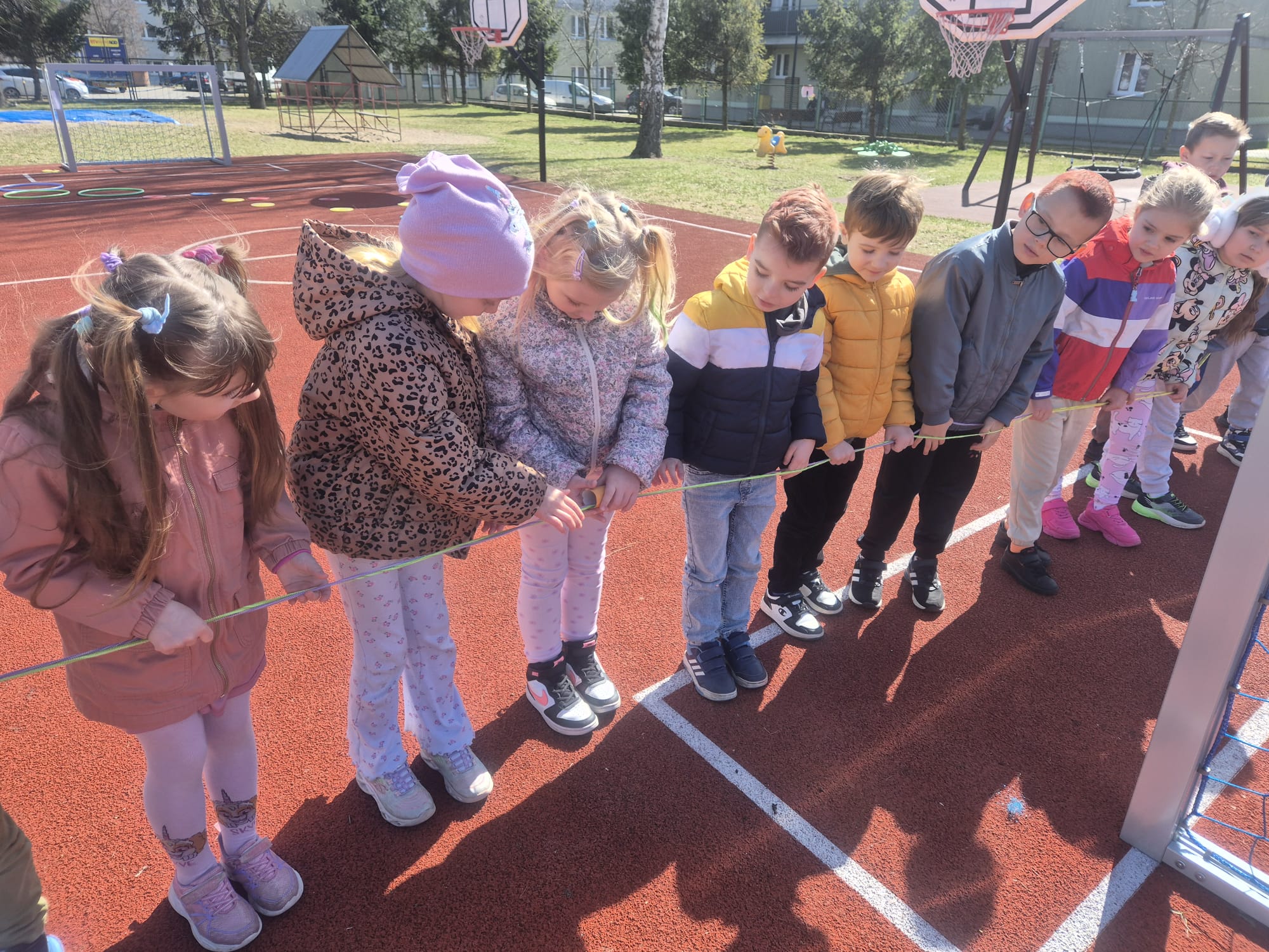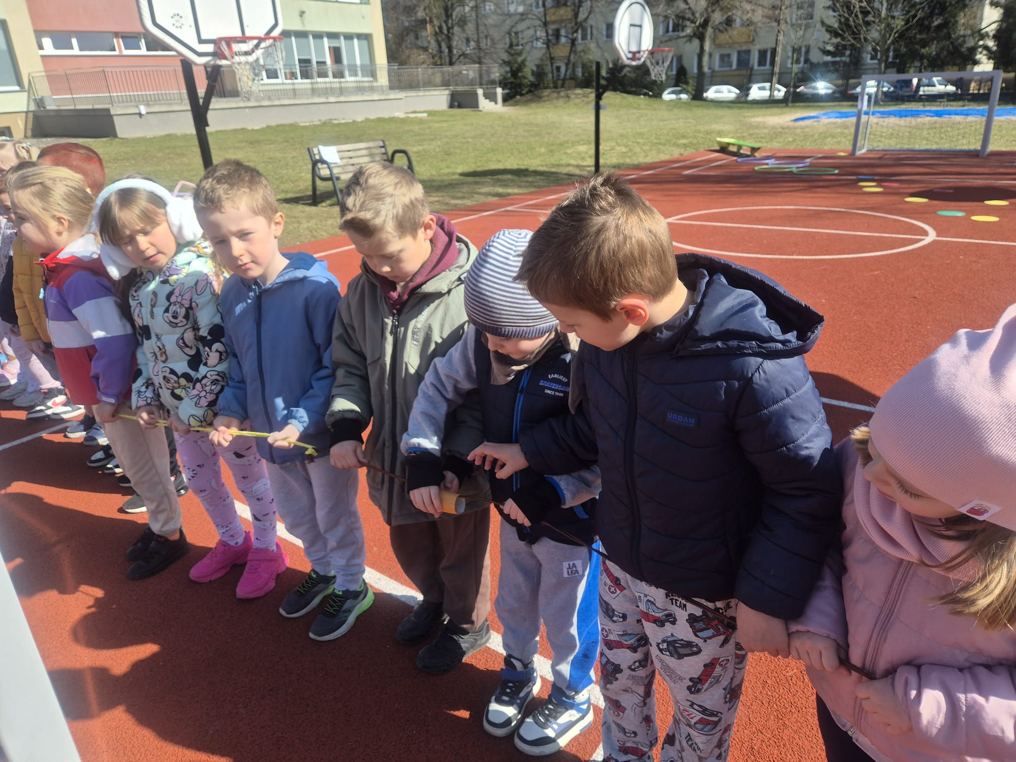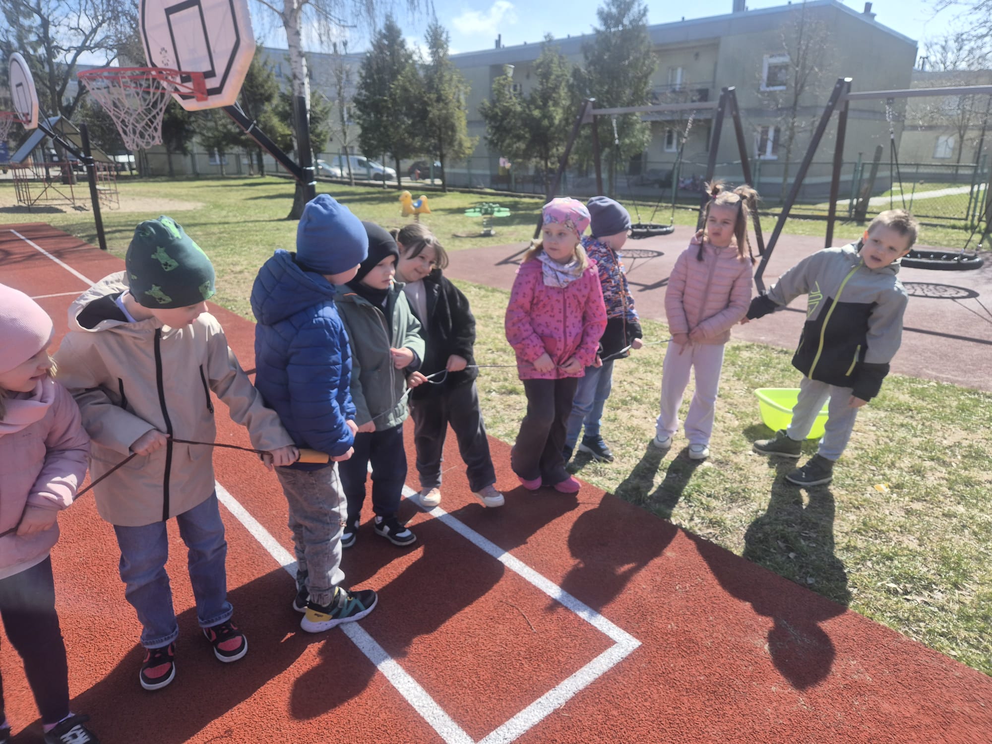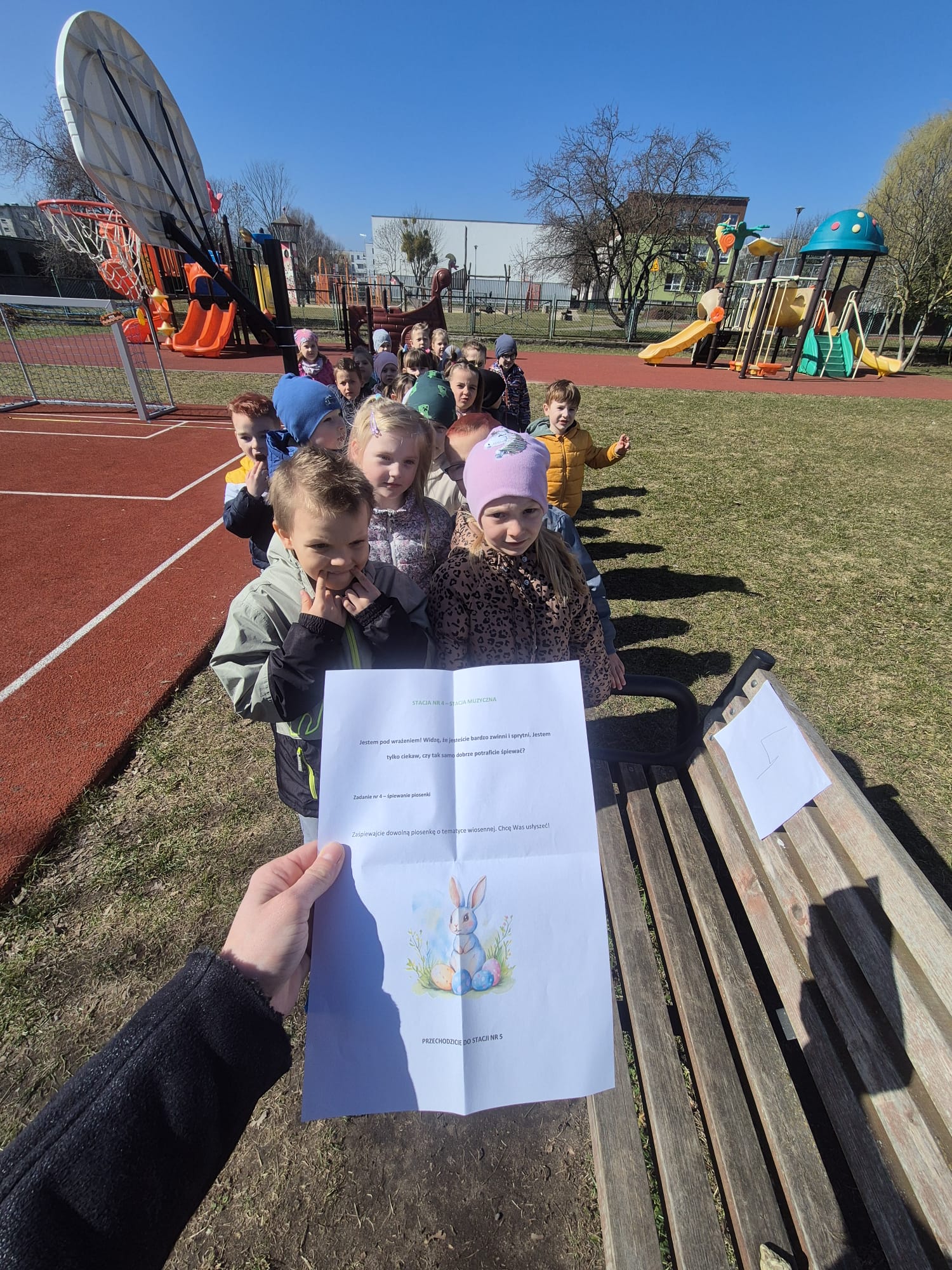 Dzieci w ogrodzie przedszkolnym wzięły udział w wyjątkowej zabawie, podczas której miały do przejścia aż 5 stacji przygotowanych specjalnie dla nich. Na uczestników czekała stacja zagadek, stacja sportowa, stacja marchewkowa, stacja muzyczna oraz stacja taneczna.