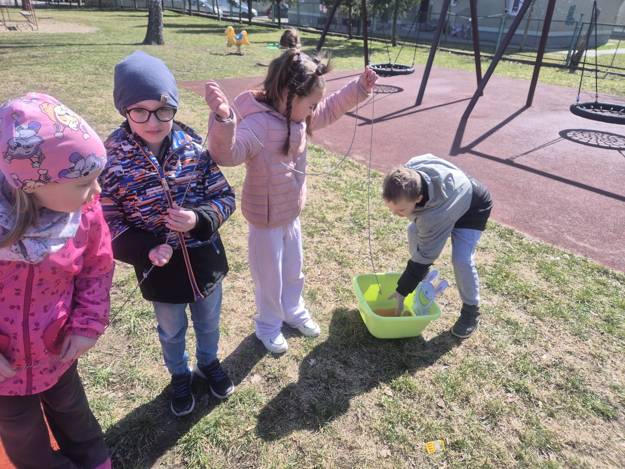 Na zakończenie tej pełnej wrażeń przygody dzieci wyruszyły na poszukiwania jajeczek ukrytych przez Zajączka Wielkanocnego. Radości i uśmiechów nie było końca!