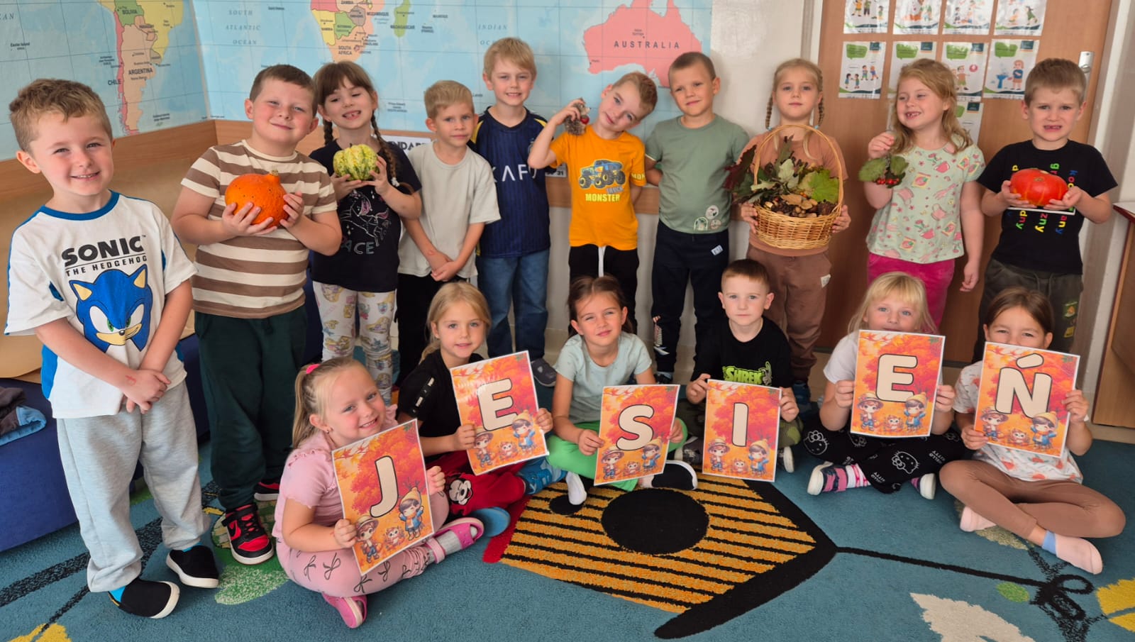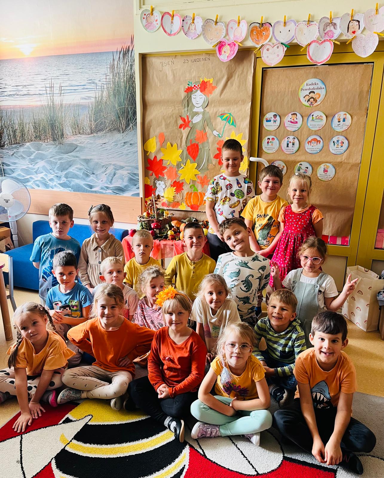 23 września 2025 roku przedszkolaki z Oddziałów Przedszkolnych z radością powitały nową porę roku – jesień. Podczas spacerów dzieci obserwowały zmiany zachodzące w przyrodzie, zbierały kolorowe liście, kasztany i żołędzie. Na zajęciach zagościły jesienne wierszyki i piosenki, nie zabrakło również zabaw ruchowych i prac plastycznych inspirowanych tematyką jesieni. Miło jest wspólnie odkrywać uroki tej wyjątkowej pory roku!