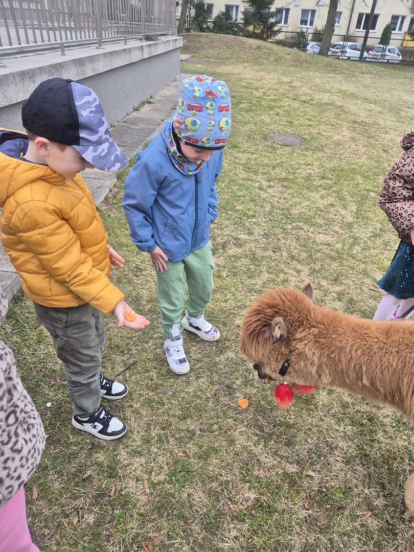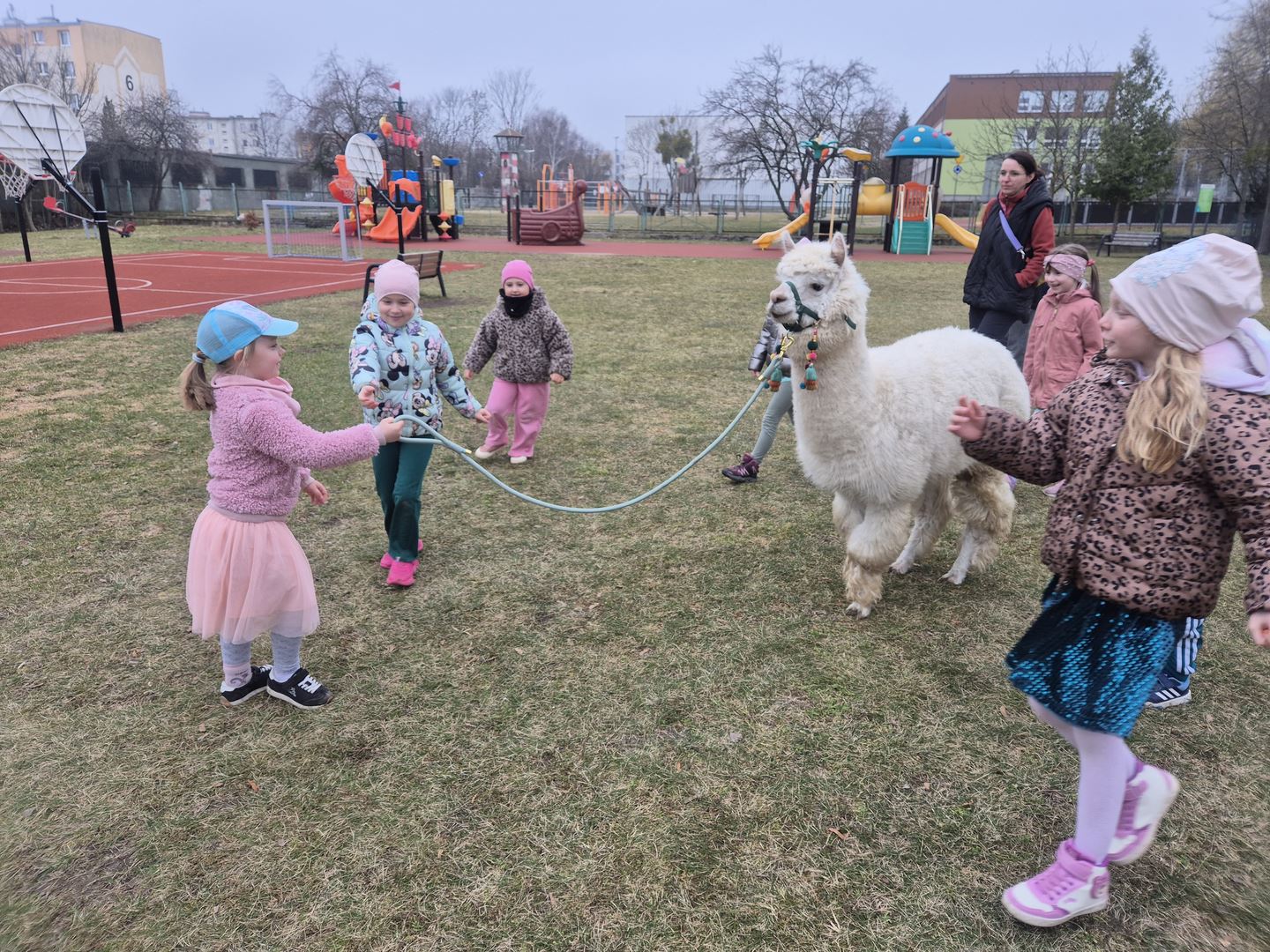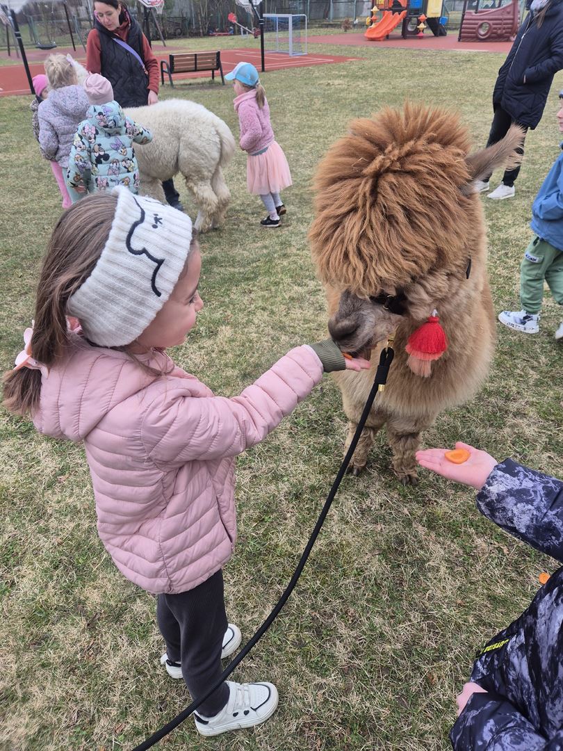 Podczas spotkania dzieci miały okazję dowiedzieć się wielu ciekawostek o alpakach – czym się żywią, skąd pochodzą oraz jak należy się nimi opiekować. Największą atrakcją była możliwość pogłaskania i nakarmienia zwierząt, co wywołało mnóstwo uśmiechów i pozytywnych emocji.