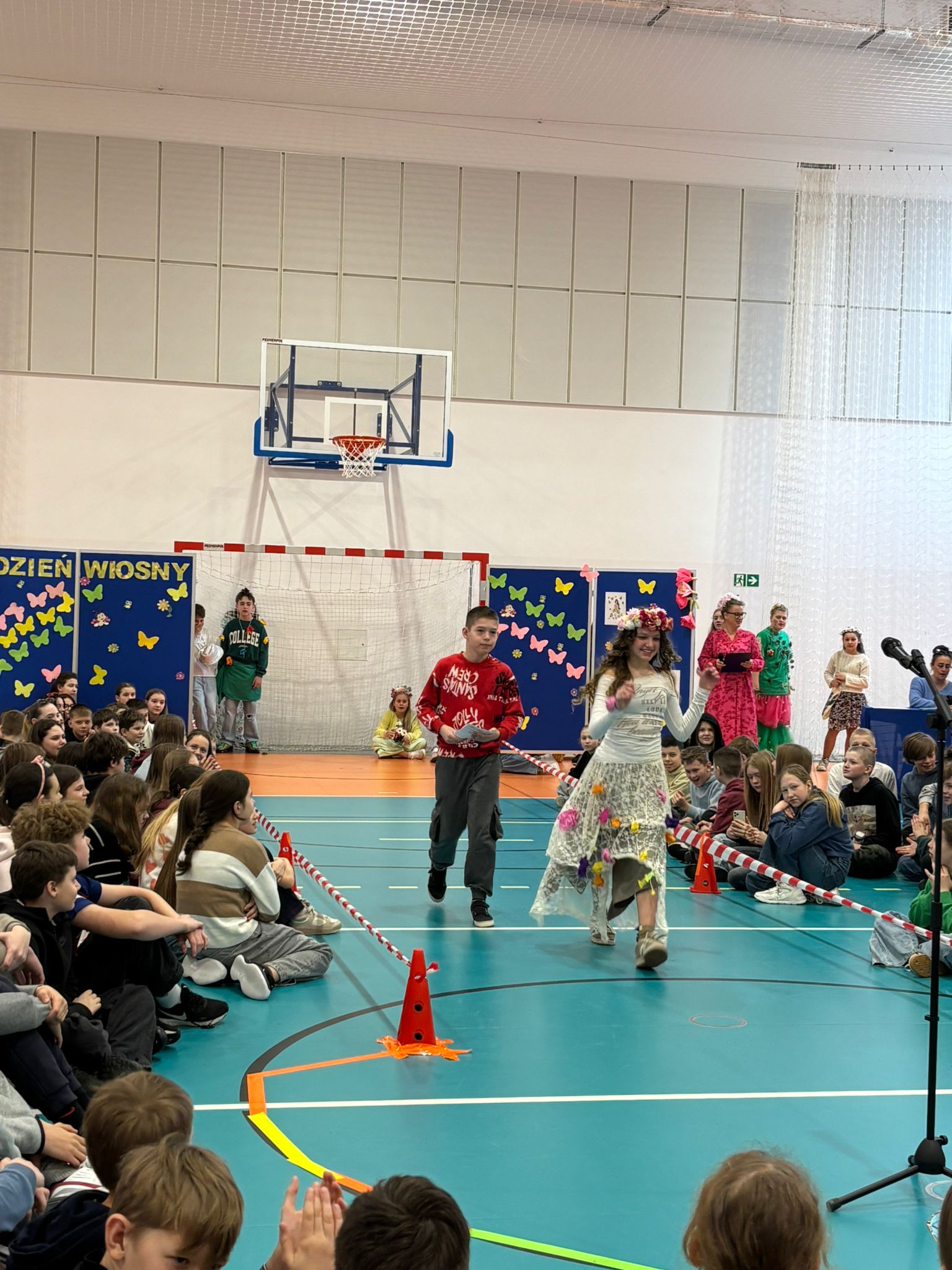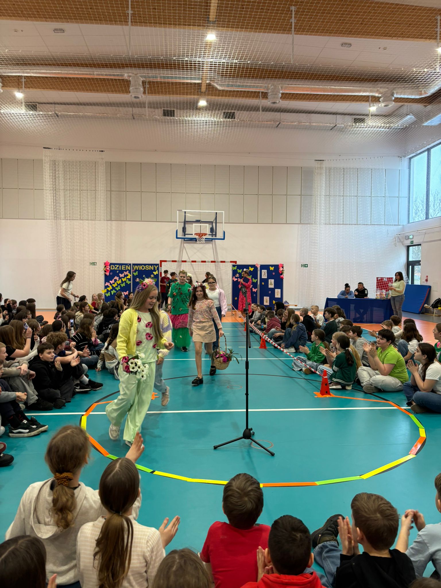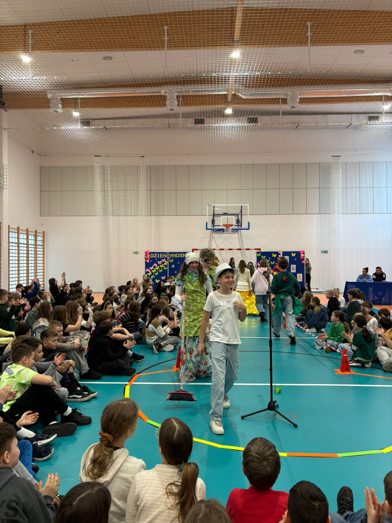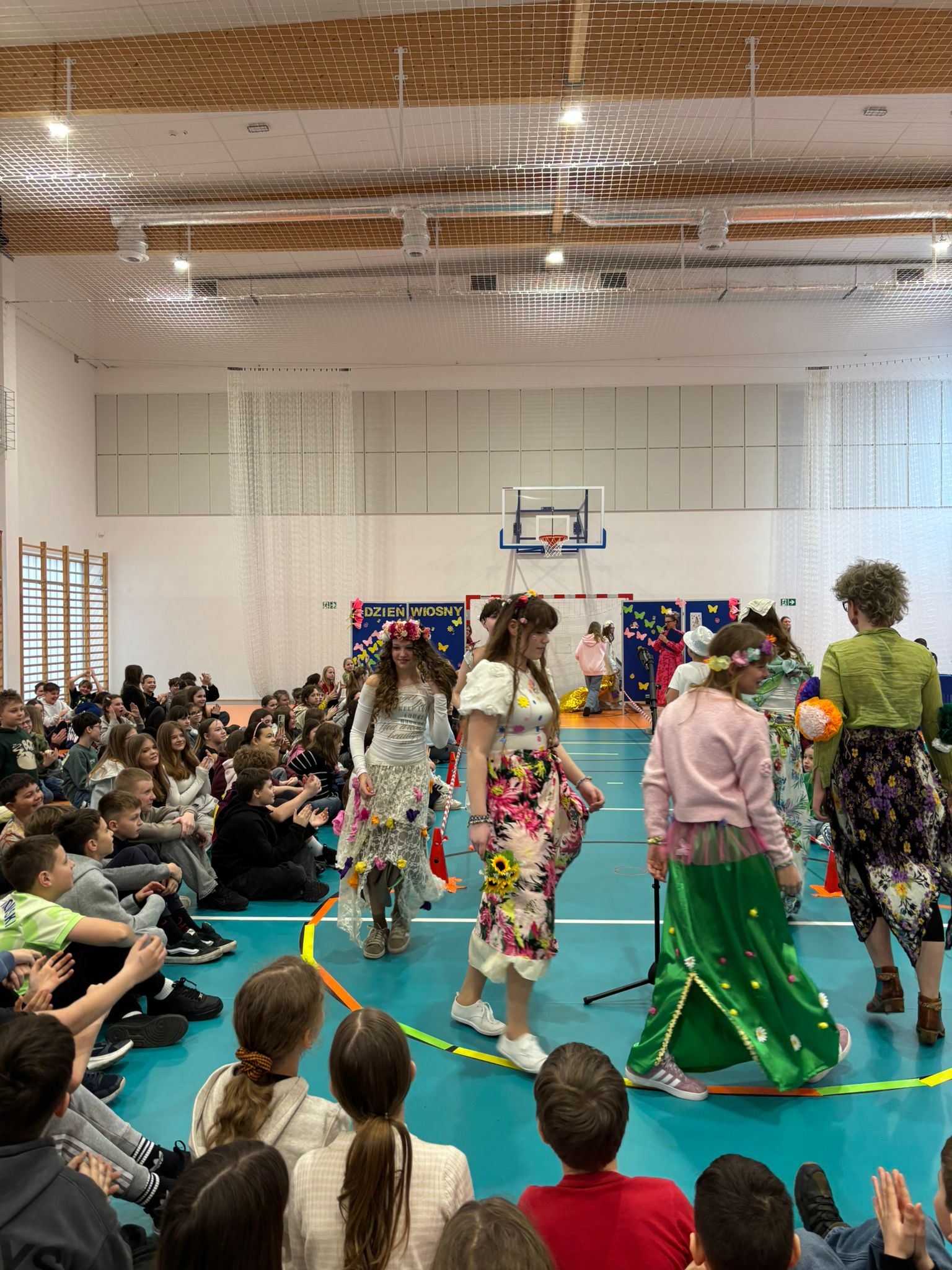 Dnia 20 marca br. samorząd uczniowski klas 4–8 zorganizował w naszej szkole obchody pierwszego dnia wiosny. Z tej okazji odbył się konkurs na najładniejszą Panią Wiosnę, w ramach którego uczniowie zaprezentowali się w barwnych, wiosennych strojach podczas rewii mody. Uczestnicy przygotowali również wiersz, który zaprezentowali przed publicznością, co dodatkowo uświetniło całe wydarzenie.