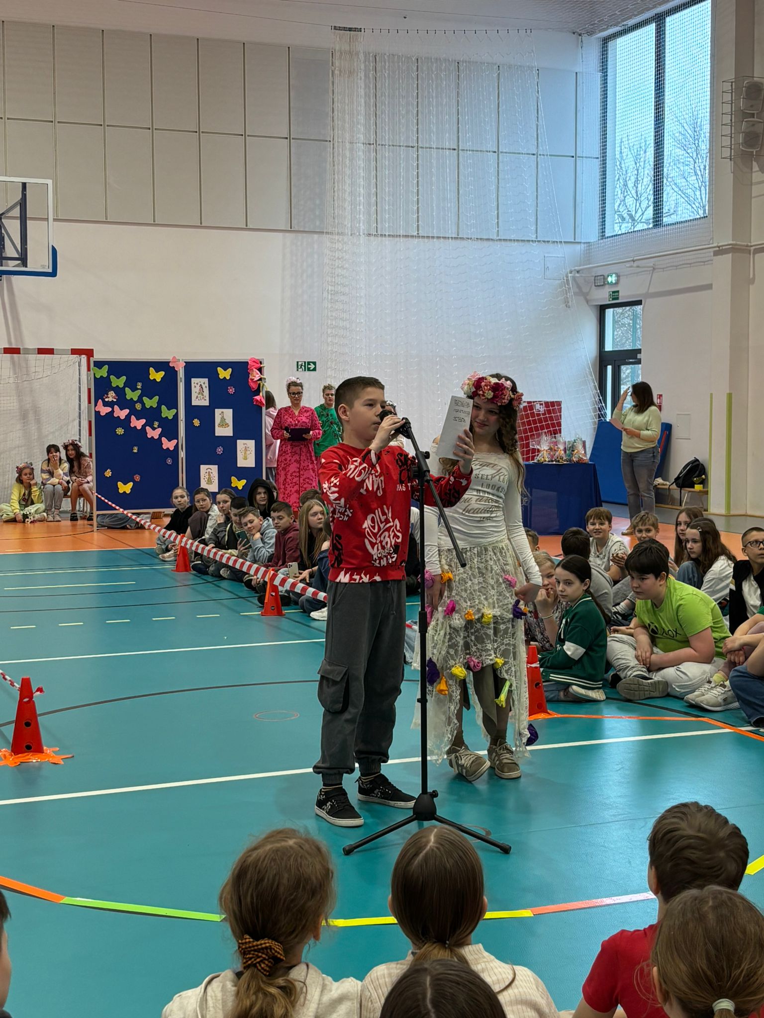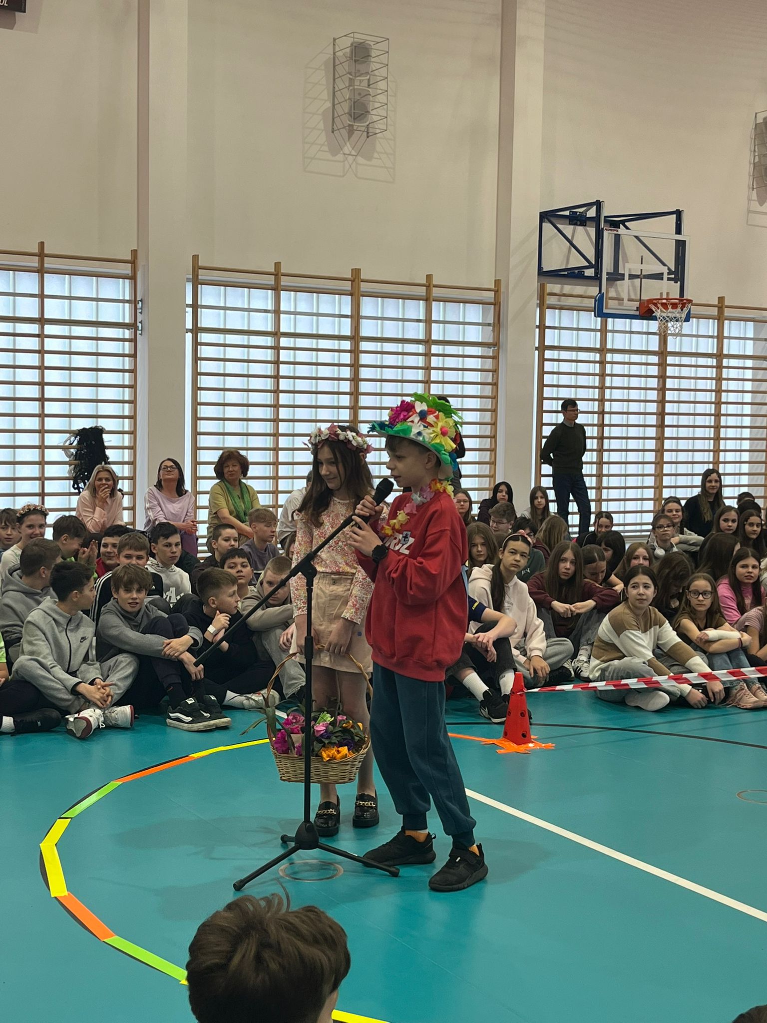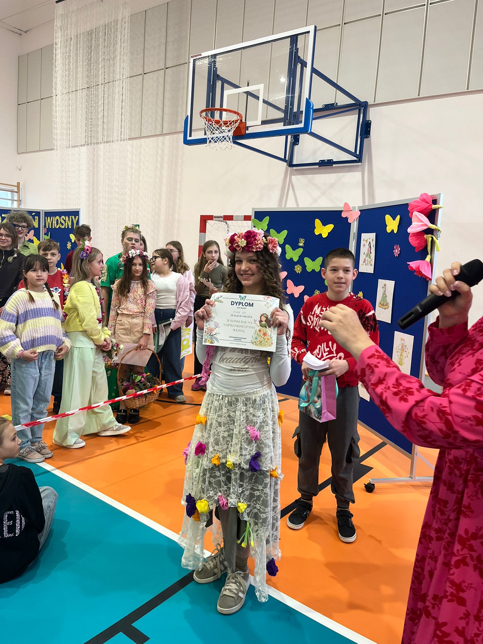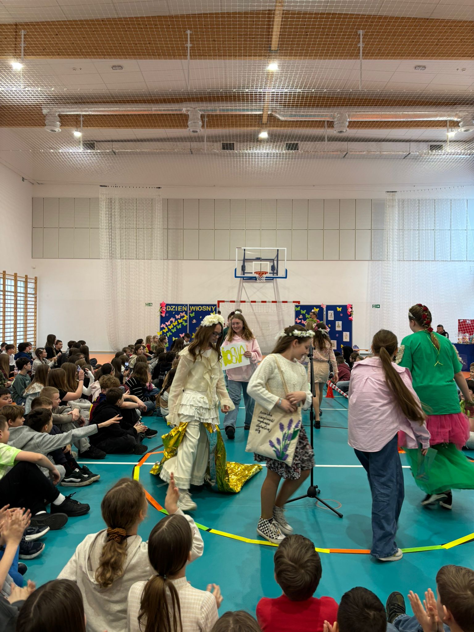 Dnia 20 marca br. samorząd uczniowski klas 4–8 zorganizował w naszej szkole obchody pierwszego dnia wiosny. Z tej okazji odbył się konkurs na najładniejszą Panią Wiosnę, w ramach którego uczniowie zaprezentowali się w barwnych, wiosennych strojach podczas rewii mody. Uczestnicy przygotowali również wiersz, który zaprezentowali przed publicznością, co dodatkowo uświetniło całe wydarzenie.