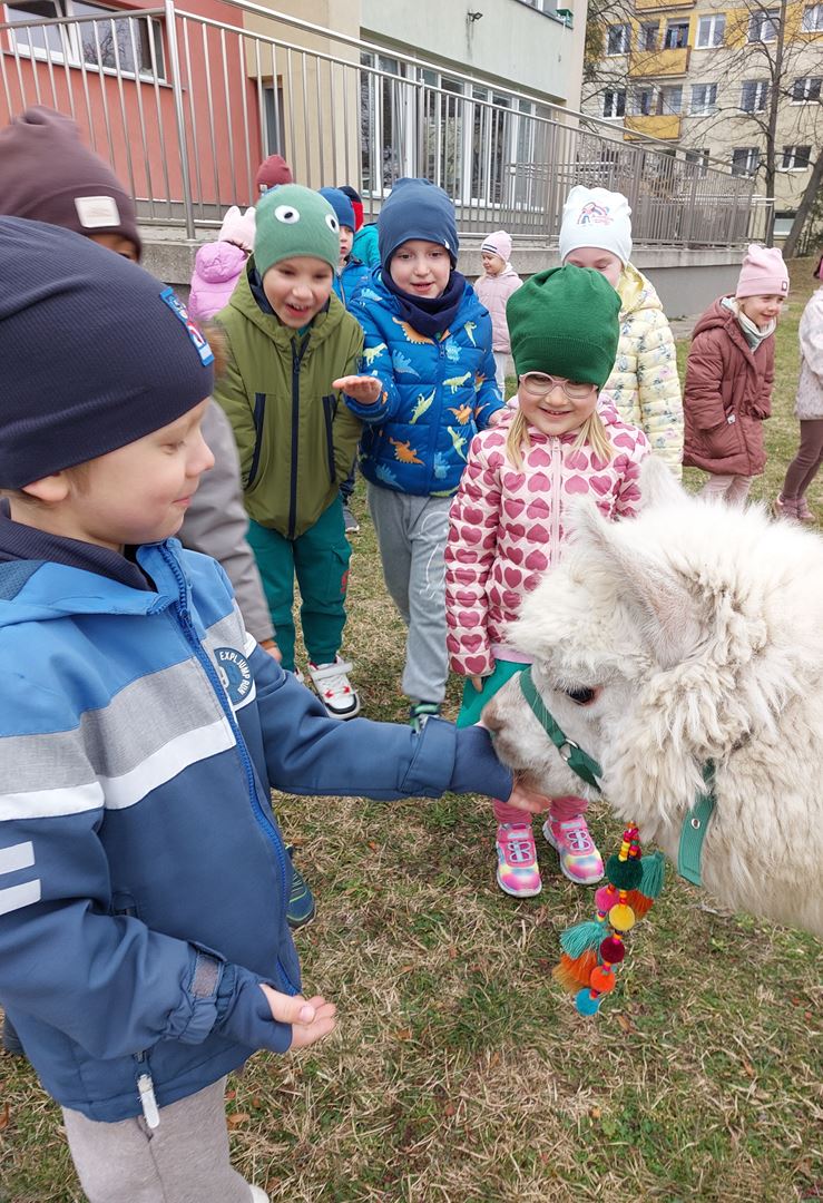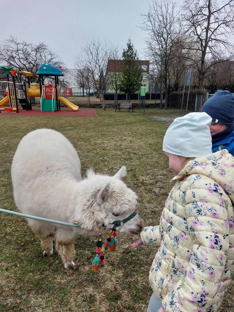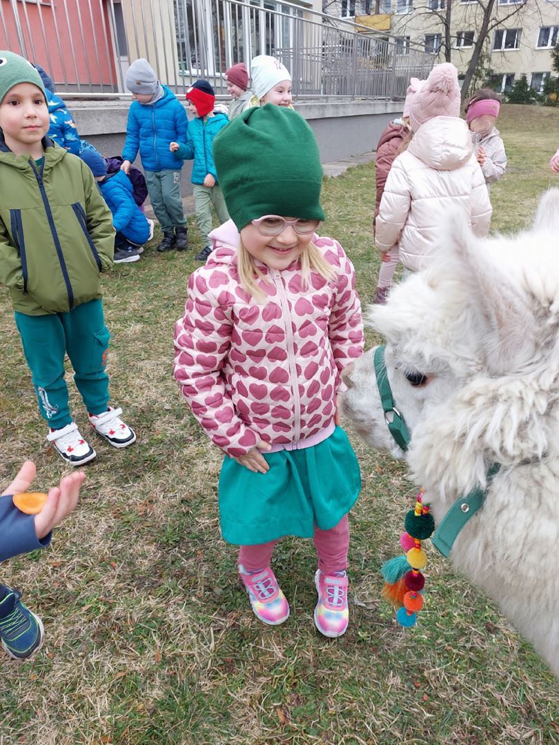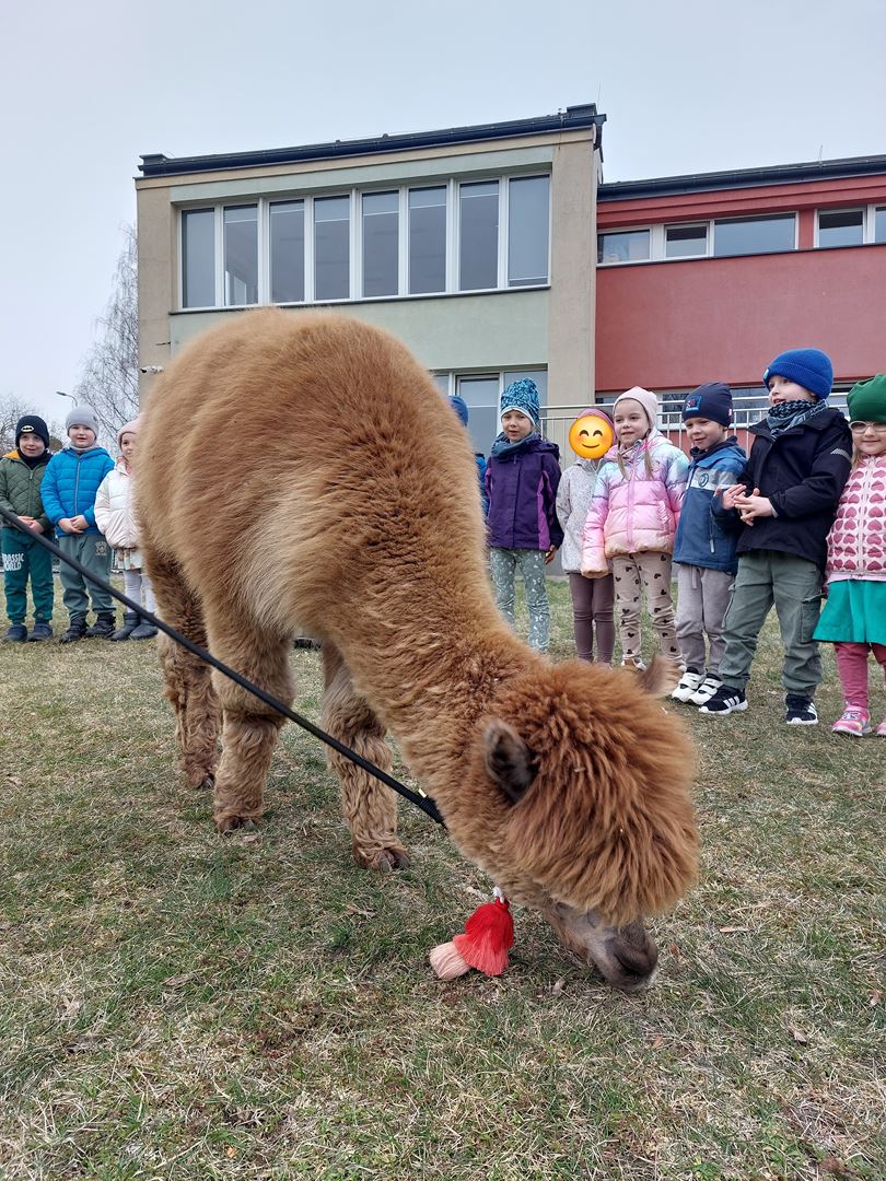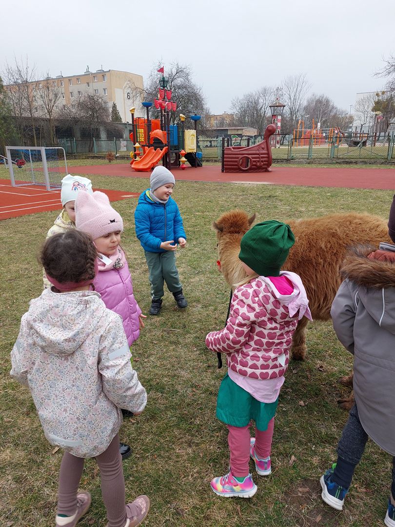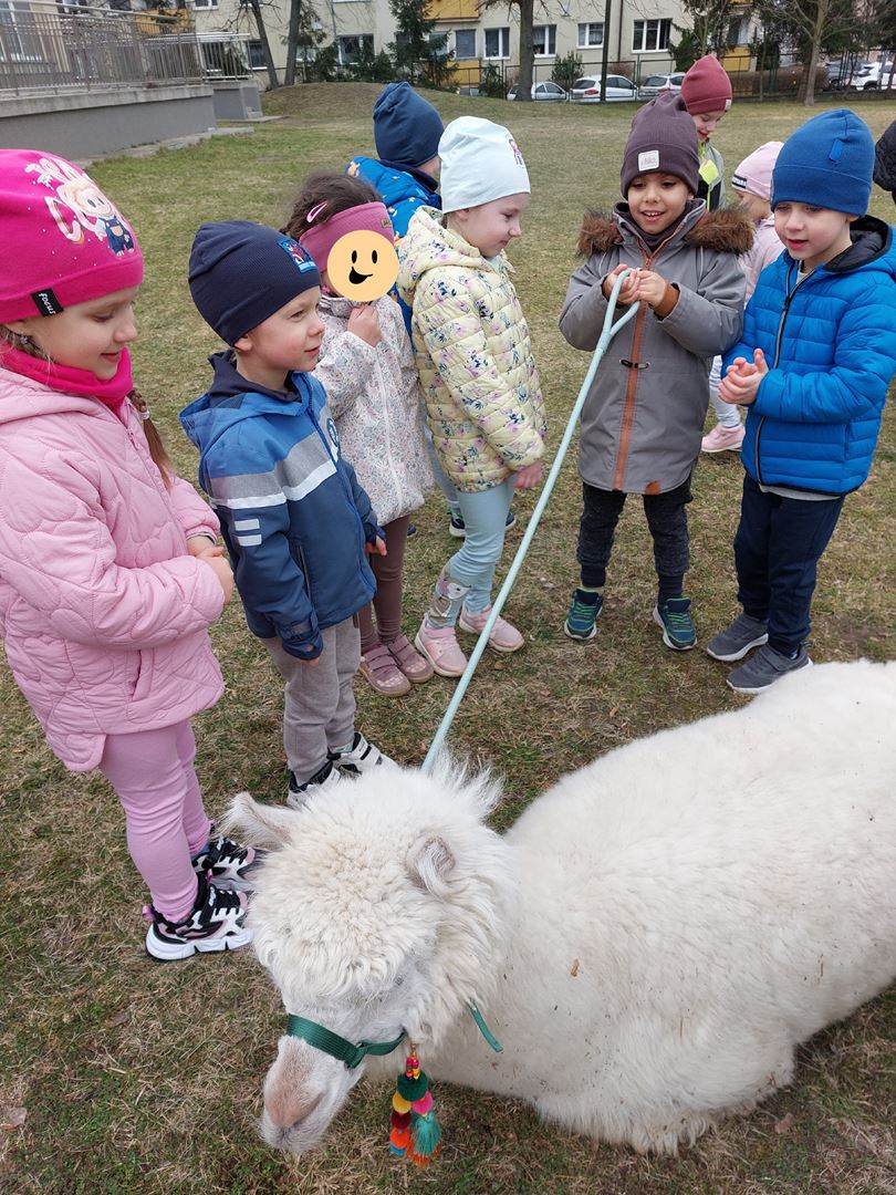 20 marca, z okazji Pierwszego Dnia Wiosny, odwiedzili nas wyjątkowi goście - alpaki Diego oraz Karmel. Te sympatyczne, mięciutkie zwierzątka od razu podbiły serca dzieci. Panie opowiedziały, jak karmić alpaki i w których miejscach alpaki lubią być głaskane. To była super przygoda, i miłe powitanie wiosny!