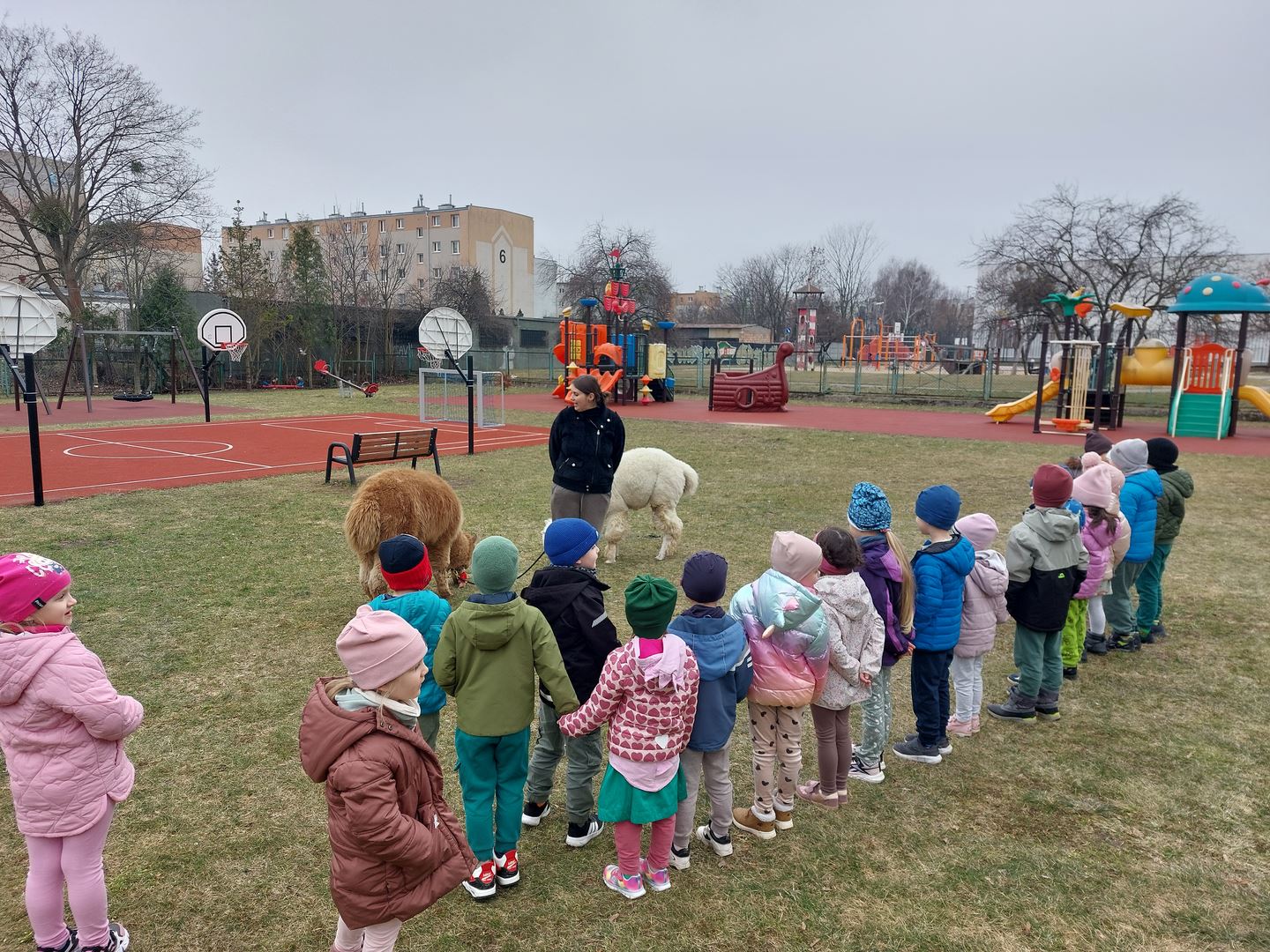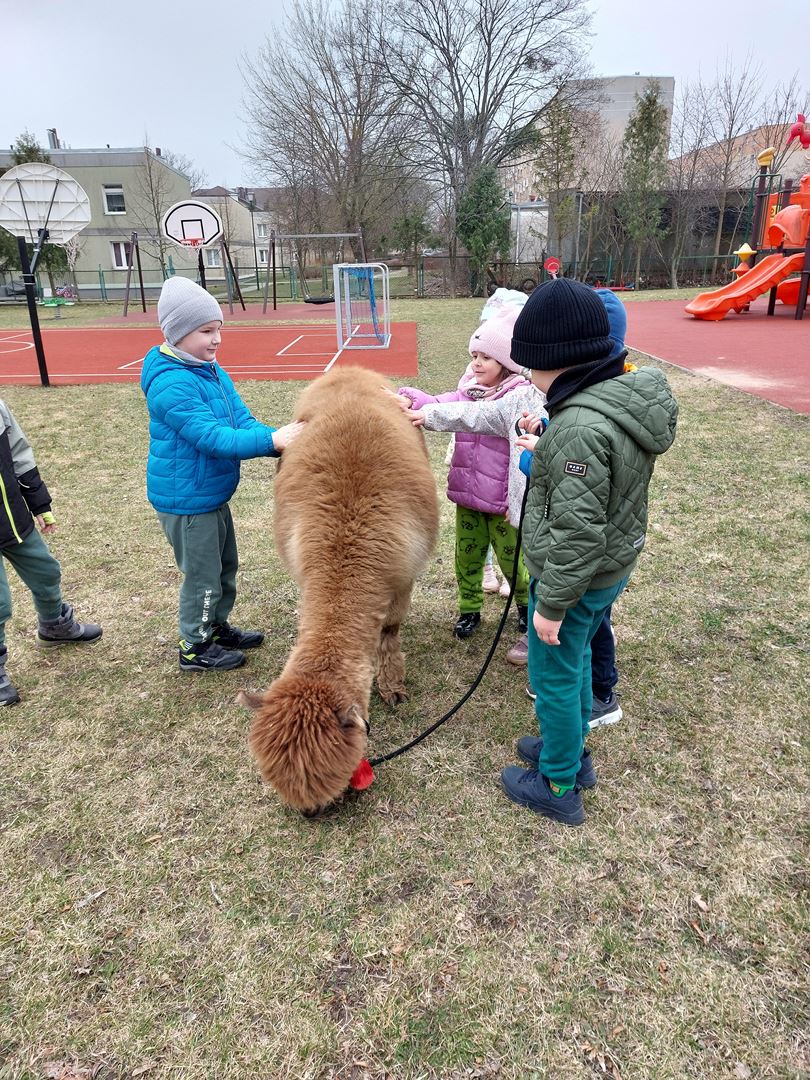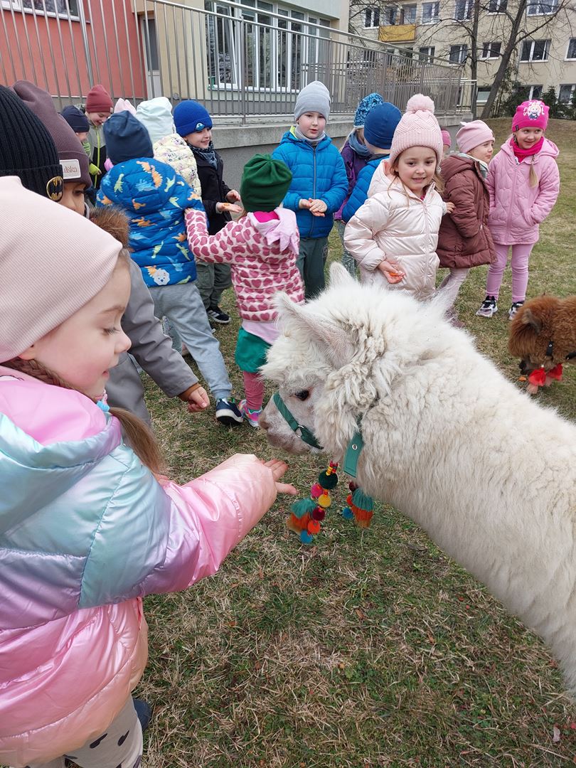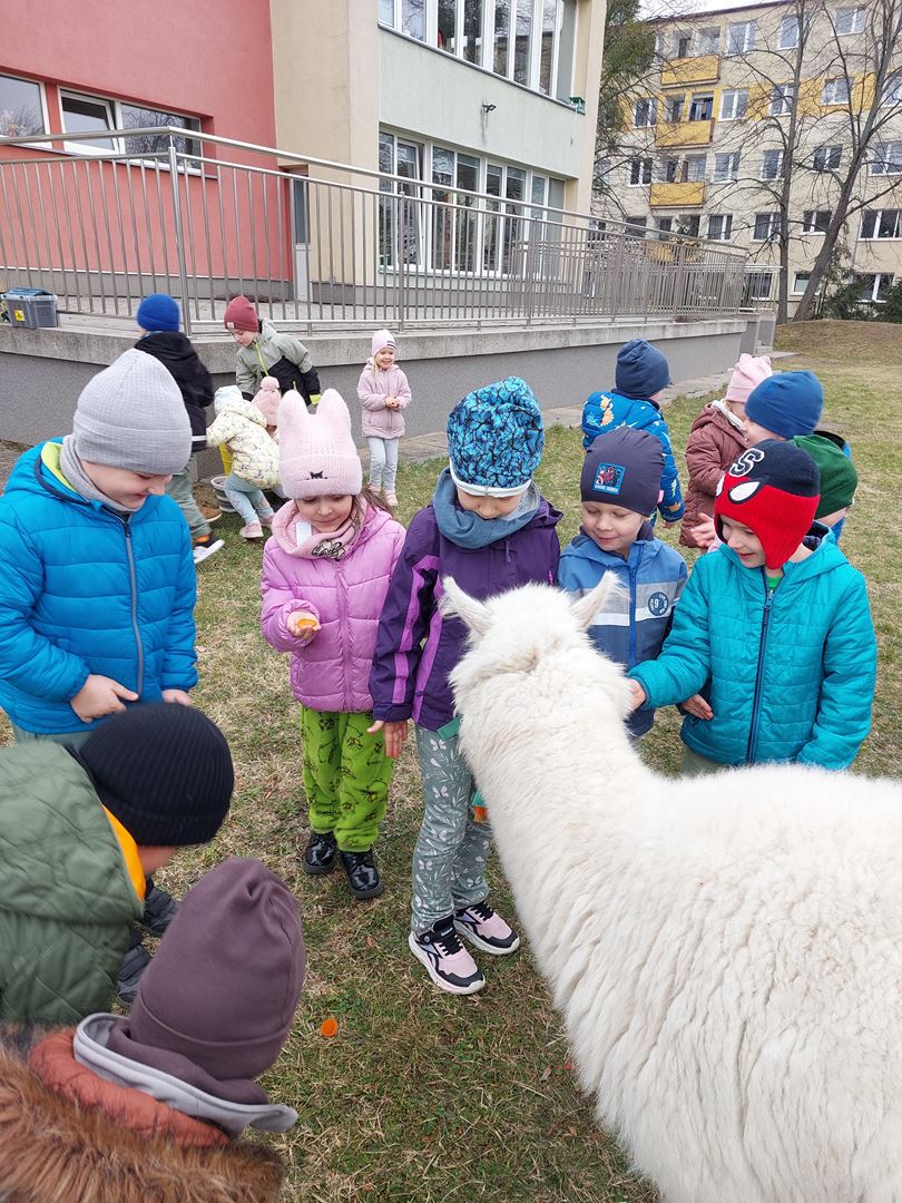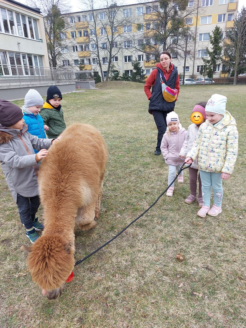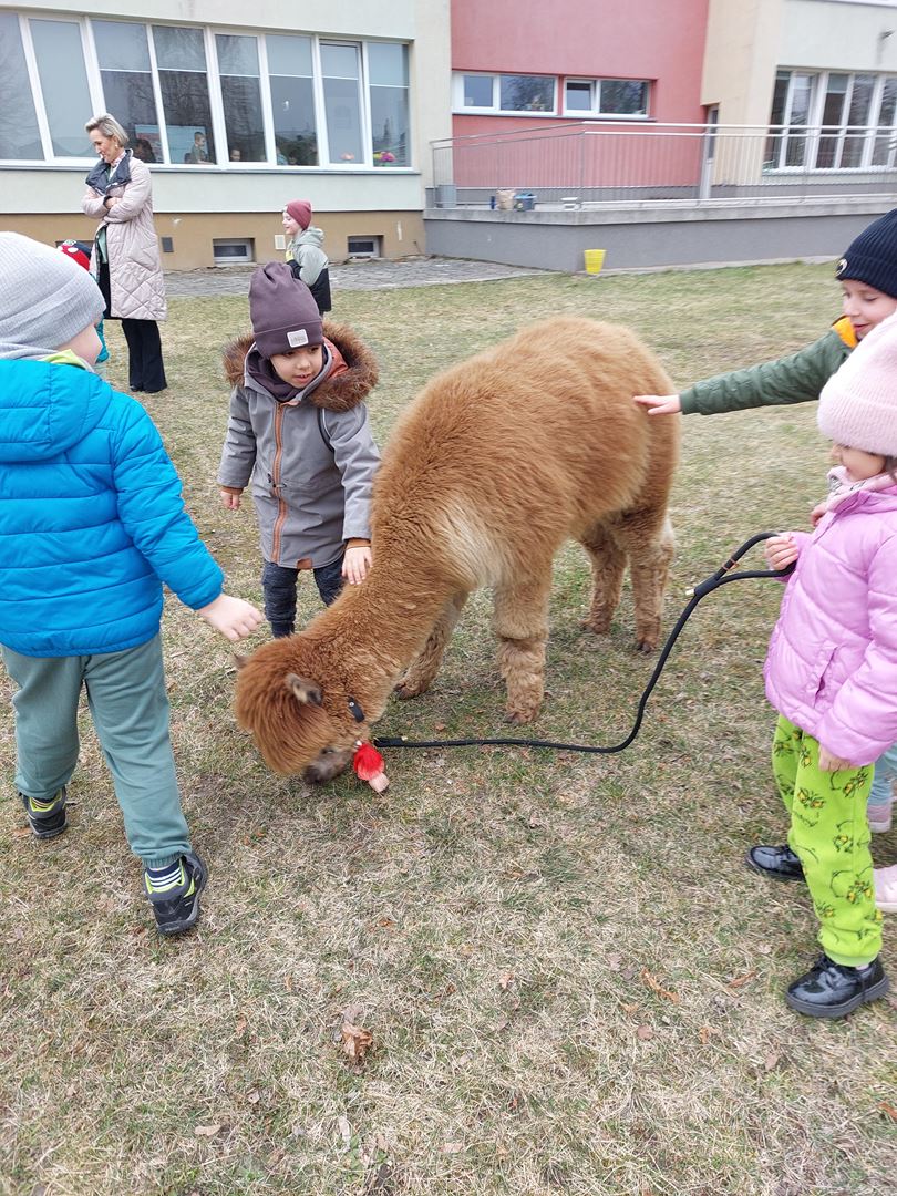 20 marca, z okazji Pierwszego Dnia Wiosny, odwiedzili nas wyjątkowi goście - alpaki Diego oraz Karmel. Te sympatyczne, mięciutkie zwierzątka od razu podbiły serca dzieci. Panie opowiedziały, jak karmić alpaki i w których miejscach alpaki lubią być głaskane. To była super przygoda, i miłe powitanie wiosny!
