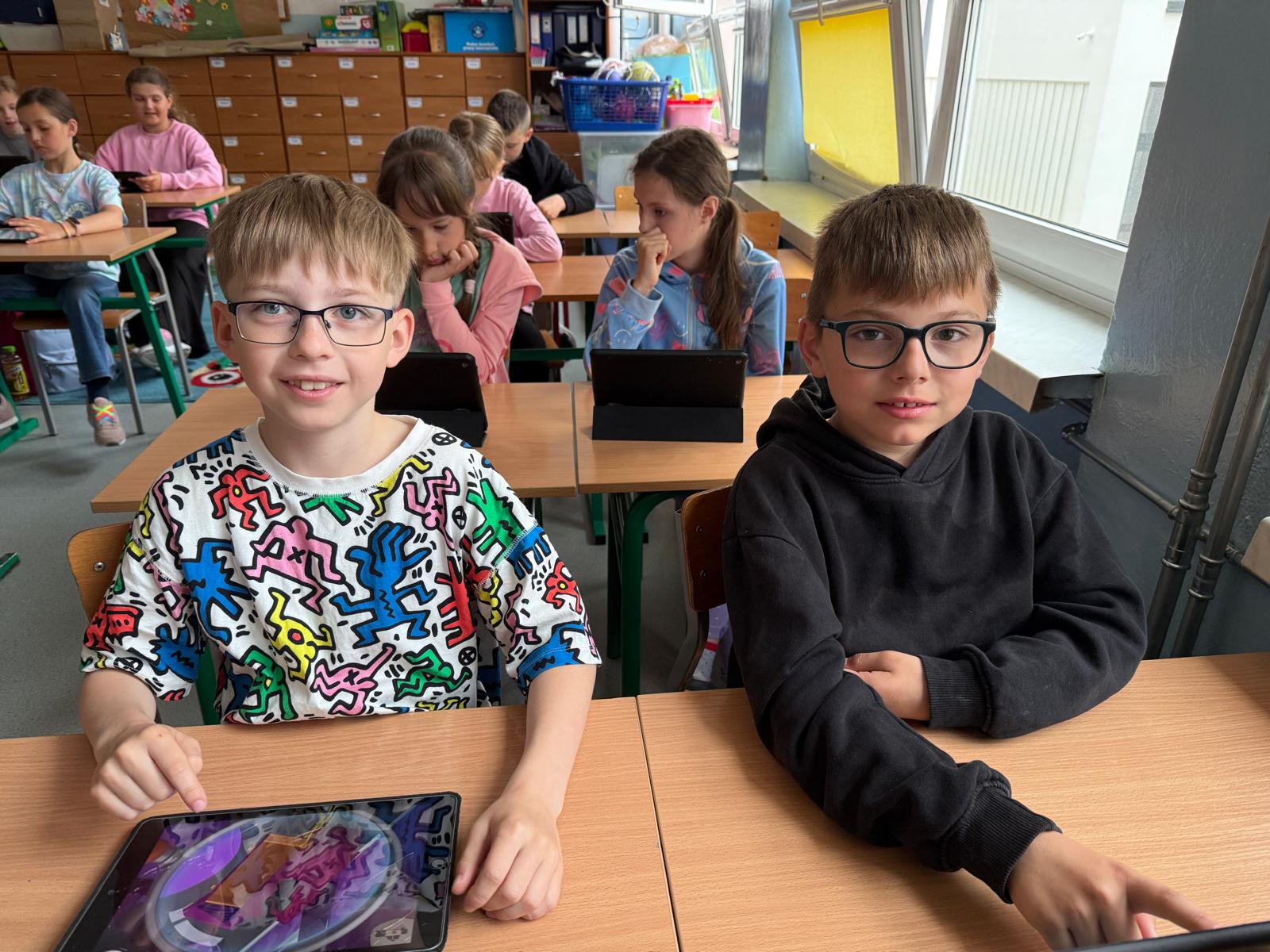 Dnia 4 czerwca 2025 roku zakończyliśmy cykl multimedialnych warsztatów z tabletami, które towarzyszyły uczniom od klasy pierwszej aż do trzeciej. To były trzy lata pełne odkrywania nowoczesnych technologii, rozwijania kreatywności i nauki przez zabawę.