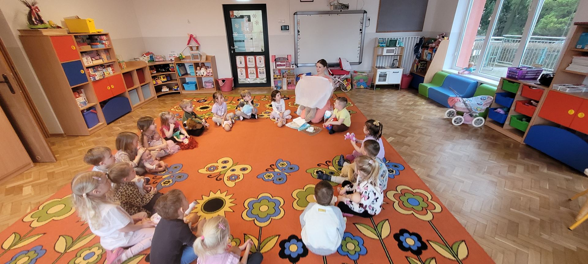 17 marca naszą grupę odwiedził wyjątkowy gość – mama Basi, która opowiedziała dzieciom o swoim zawodzie położnej. Dzieci z dużym zainteresowaniem słuchały i aktywnie uczestniczyły w zajęciach.