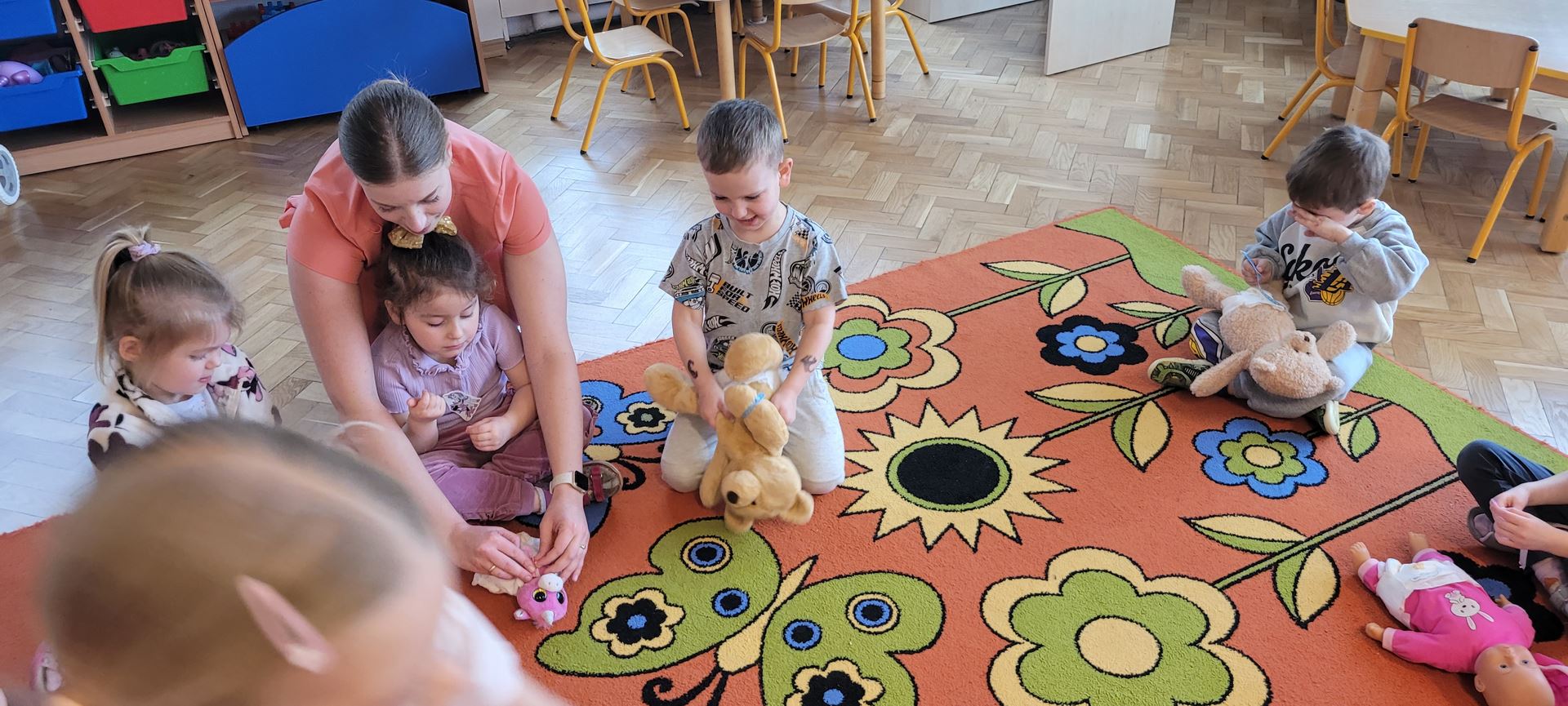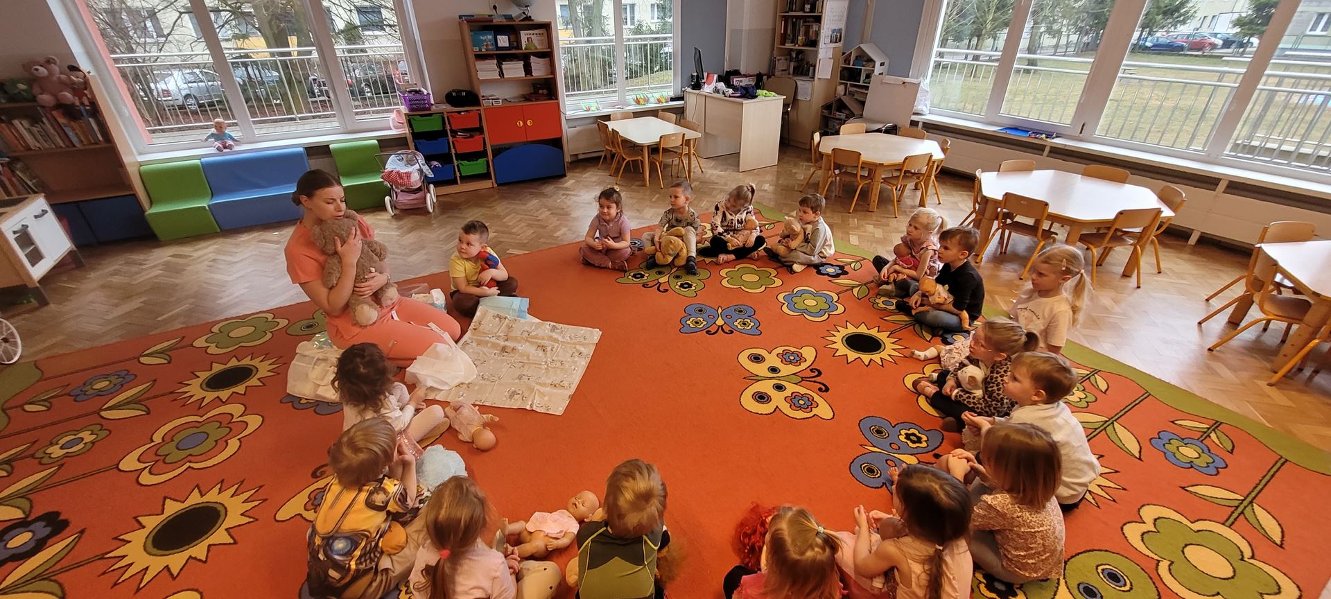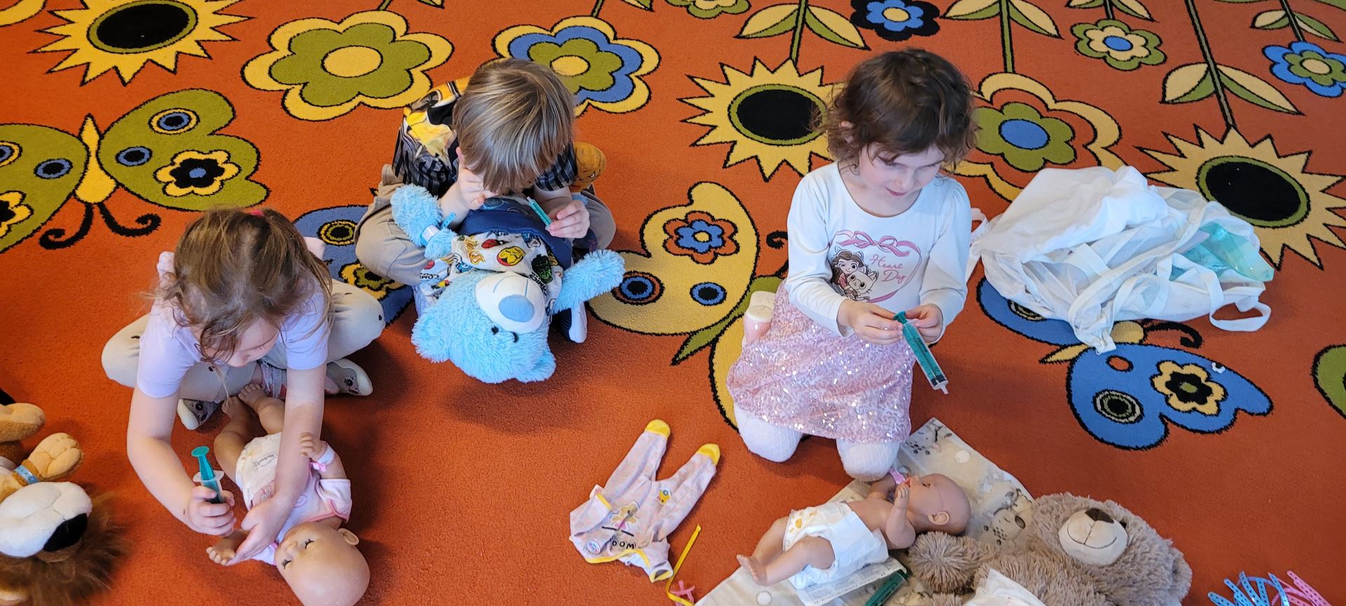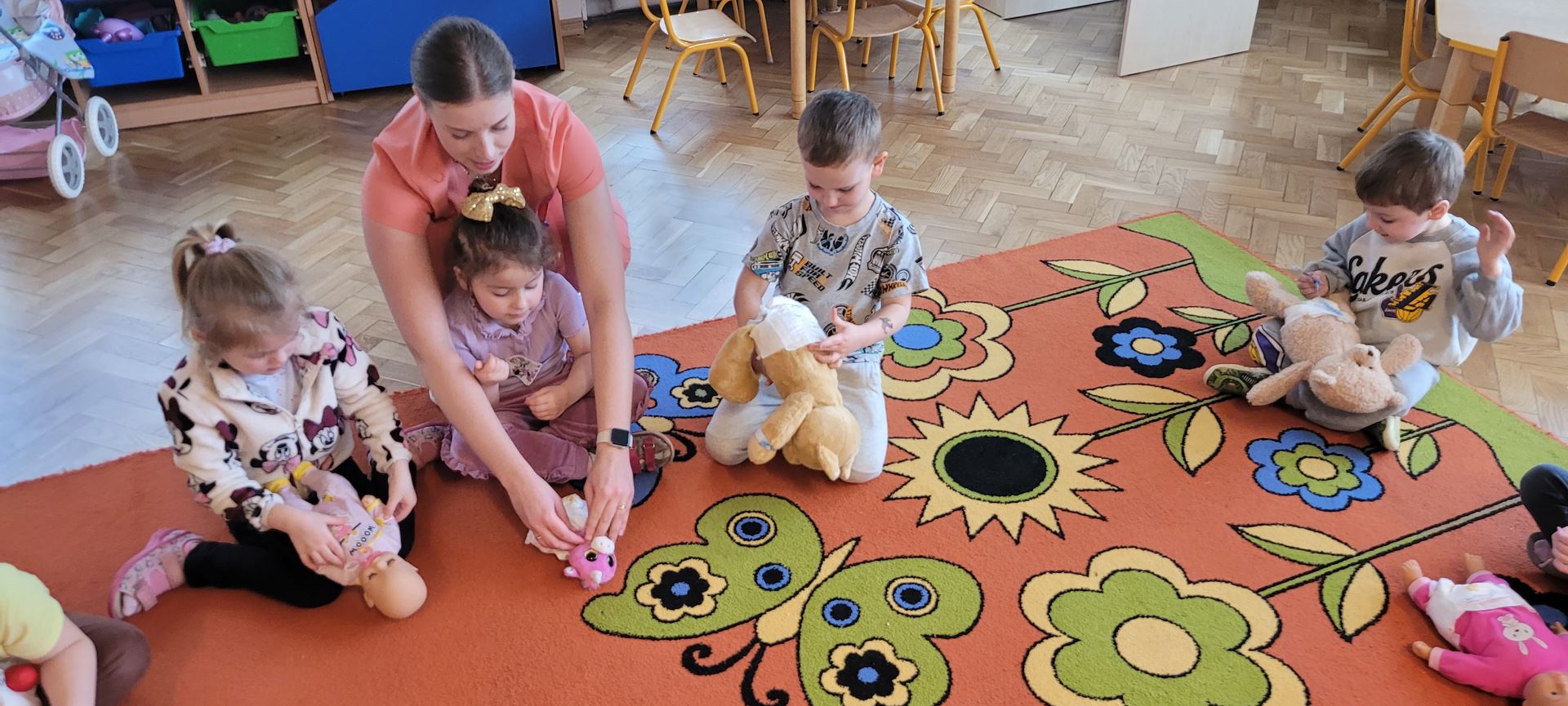Podczas spotkania maluchy otrzymały pieluszki i mogły wcielić się w rolę opiekunów – ubierały swoje lalki i misie. Dodatkowo zakładały opaski, na których zapisuje się dane „małych pacjentów”. Nie zabrakło również zabawy w wykonywanie zastrzyków, co wzbudziło wiele emocji i radości.