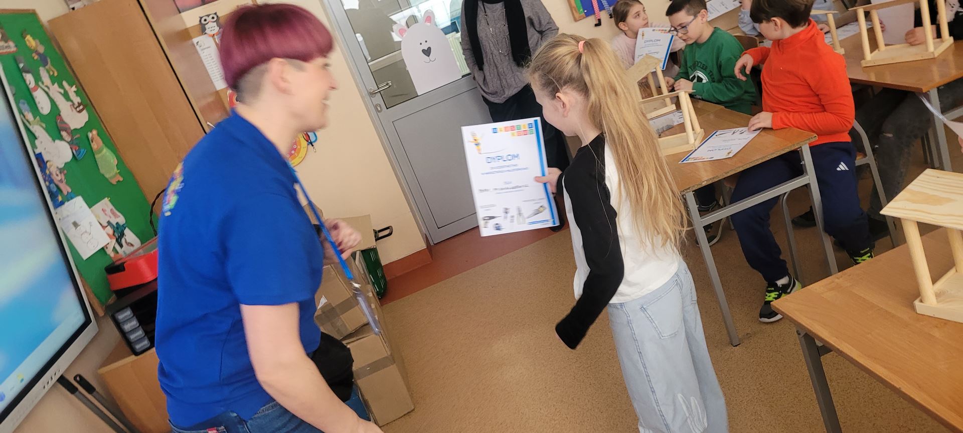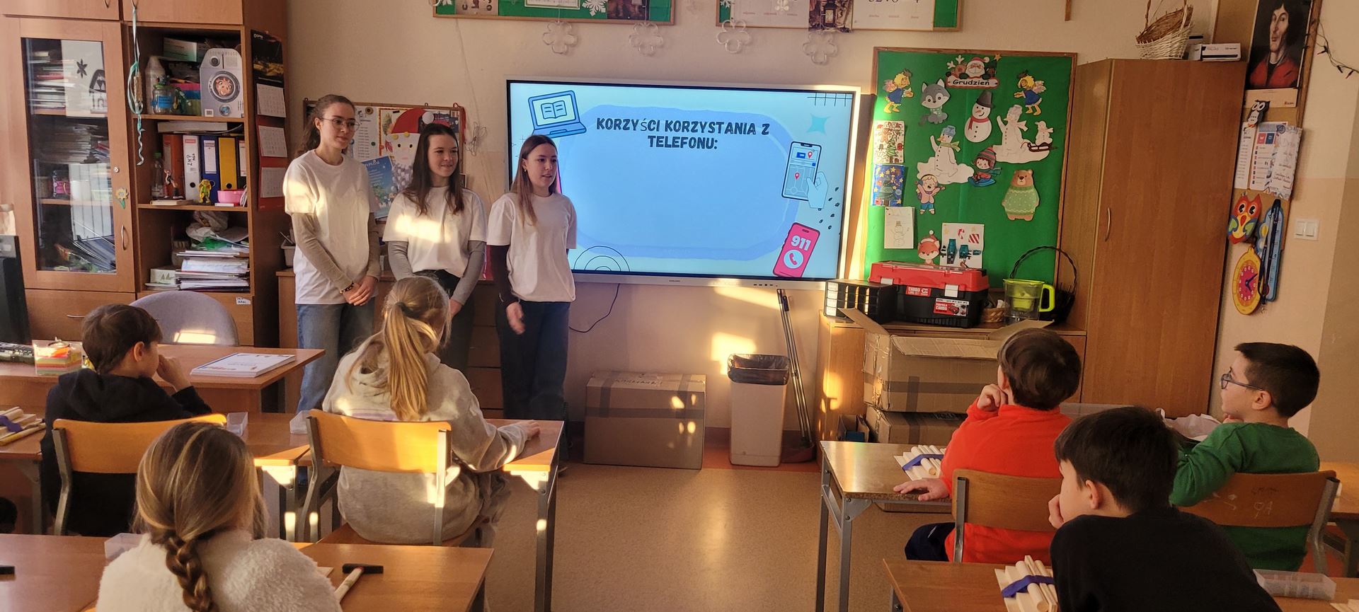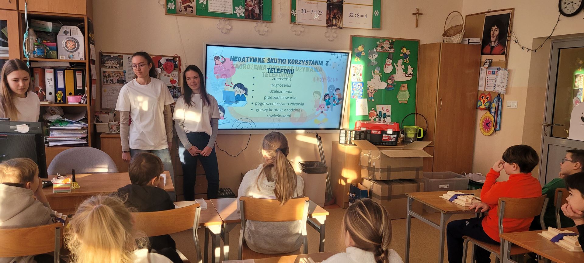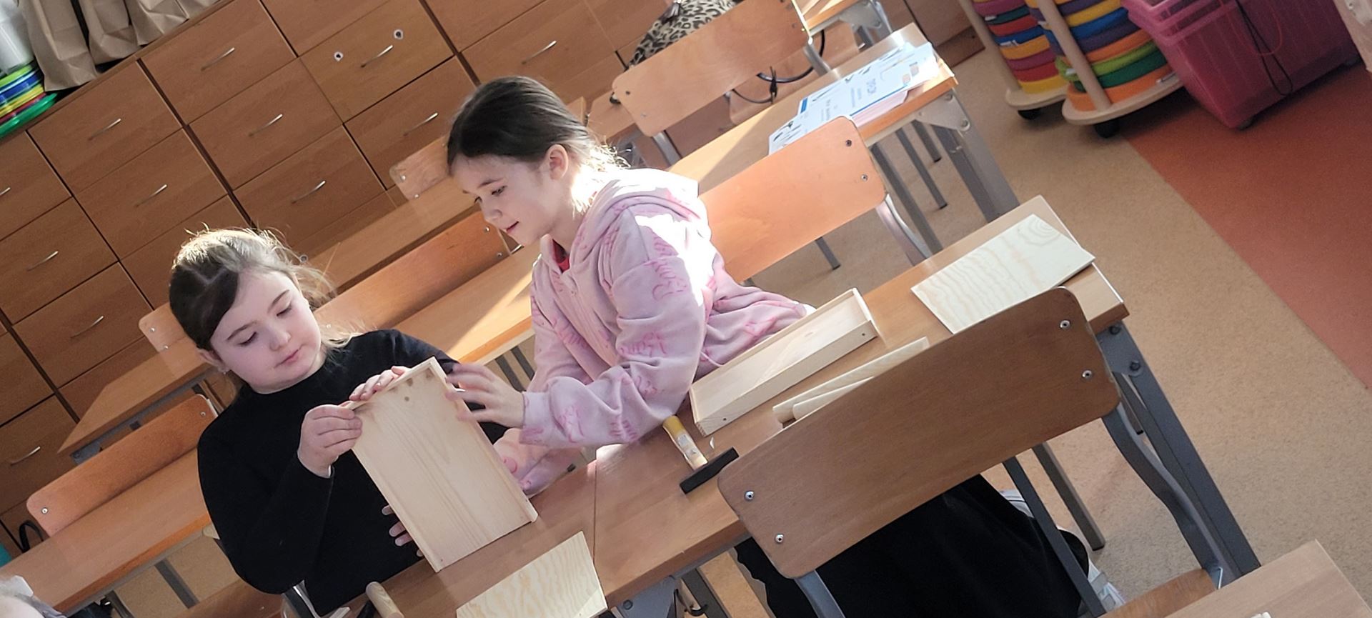 W dniu 02.02.2026 r. odbyły się spotkania i zajęcia dla uczniów naszej szkoły. Uczniowie klasy 3a brali udział w projekcie edukacyjnym pt. „Screen Away”, którego celem jest zachęcenie dzieci do ograniczenia korzystania z telefonów komórkowych oraz odkrywania własnych pasji i aktywności poza ekranem. Projekt realizowany był przez uczennice liceum w ramach Ogólnopolskiej Olimpiady Projektów Społecznych „Zwolnieni z teorii”. Aby uatrakcyjnić wydarzenie, do współpracy zaproszono przeszkolonych pracowników Castoramy, którzy przygotowali warsztaty stolarskie. Dzieci miały okazję samodzielnie wykonać karmniki z drewna, korzystając z podstawowych narzędzi, takich jak młotek i klej do drewna.