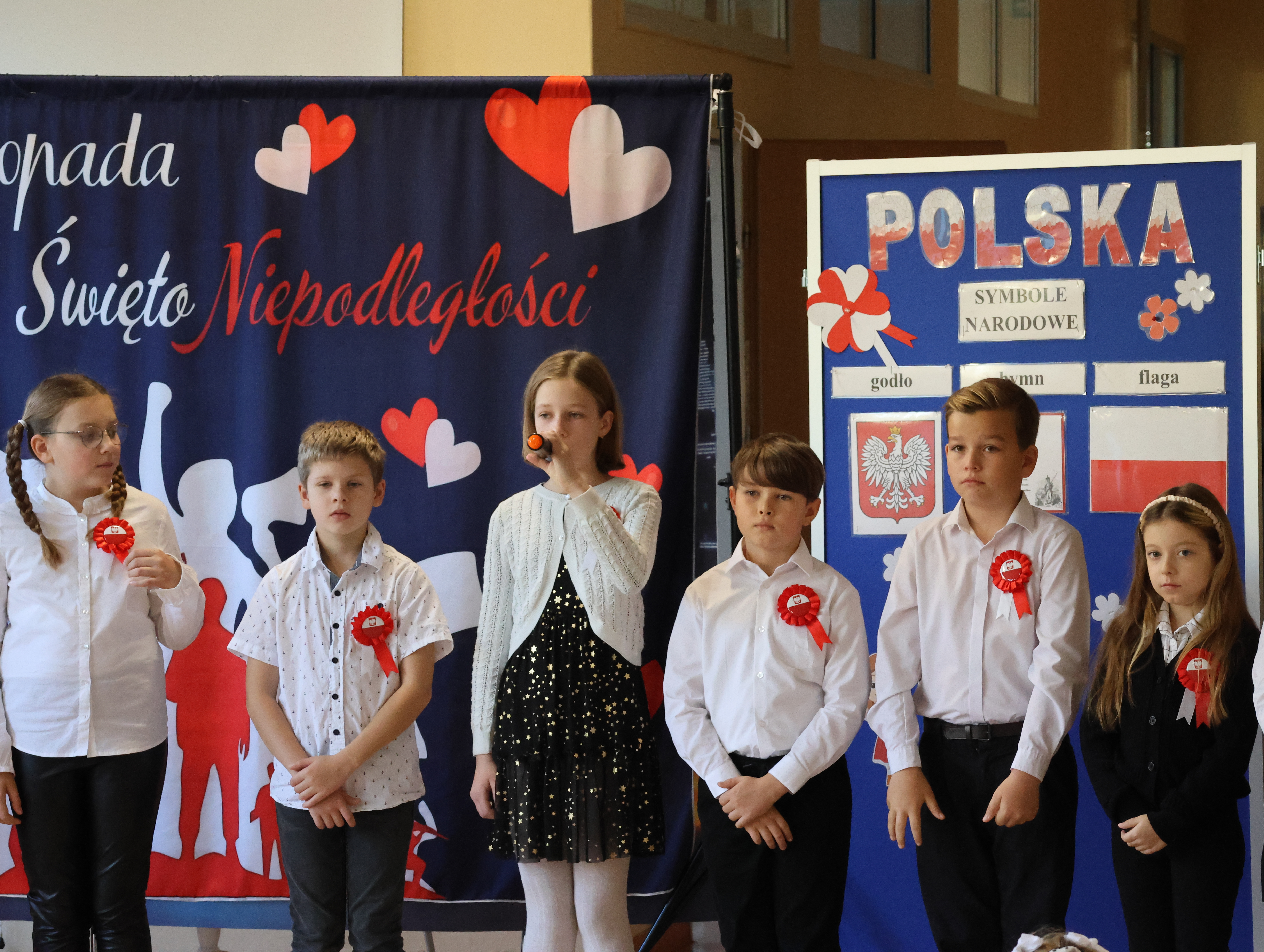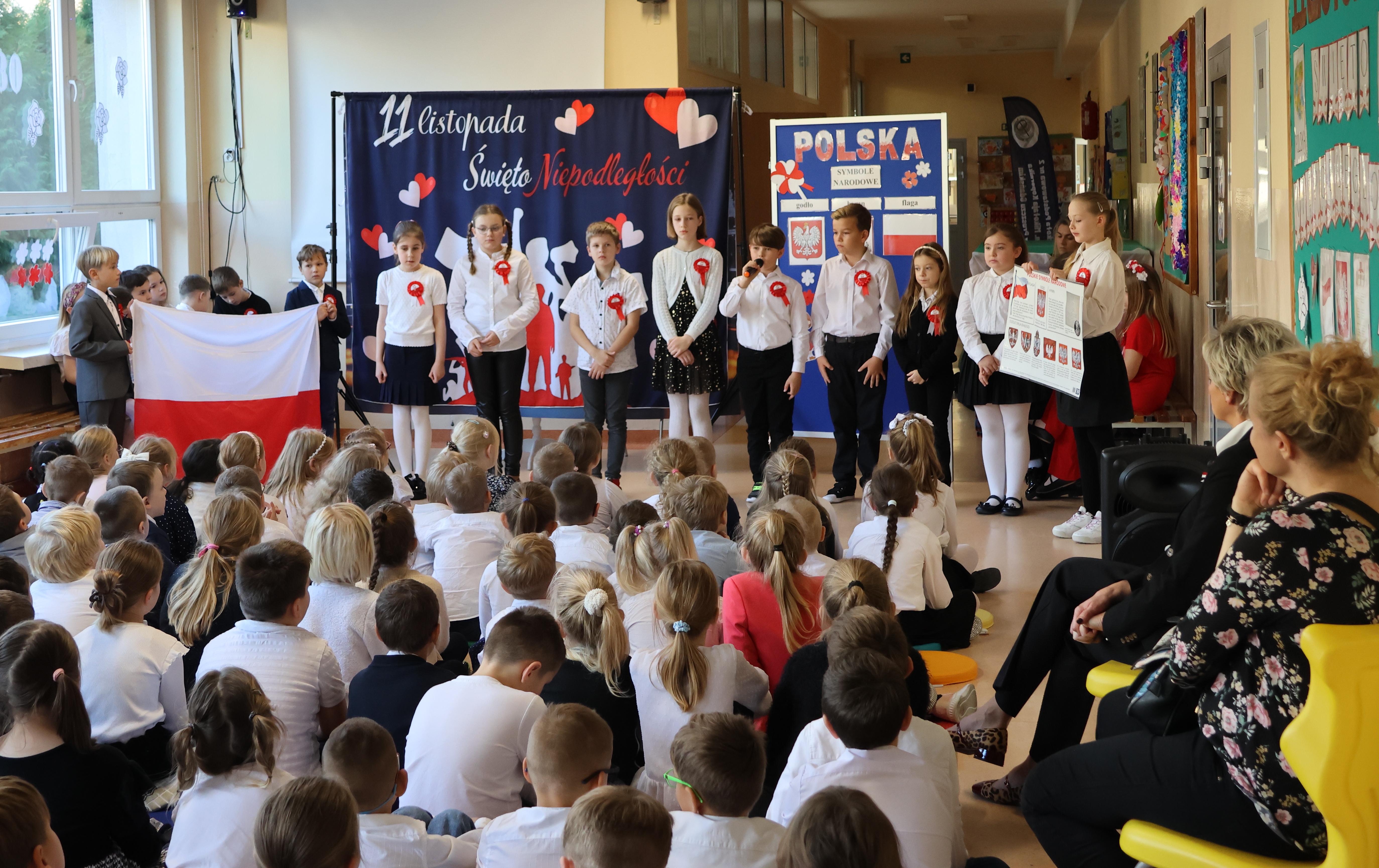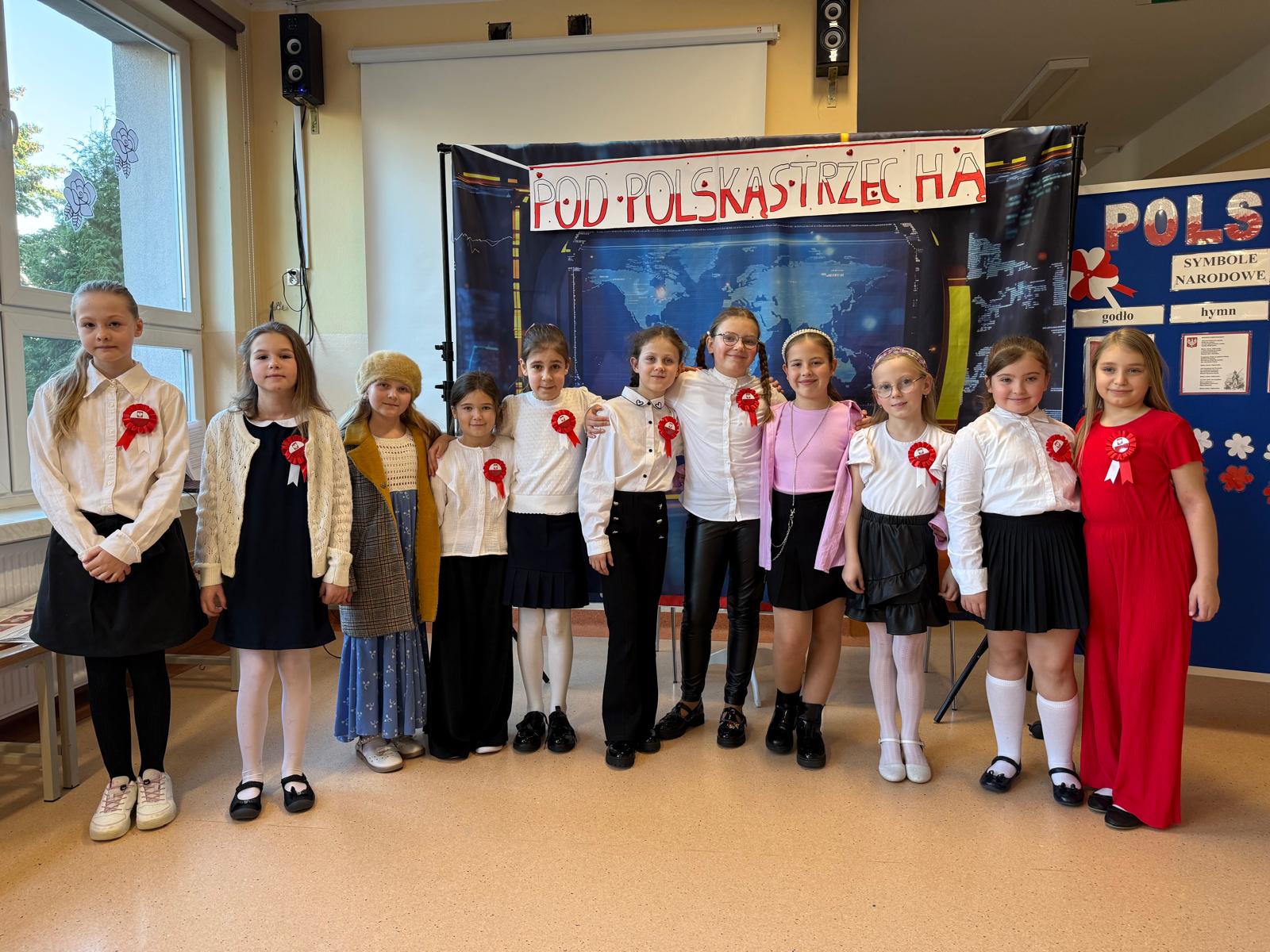 Całość uświetniły piękne piosenki patriotyczne, w tym „Flaga Polski” i „Zachwyca nas Polska”, a także wspólne odśpiewanie hymnu narodowego. Uroczystość była pełna wzruszeń i dumy z bycia Polakiem, a młodzi aktorzy z klasy 3a pokazali, że patriotyzm można wyrażać słowem, śpiewem i gestem.