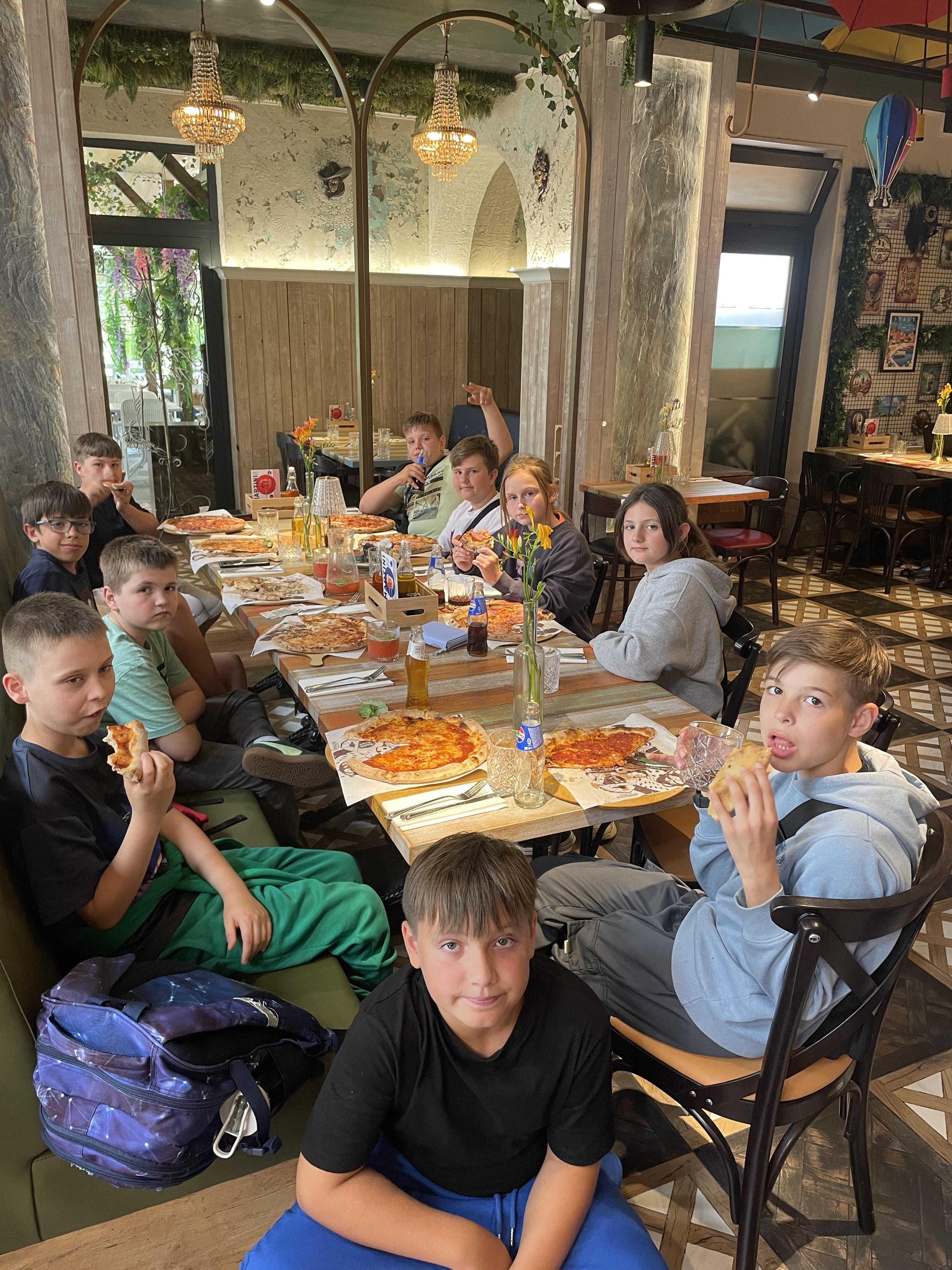 18 czerwca 2025 r. wybraliśmy się na pieszą wycieczkę do pobliskiej pizzerii. Wyjście rozpoczęło się po porannych lekcjach – zgodnie z planem zajęć – a trasa spacerowa pozwoliła uczniom aktywnie spędzić czas na świeżym powietrzu i lepiej poznać najbliższą okolicę.