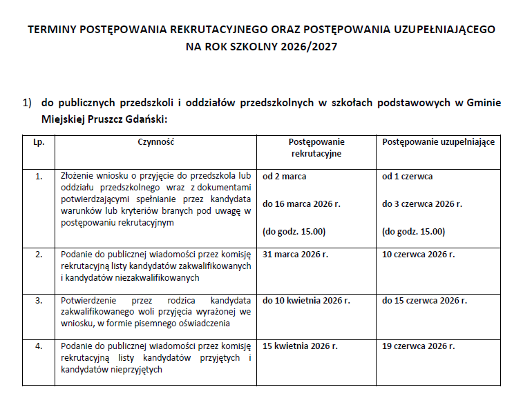Informujemy, że dnia 02.03.2026 r. zostanie uruchomiona rekrutacja w serwisie dla rodziców https://pruszczgdanski.formico.pl