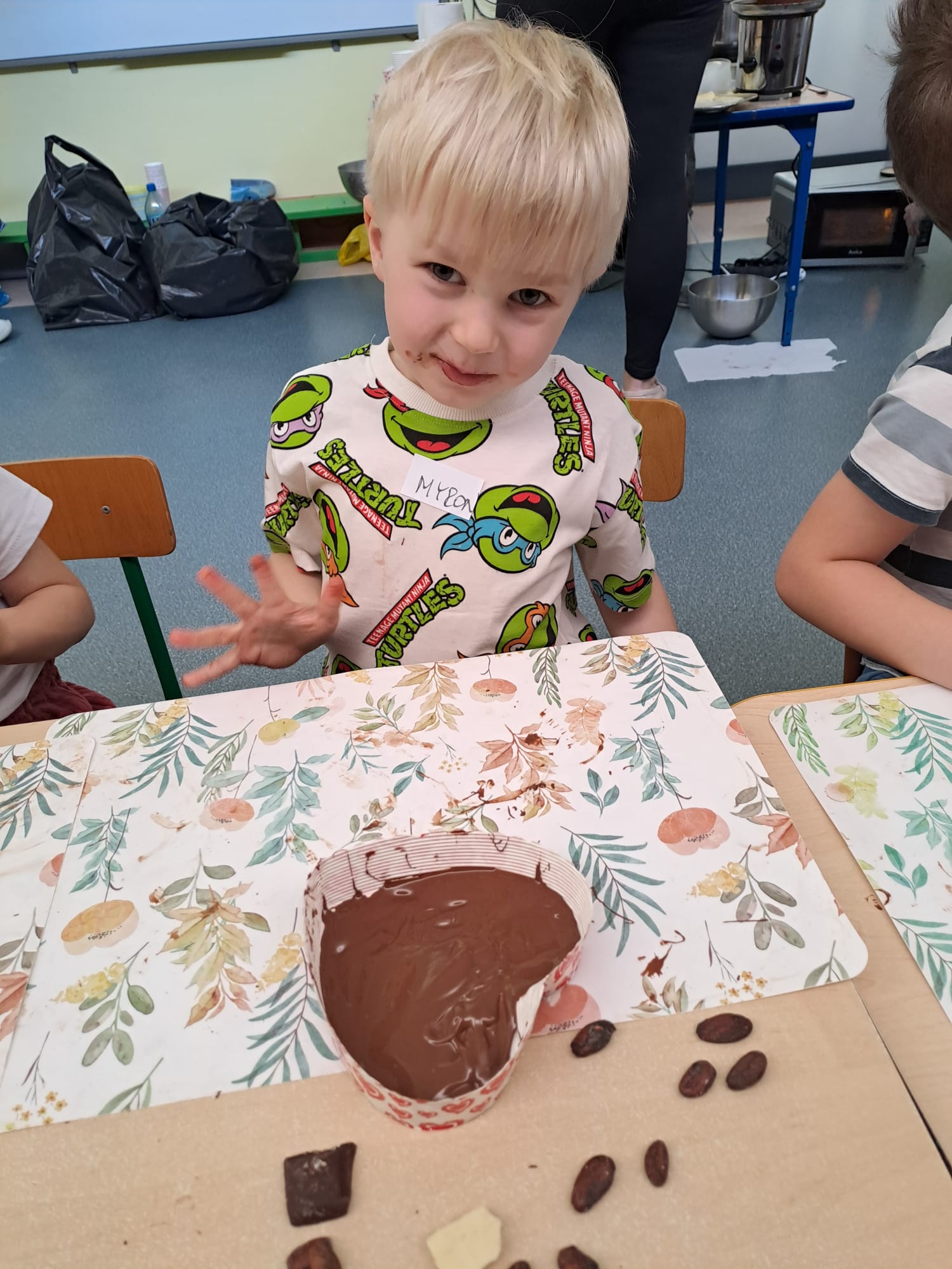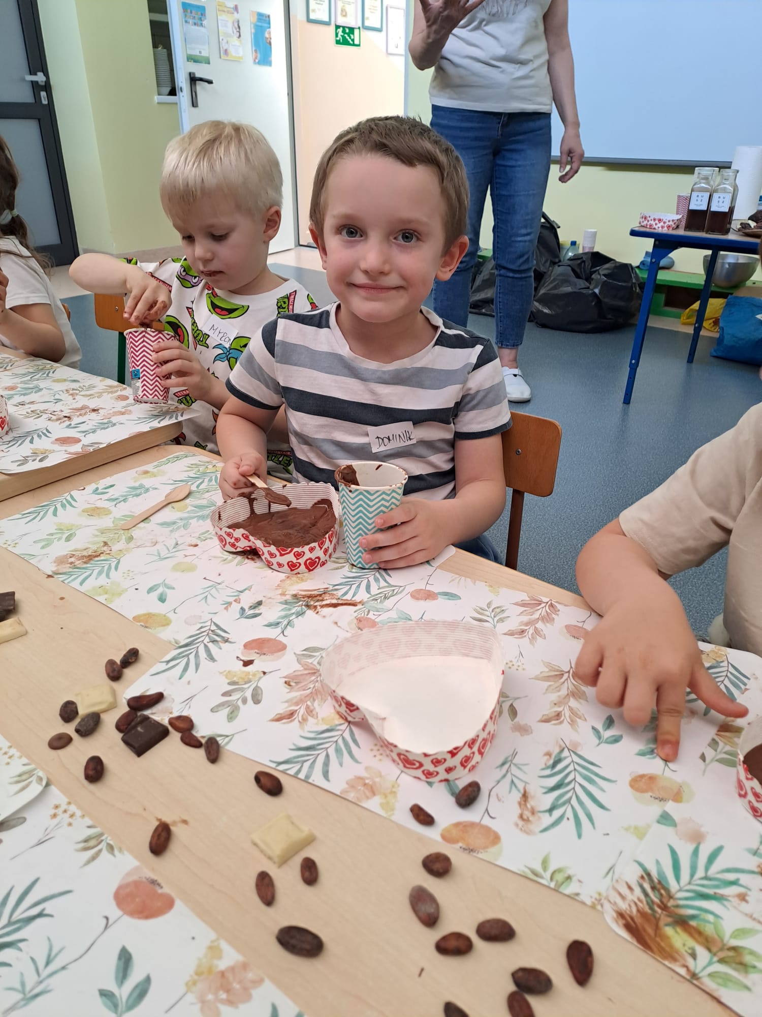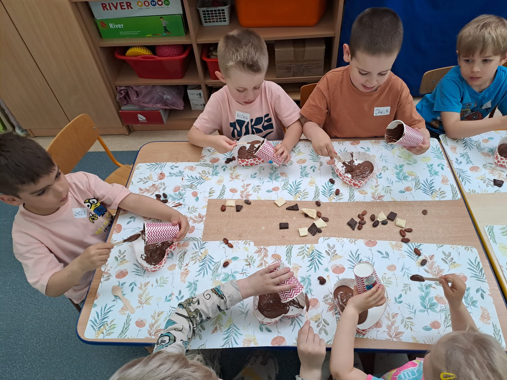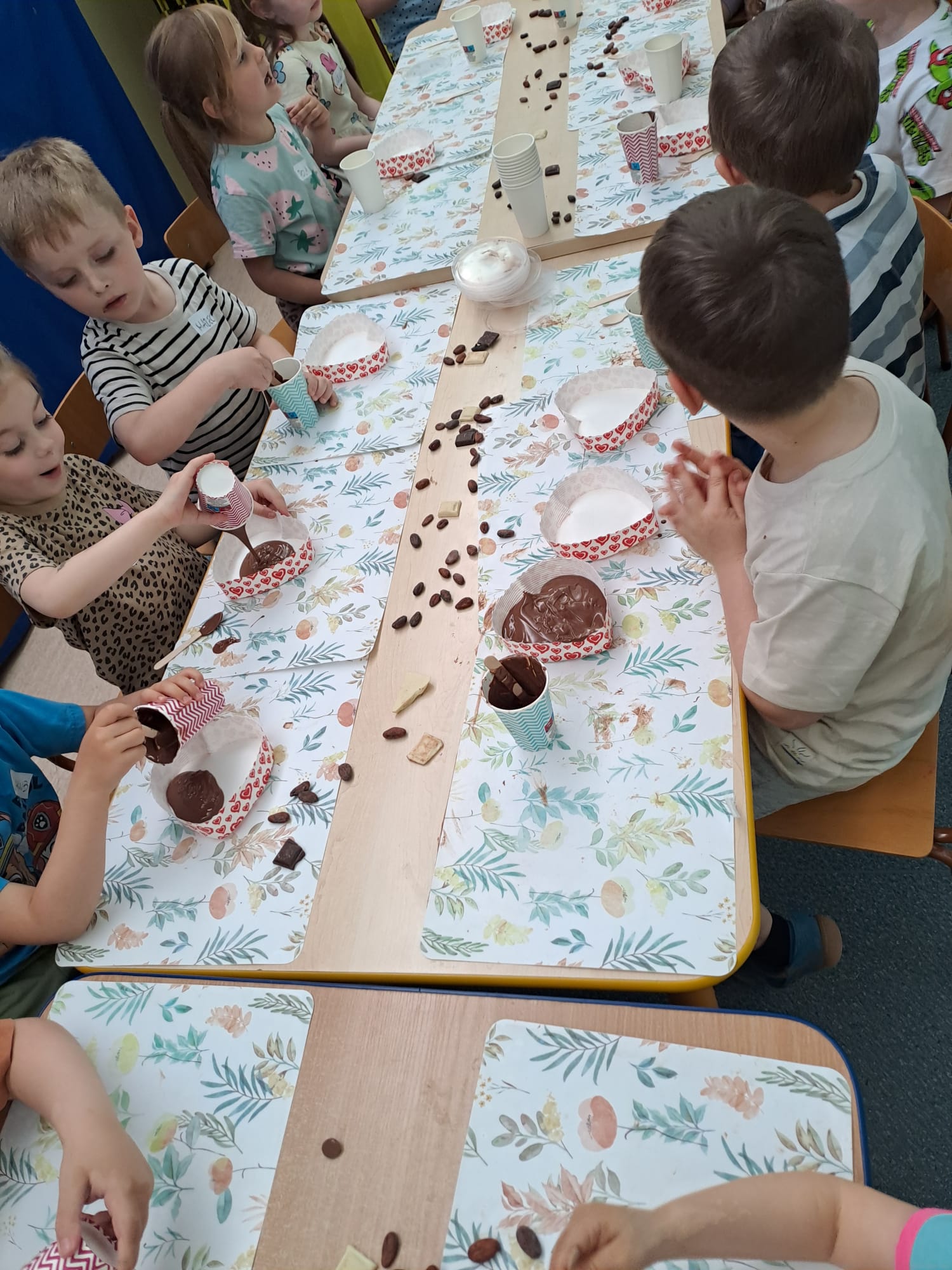 Temat naszych ostatnich warsztatów BUSZ pozostawał niespodzianką do ostatniej chwili. Mieliśmy na nich bowiem wykonać... prezenty na Dzień Mamy i Taty! Jak się okazało, tym razem przygotowywaliśmy słodkie, czekoladowe pyszności. Płynną czekoladą wypełniliśmy formy w kształcie serca, a następnie samodzielnie udekorowaliśmy je różnymi dodatkami. Było pachnąco, czekoladowo i przeeeepyysznieeee :)