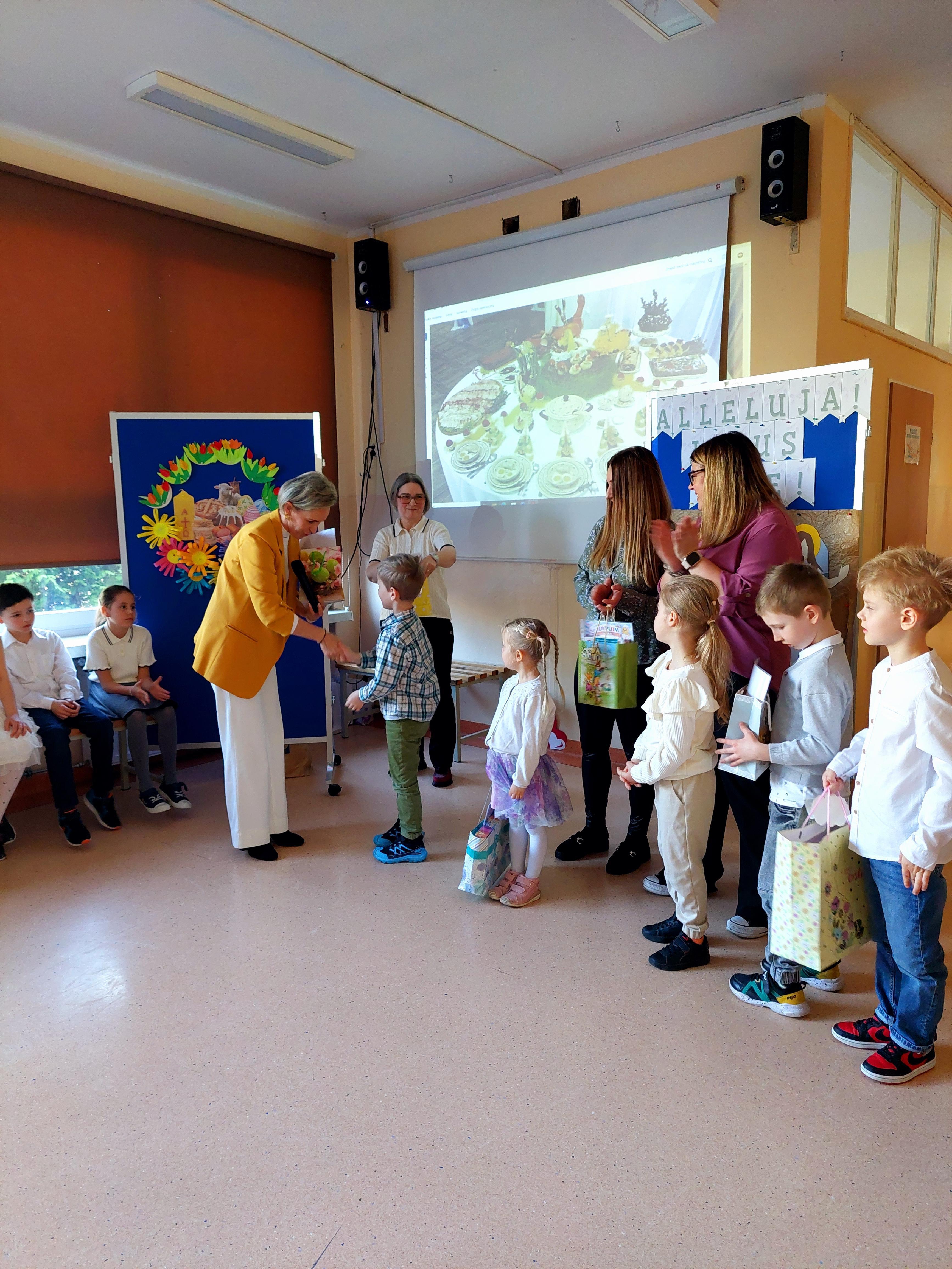 1kwietnia na uroczystym apelu w szkole Pani Dyrektor Justyna Mikulska wręczyła laureatom dyplomy oraz nagrody. Pozostałe dzieci biorące udział w konkursie również otrzymały dyplomy oraz słodkość : )
