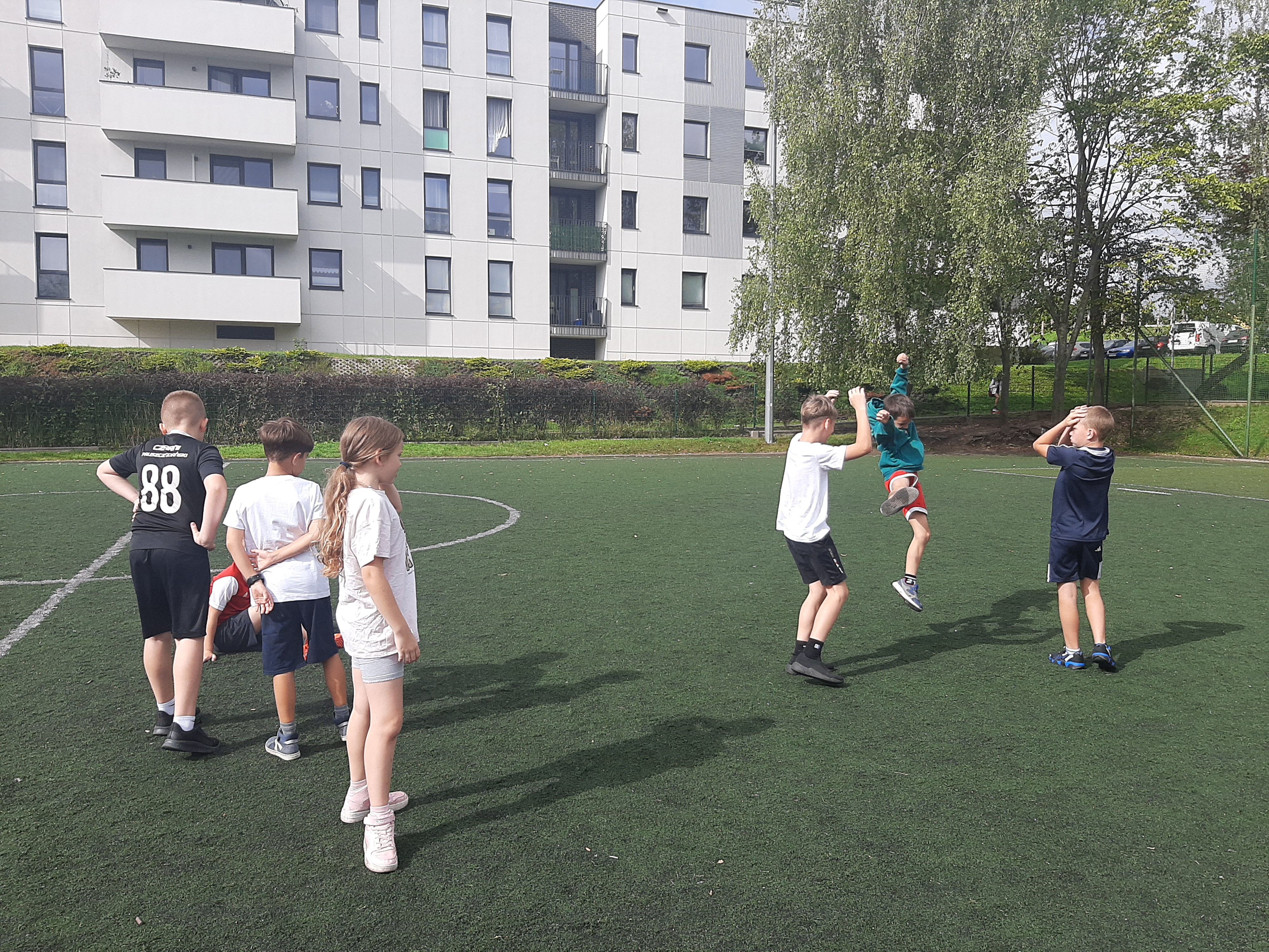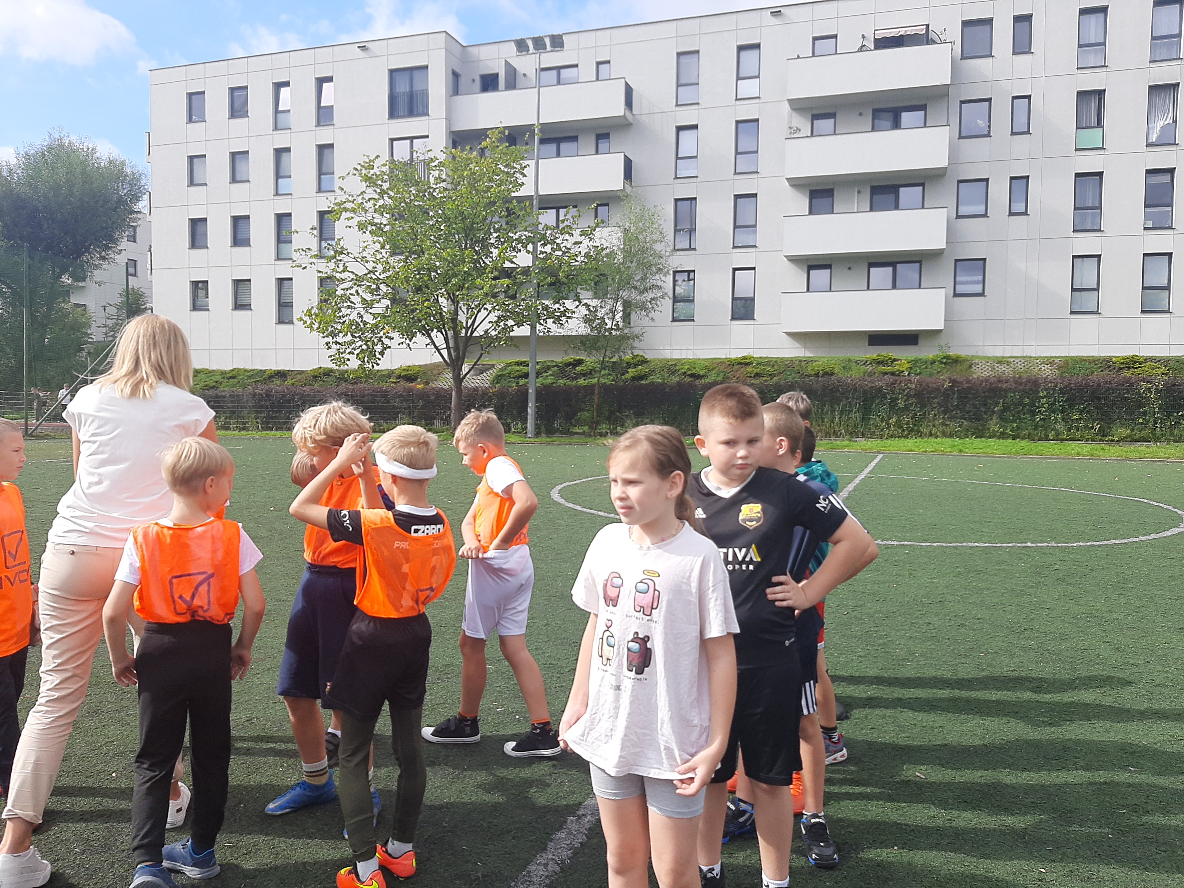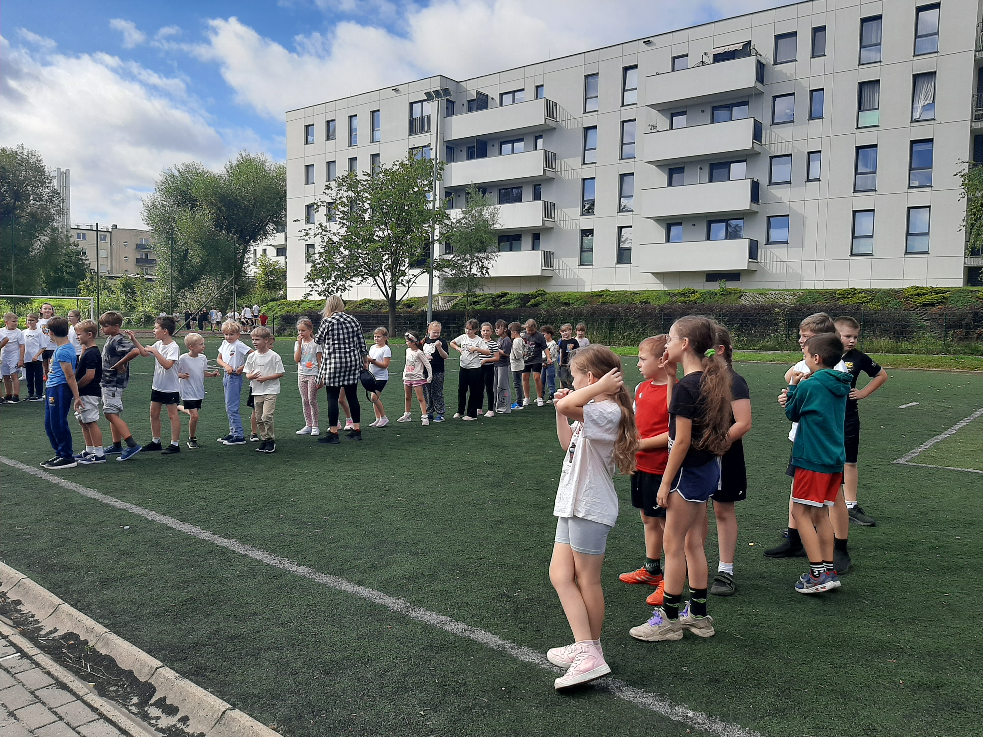 19 września 2025r. odbyły się emocjonujące rozgrywki piłki nożnej dla uczniów klas I–III. W zawodach z dużym zaangażowaniem wzięli udział również uczniowie klasy 3b. Po solidnej rozgrzewce wszyscy zawodnicy przystąpili do sportowej rywalizacji, wspierani przez głośny doping swoich klas. Choć naszej drużynie nie udało się odnieść zwycięstwa, uczniowie z 3b walczyli dzielnie i z dużym zapałem. Pokazali prawdziwego ducha sportu i udowodnili, że najważniejsze są zdrowie, ruch i dobra zabawa. Gratulujemy wszystkim uczestnikom!