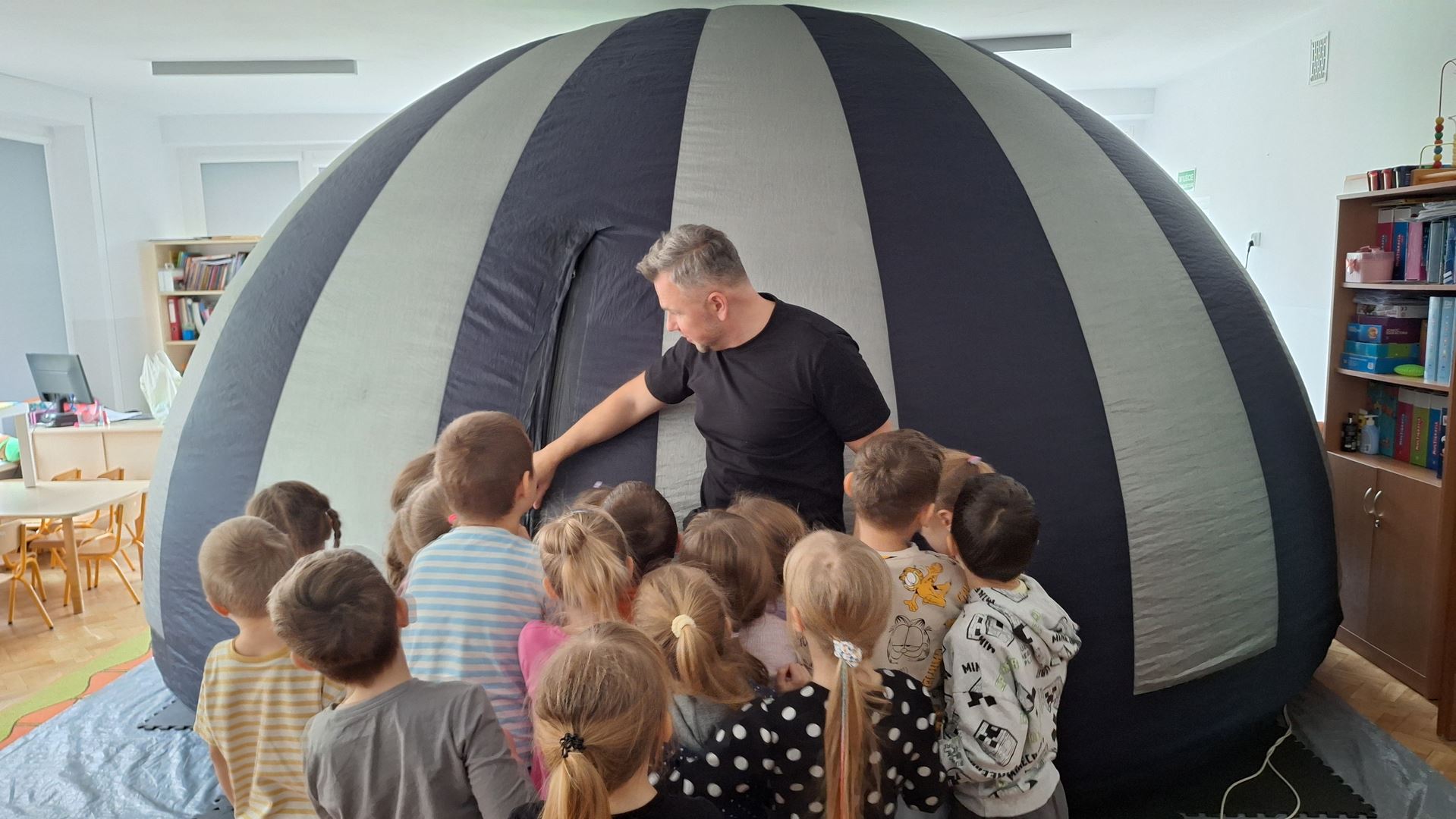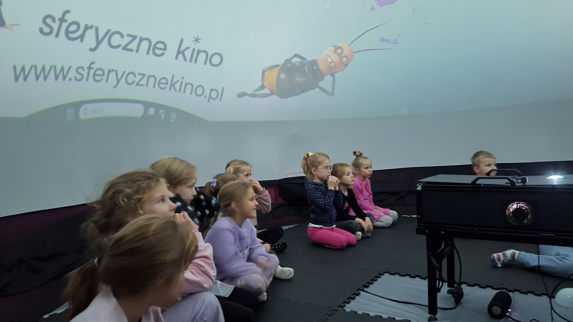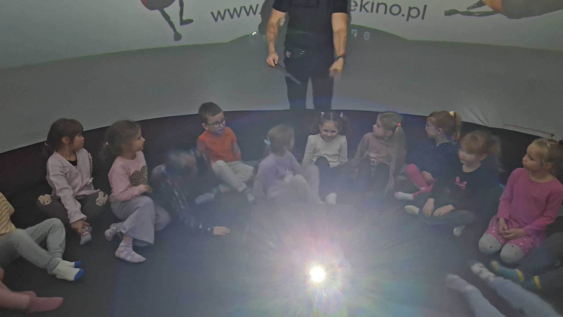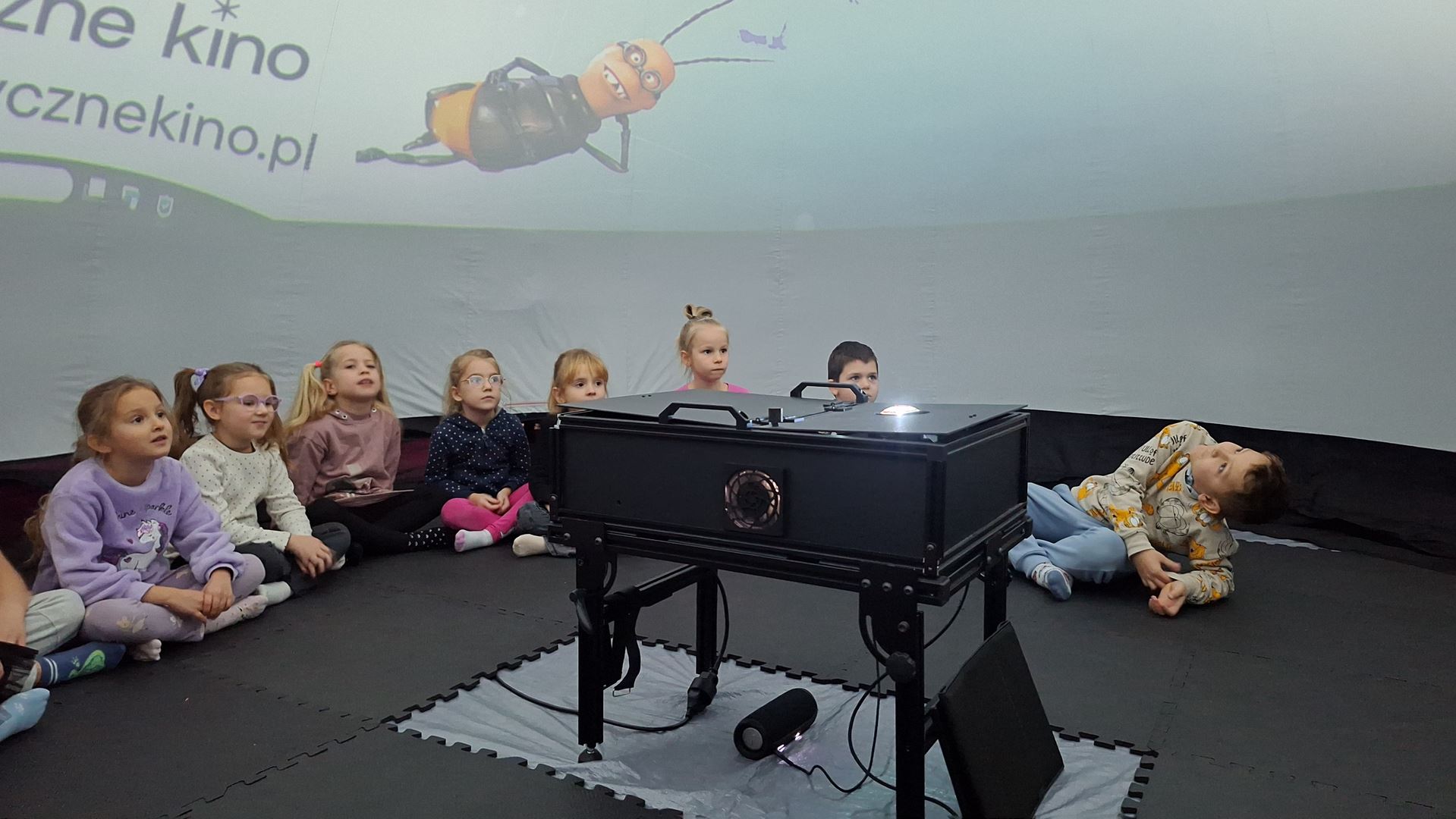 Do naszego przedszkola zawitało niezwykłe Sferyczne Kino „George”, które zapewniło przedszkolakom wyjątkowe, pełne emocji wrażenia. W specjalnej, sferycznej kopule ustawionej na sali dzieci mogły poczuć się tak, jakby znalazły się w samym centrum filmowych wydarzeń.