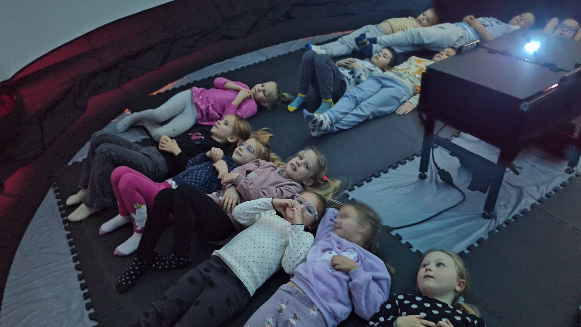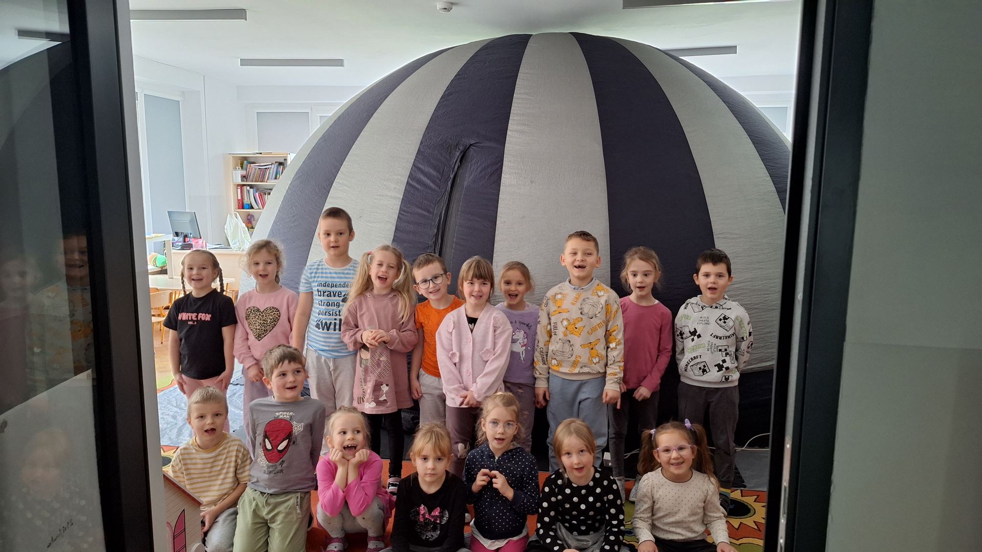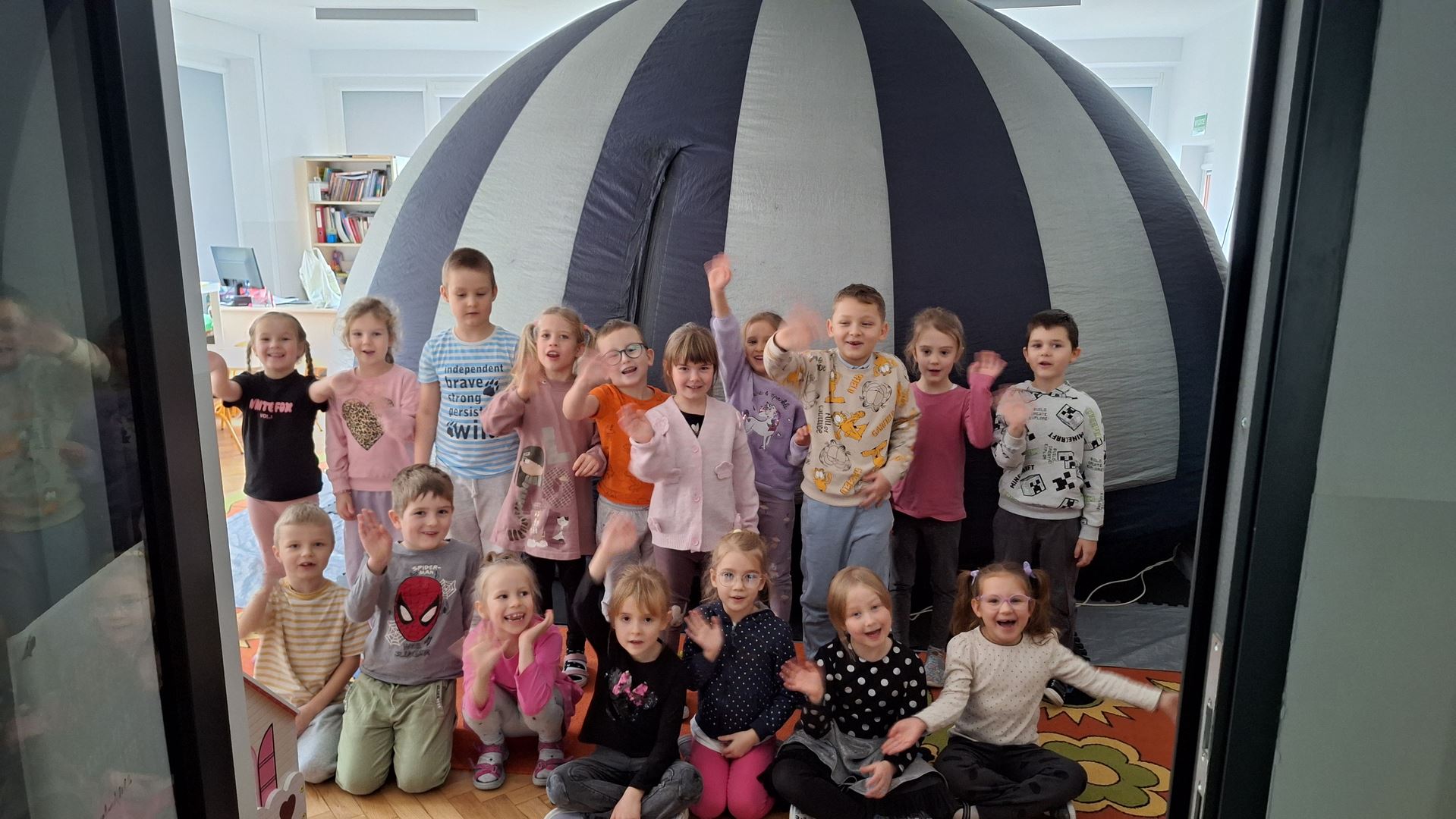 Do naszego przedszkola zawitało niezwykłe Sferyczne Kino „George”, które zapewniło przedszkolakom wyjątkowe, pełne emocji wrażenia. W specjalnej, sferycznej kopule ustawionej na sali dzieci mogły poczuć się tak, jakby znalazły się w samym centrum filmowych wydarzeń.