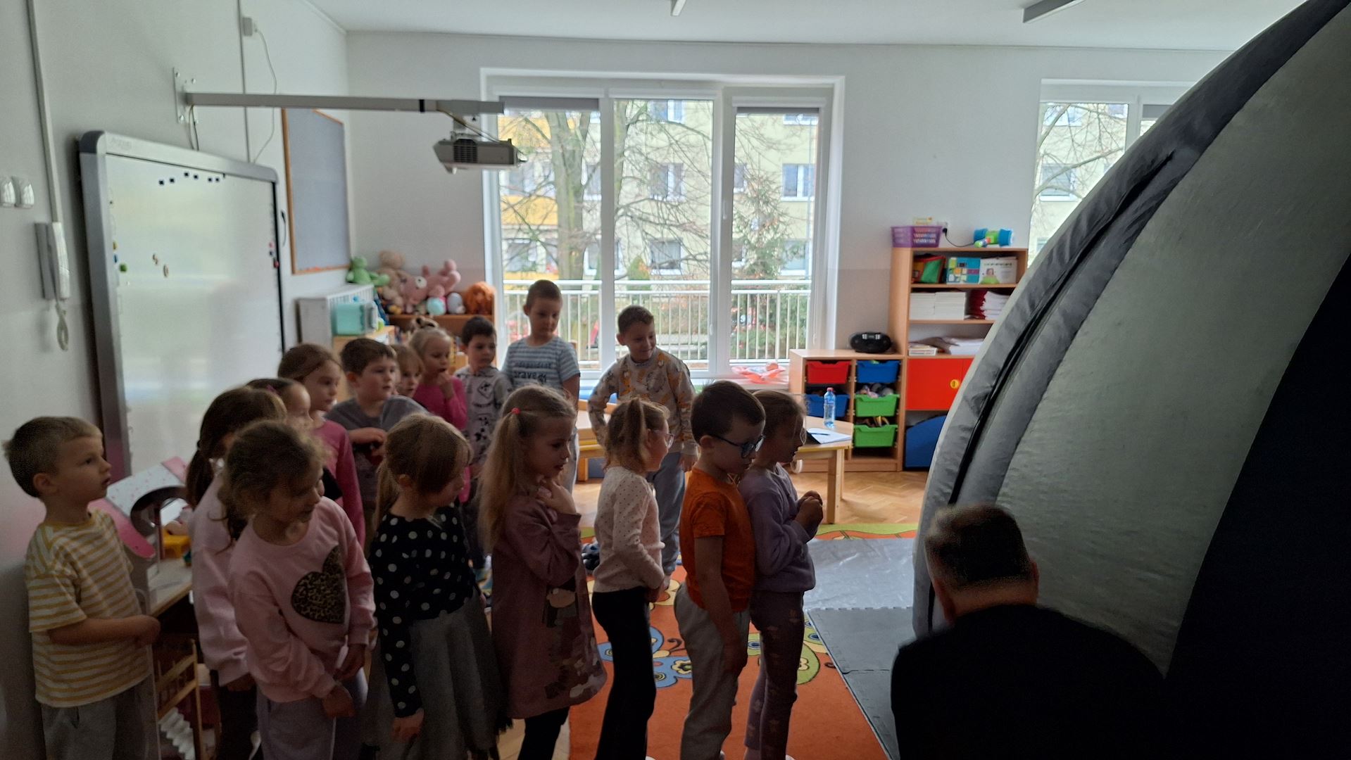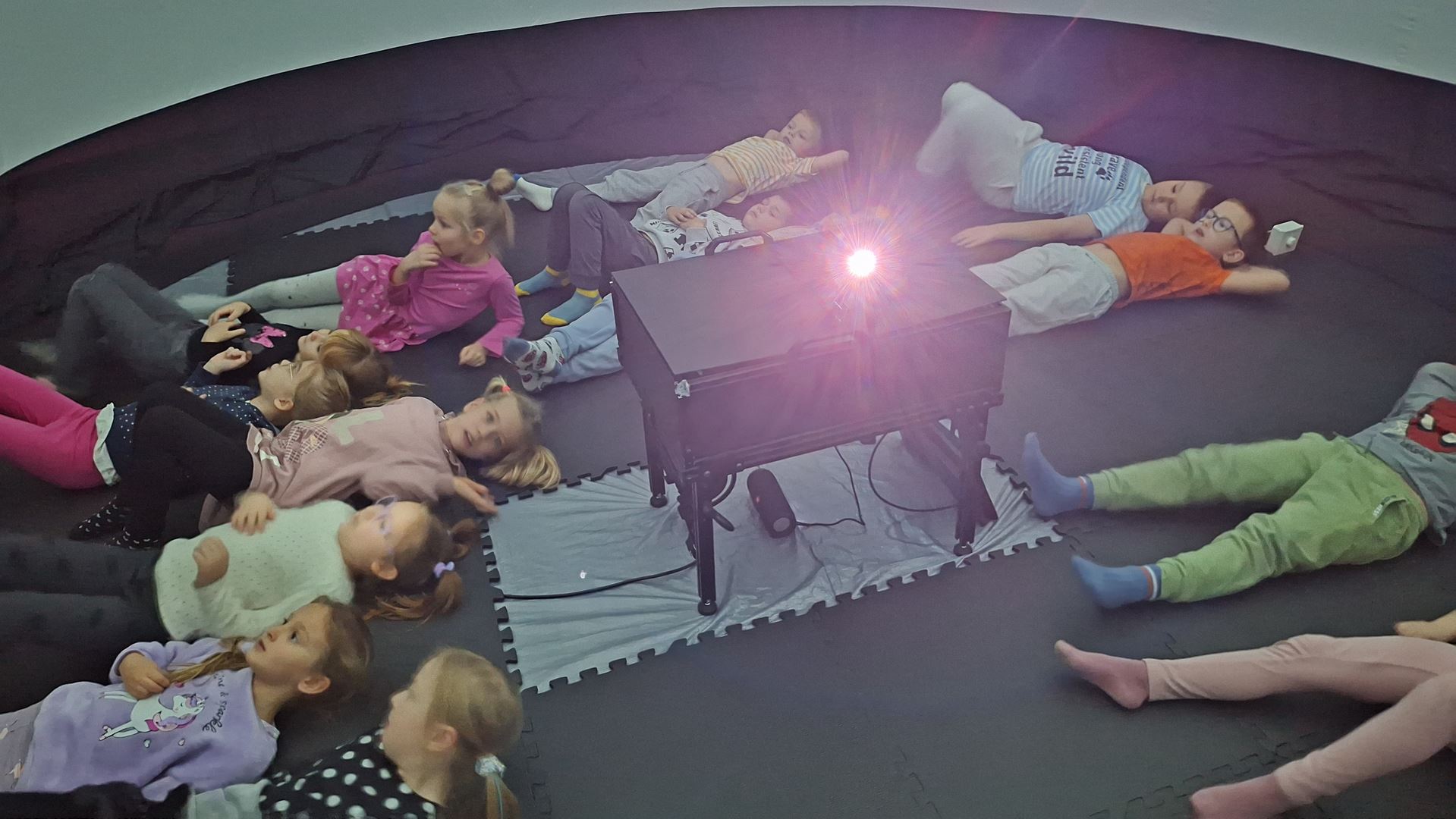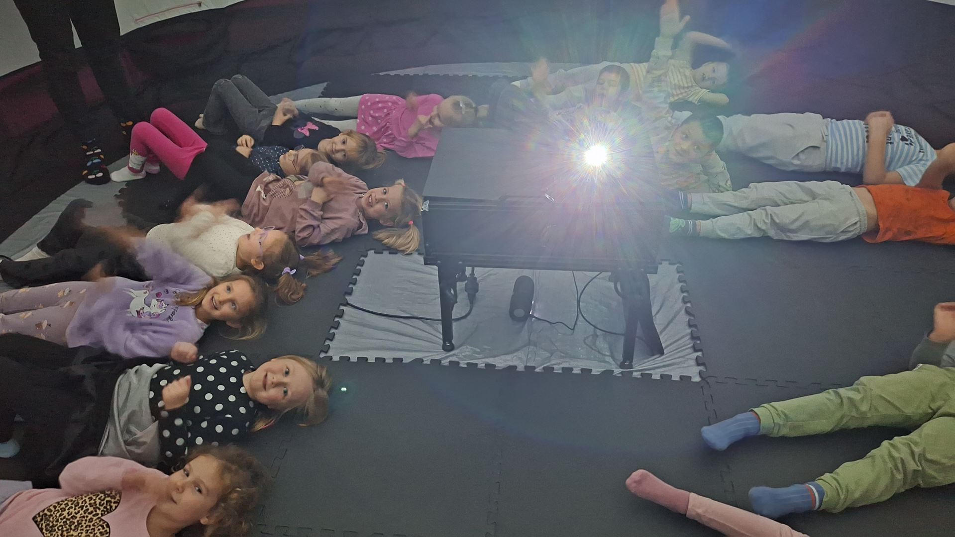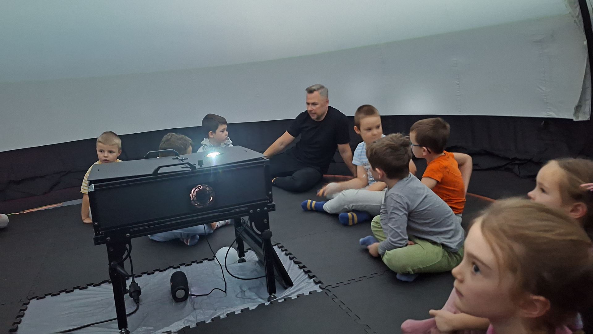 Do naszego przedszkola zawitało niezwykłe Sferyczne Kino „George”, które zapewniło przedszkolakom wyjątkowe, pełne emocji wrażenia. W specjalnej, sferycznej kopule ustawionej na sali dzieci mogły poczuć się tak, jakby znalazły się w samym centrum filmowych wydarzeń.