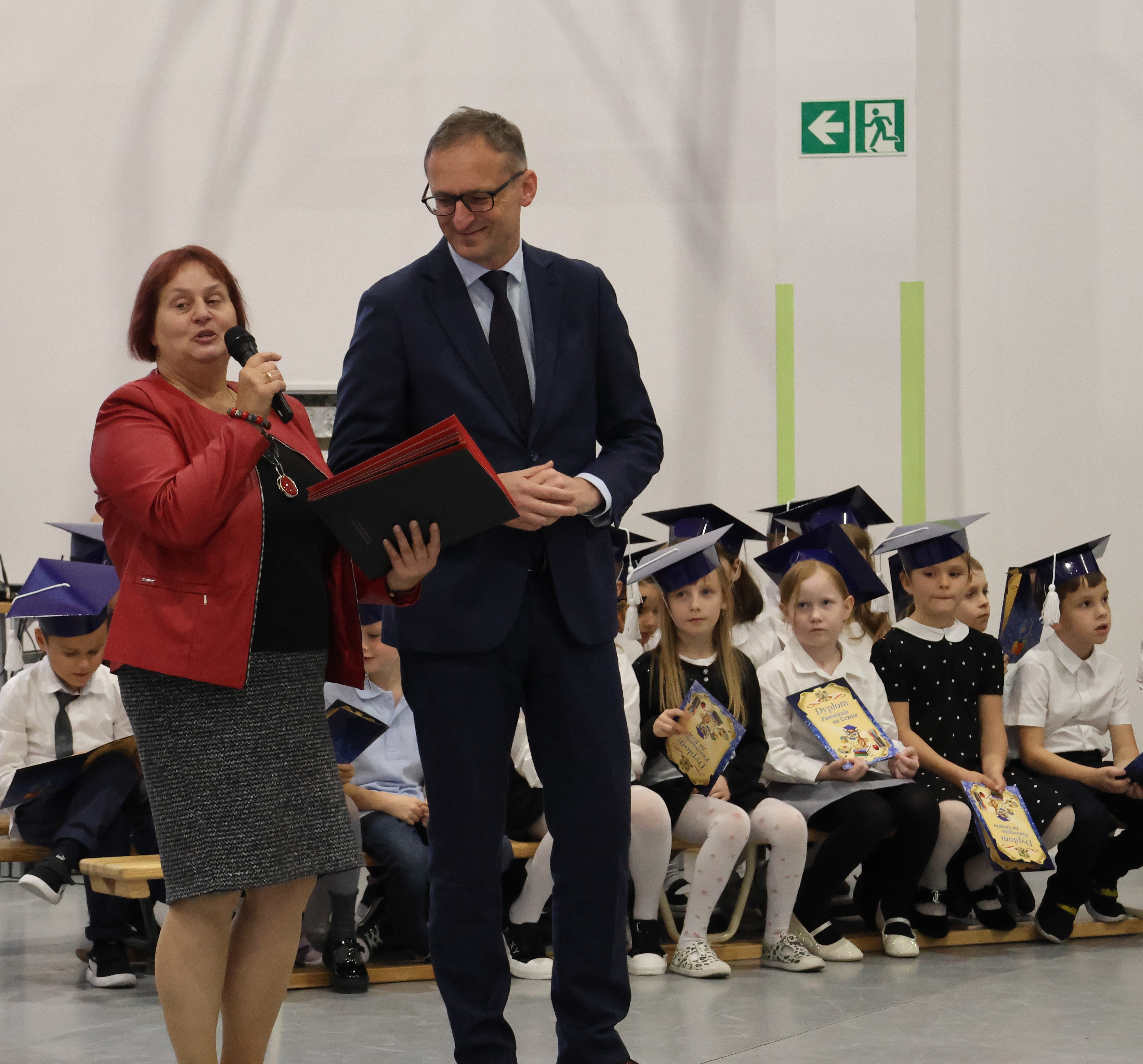 Na zakończenie uroczystości Pan Burmistrz wręczył na ręce wychowawczyń wyjątkowy prezent – bilety do teatru lub kina dla każdej klasy pierwszej. Po wspólnych, pamiątkowych zdjęciach na uczniów czekały drobne upominki, które były miłym akcentem kończącym to wyjątkowe wydarzenie.