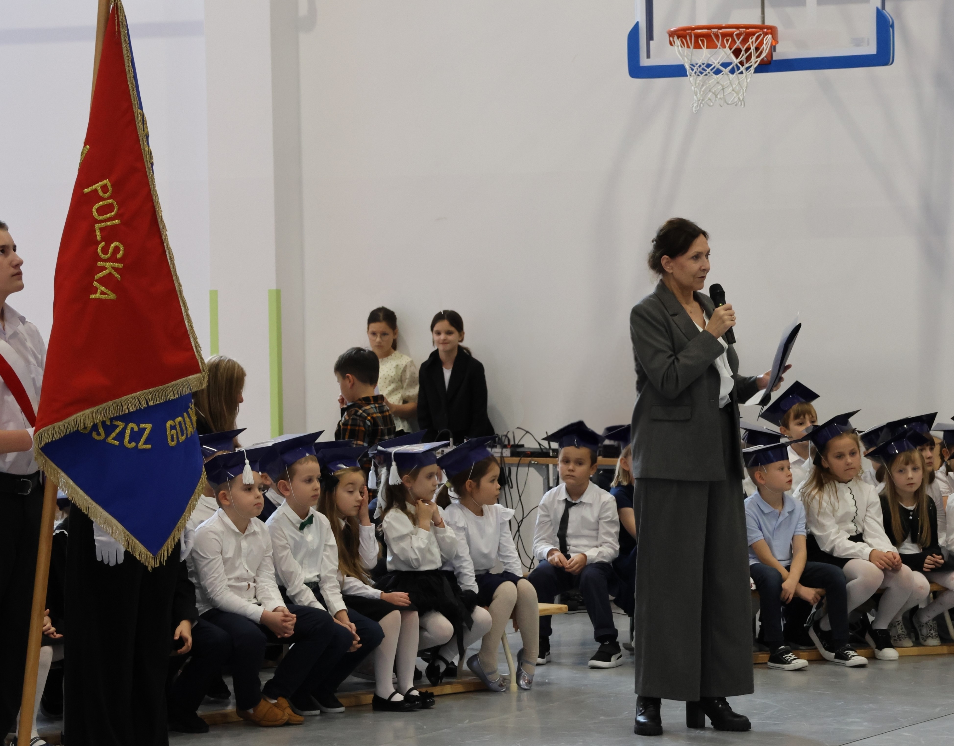 w ich życiu. Podziękowała im za zaufanie oraz podkreśliła ważną rolę, jaką odgrywają w edukacji swoich dzieci. Nie zabrakło także słów wdzięczności skierowanych do nauczycieli za ich zaangażowanie, ogromne serce i wkład pracy w wychowanie najmłodszych uczniów. Na zakończenie Pani Dyrektor podziękowała zaproszonym gościom za obecność w tym szczególnym dniu dla całej społeczności szkolnej.
