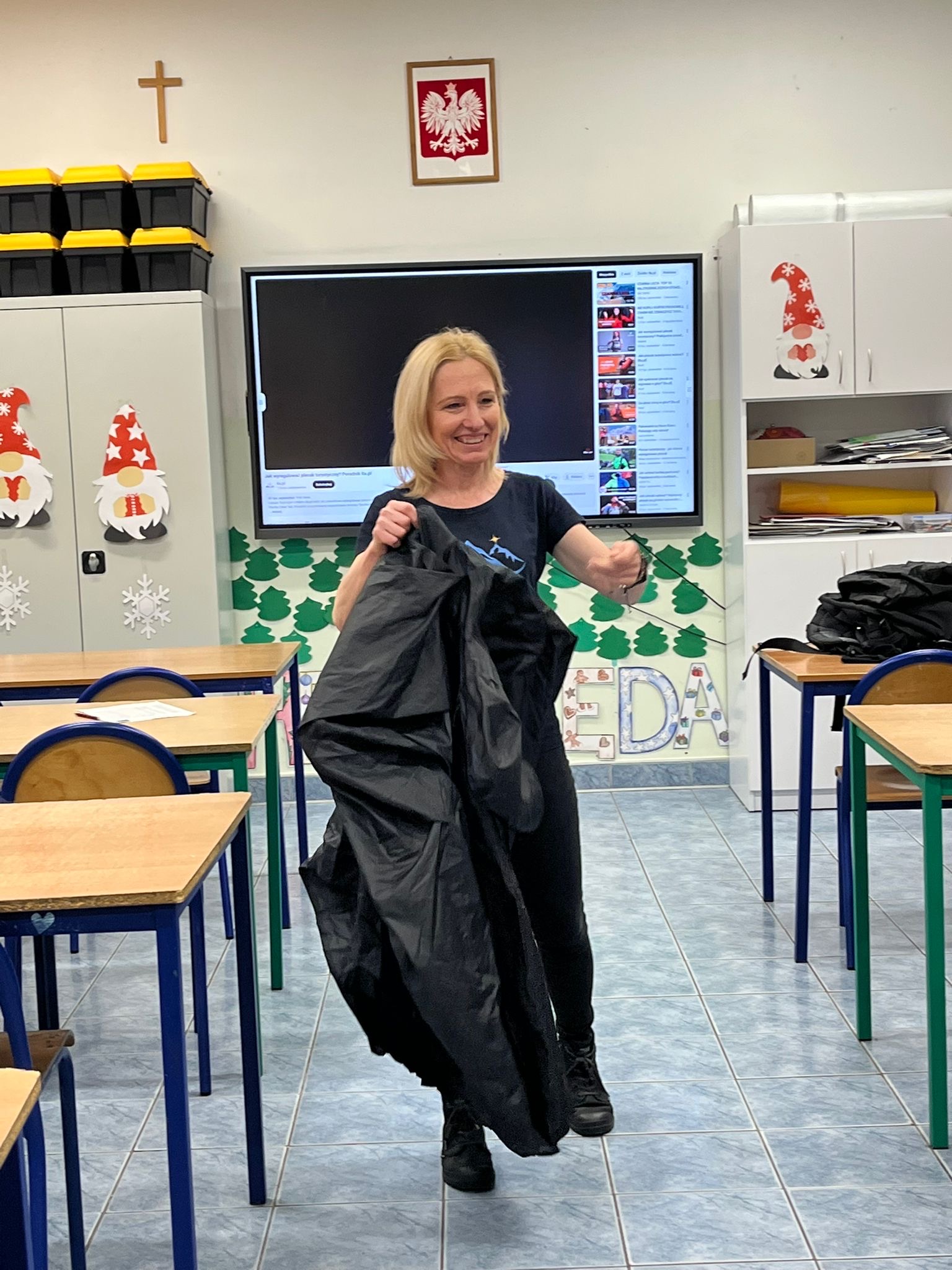 Na zakończenie spotkania uczestnicy koła obejrzeli film, w którym alpinista Łukasz Supergan tłumaczył, jak dopasować plecak do sylwetki, aby zwiększyć komfort i bezpieczeństwo podczas górskich wędrówek. Po filmie uczniowie sami próbowali dopasować plecak, korzystając z porad prezentera.
