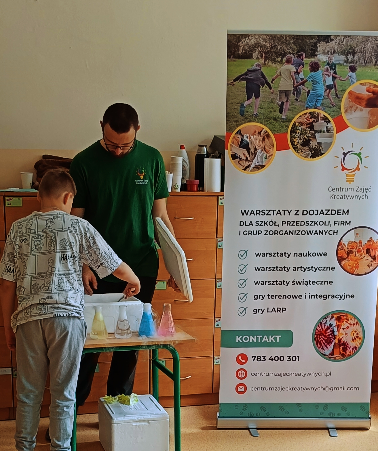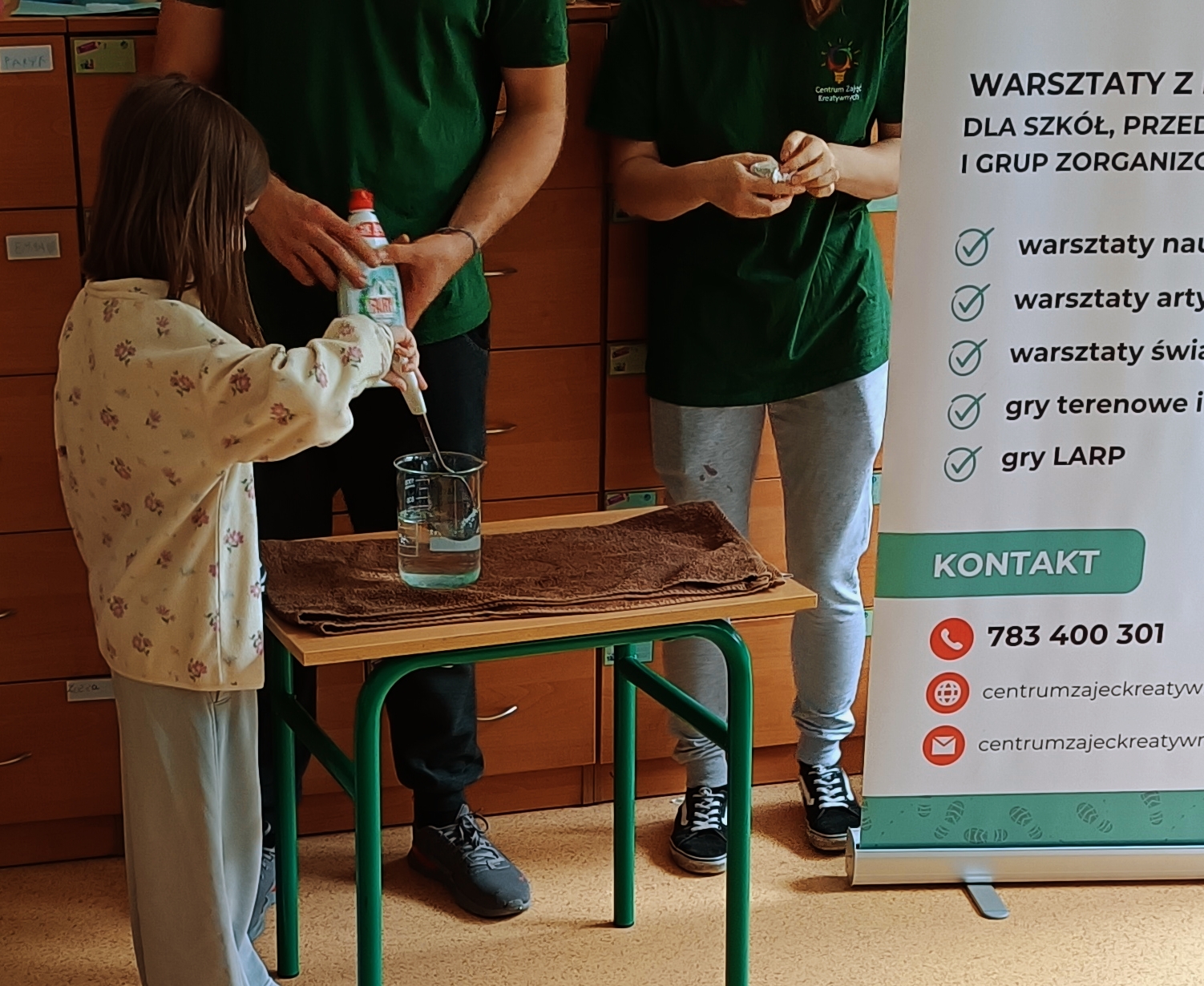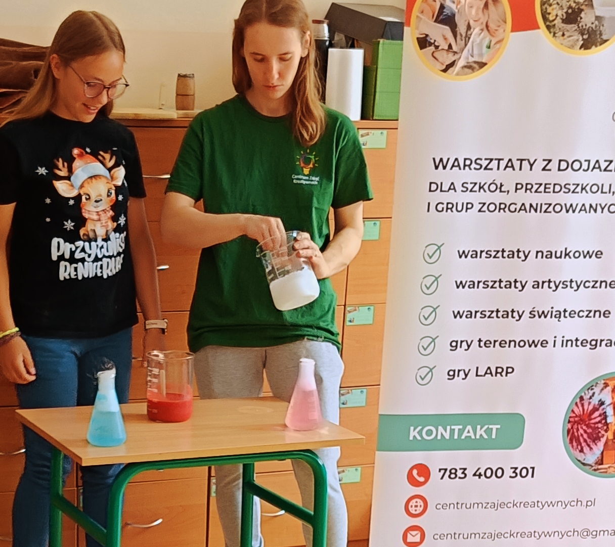 Warsztaty były nie tylko edukacyjne, ale też pełne zabawy i emocji. Uczniowie z zaciekawieniem śledzili efektowne, „dymiące” reakcje i uczyli się, jak bezpiecznie przeprowadzać doświadczenia chemiczne. To spotkanie udowodniło, że nauka może być fascynująca, interaktywna i… naprawdę magiczna!