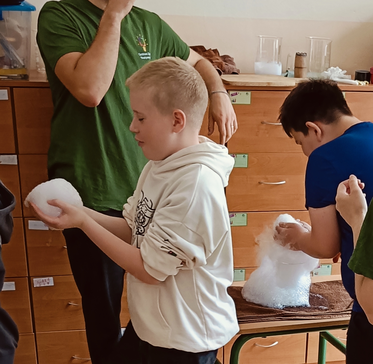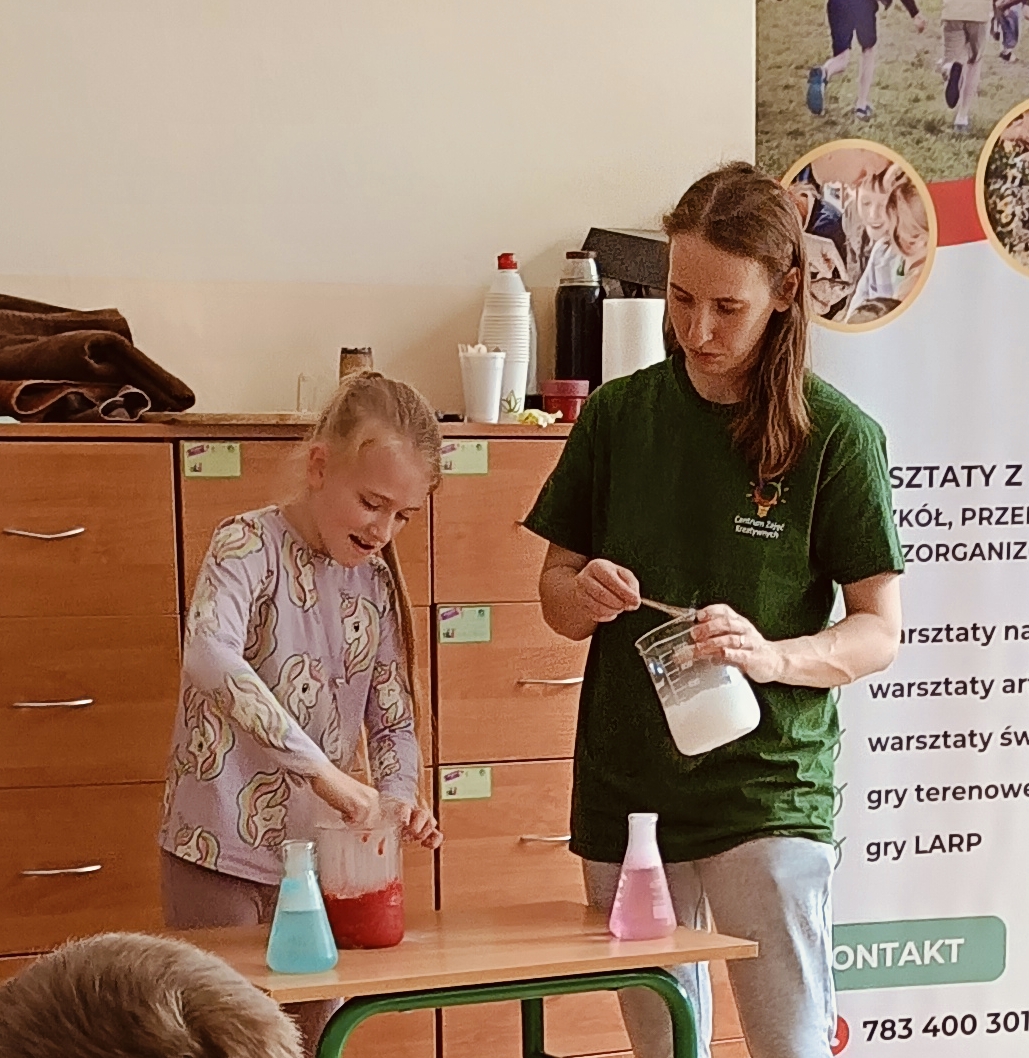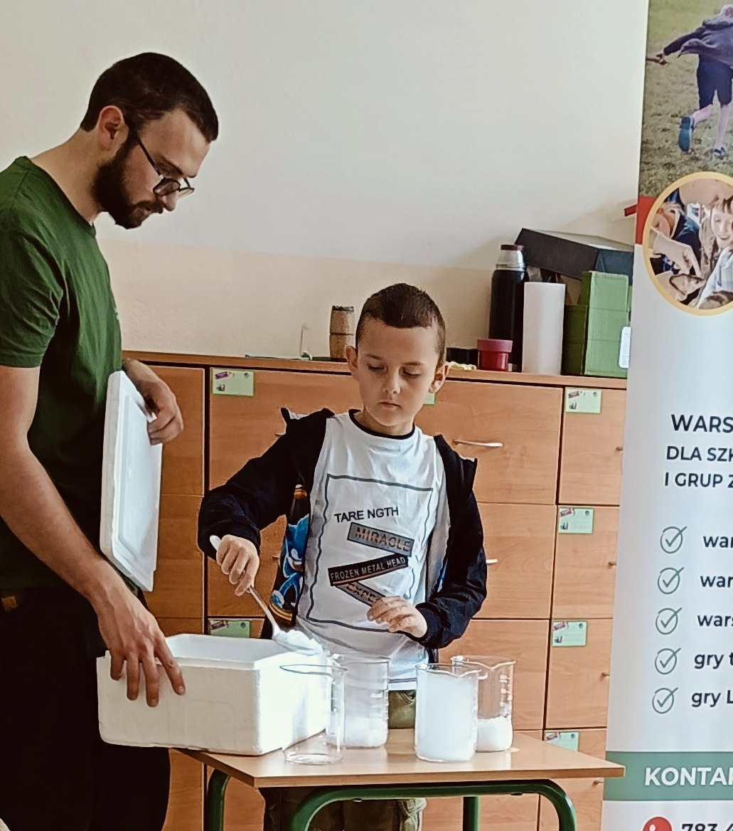 Warsztaty były nie tylko edukacyjne, ale też pełne zabawy i emocji. Uczniowie z zaciekawieniem śledzili efektowne, „dymiące” reakcje i uczyli się, jak bezpiecznie przeprowadzać doświadczenia chemiczne. To spotkanie udowodniło, że nauka może być fascynująca, interaktywna i… naprawdę magiczna!