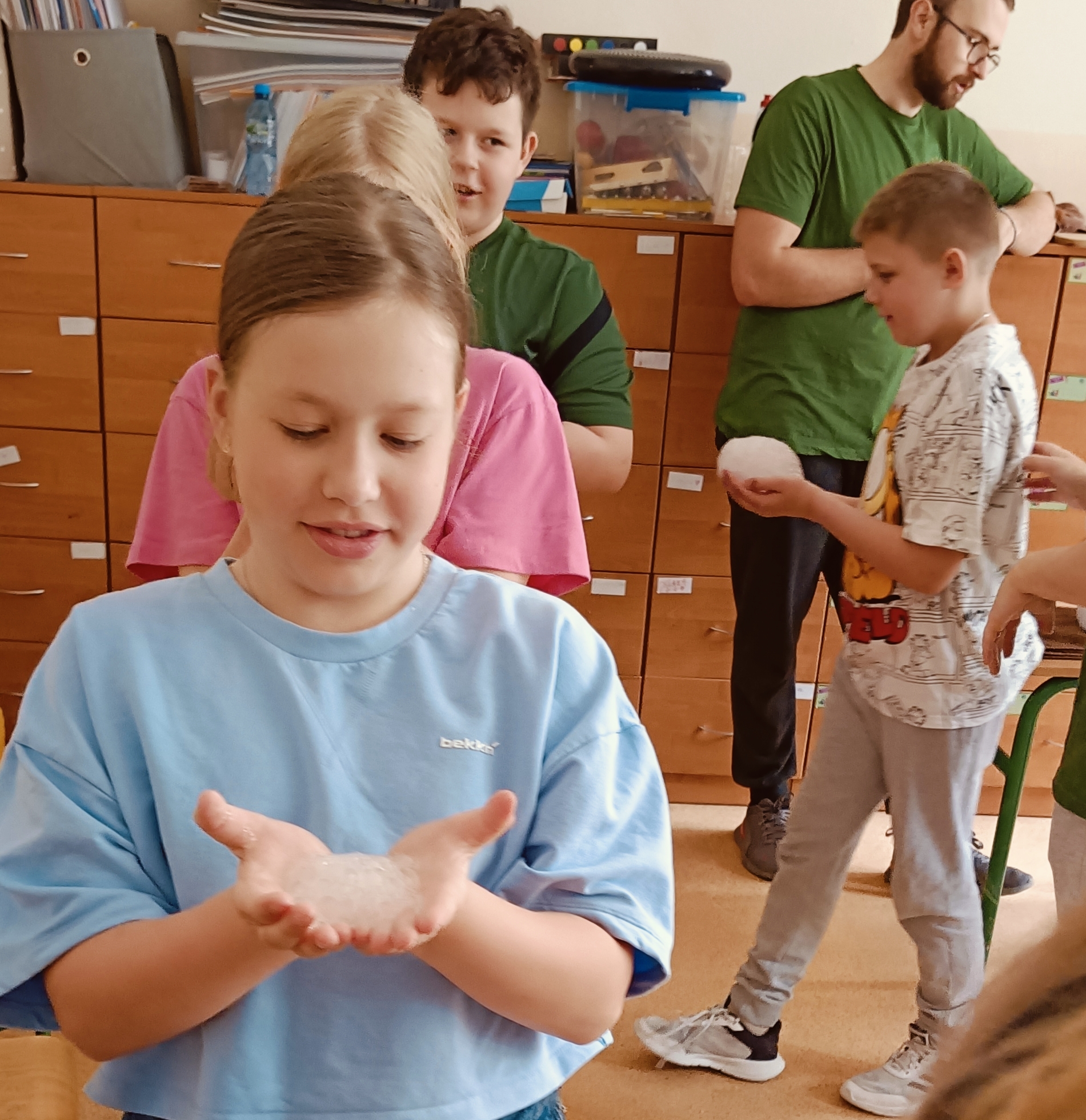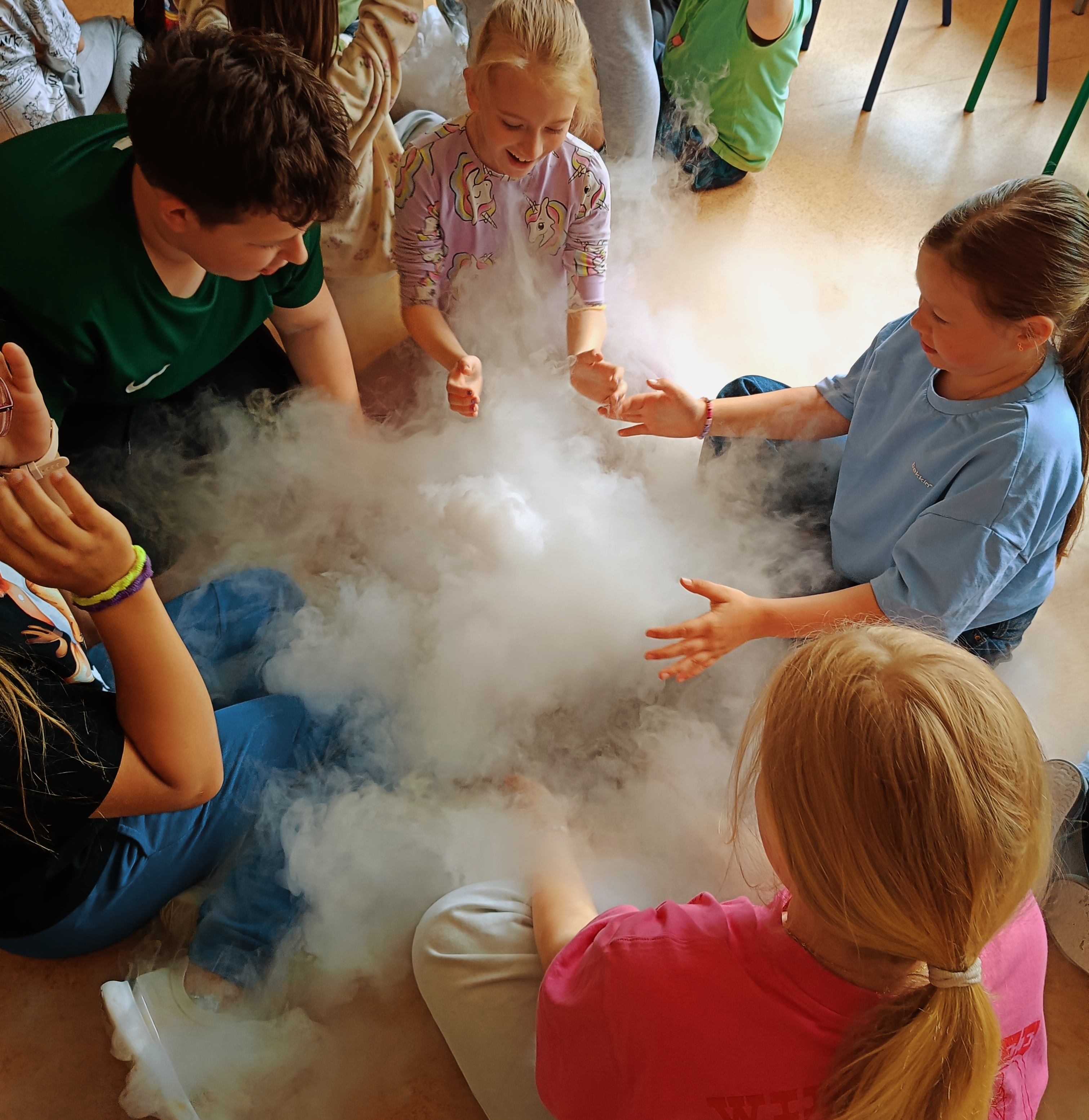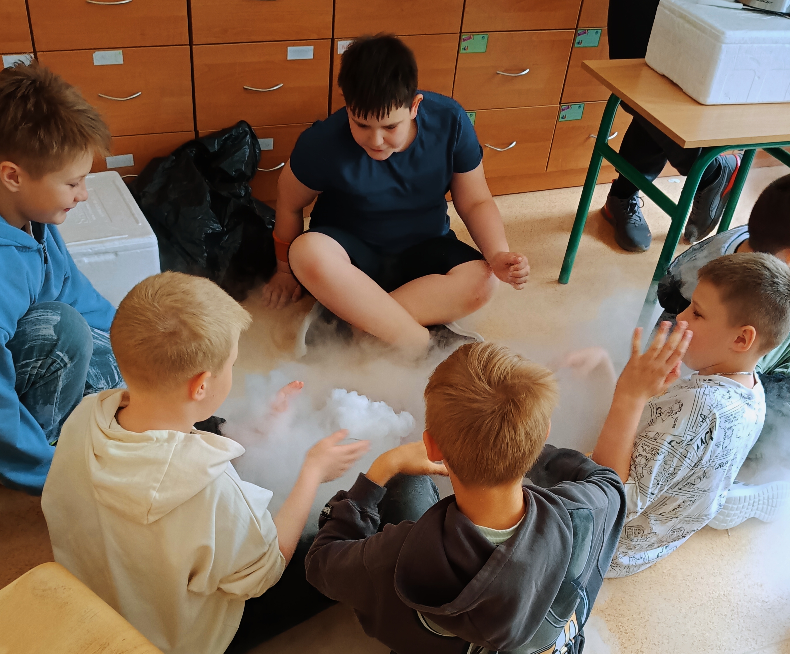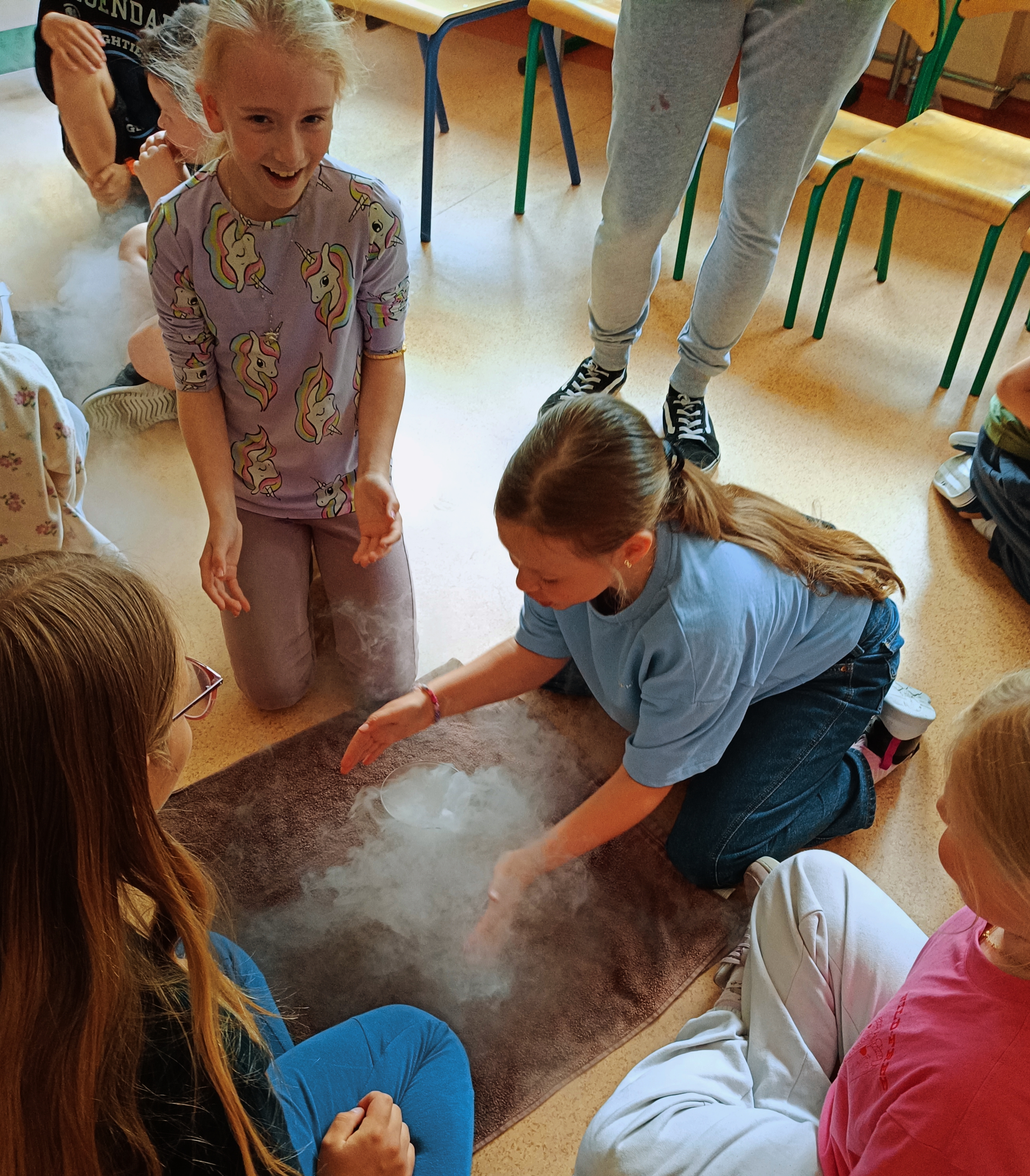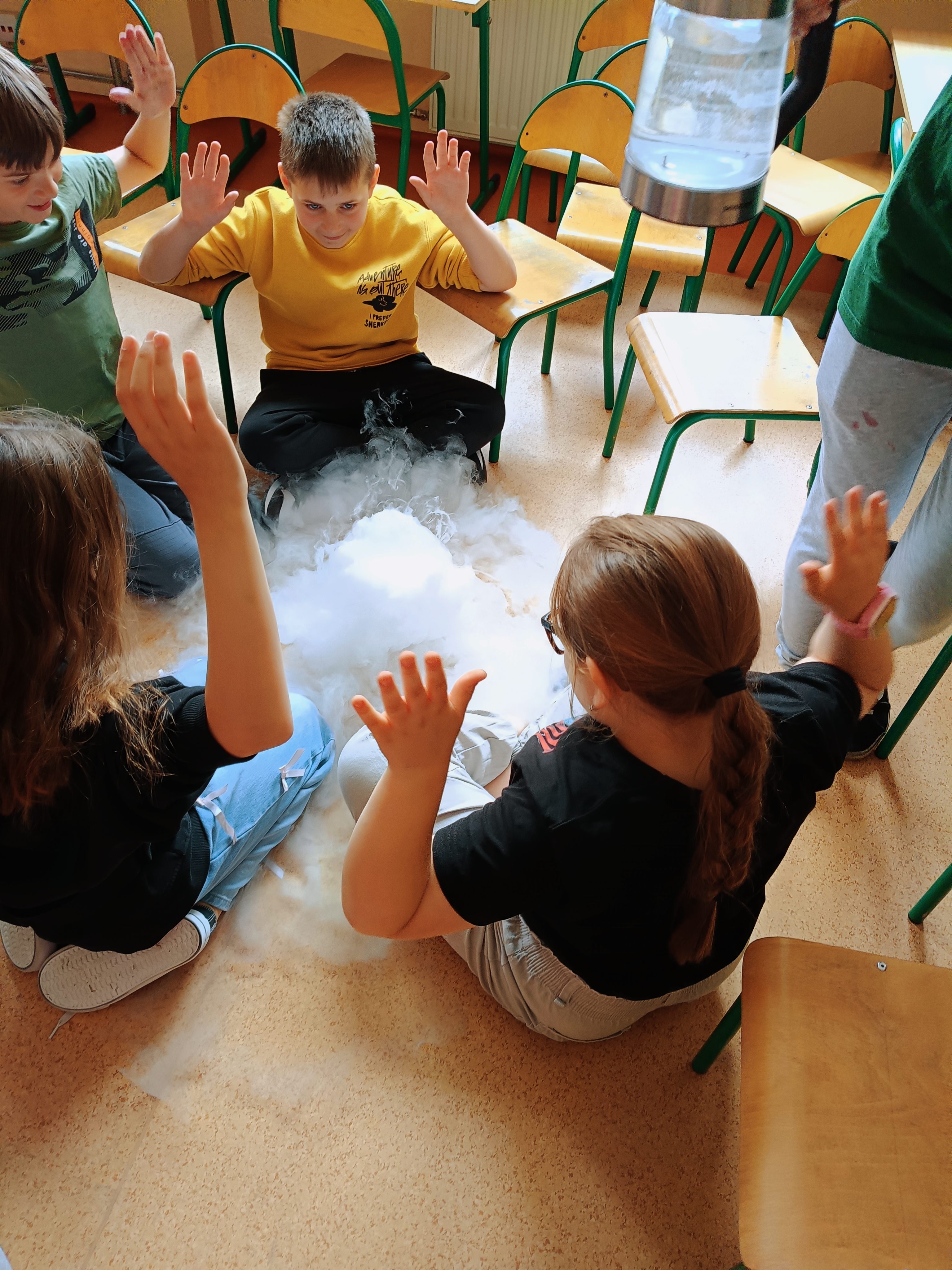 Uczniowie klasy 3b wzięli udział w wyjątkowych warsztatach pt. „Suchy lód”. Podczas zajęć dzieci mogły obserwować różnorodne doświadczenia i eksperymenty, które pokazały, jak suchy lód zmienia stan skupienia i wchodzi w reakcje z innymi substancjami.