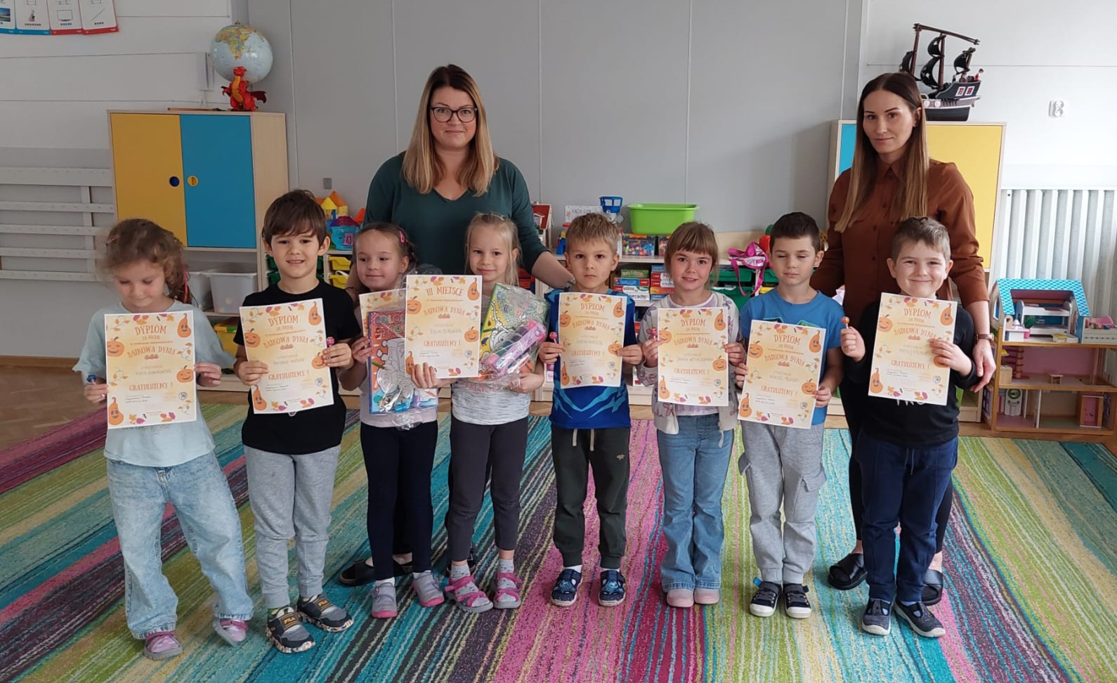 Tegoroczny konkurs „Bajkowa dynia” cieszył się ogromnym zainteresowaniem wśród dzieci i rodziców. Do konkursu zgłoszono wiele wspaniałych, pomysłowych i kolorowych prac, które zachwycały oryginalnością oraz starannością wykonania. Komisja konkursowa miała bardzo trudne zadanie, ponieważ wszystkie dynie były naprawdę wyjątkowe i przepiękne.