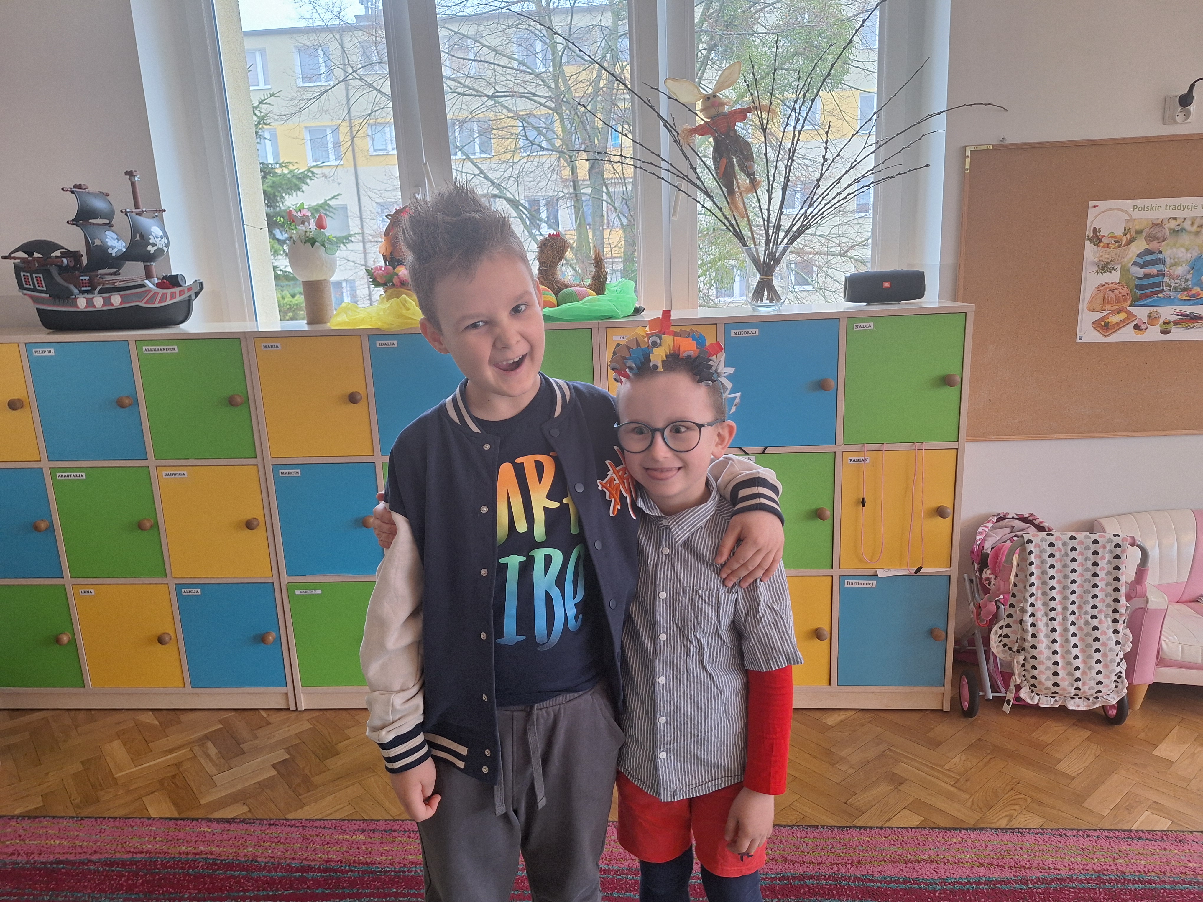 Dzisiejszy dzień rozpoczął się bardzo wesoło – od „Dnia Szalonych Fryzur”. Niektóre dzieci wykazały się ogromną kreatywnością i rzeczywiście przeobraziły się w zupełnie inne osoby!