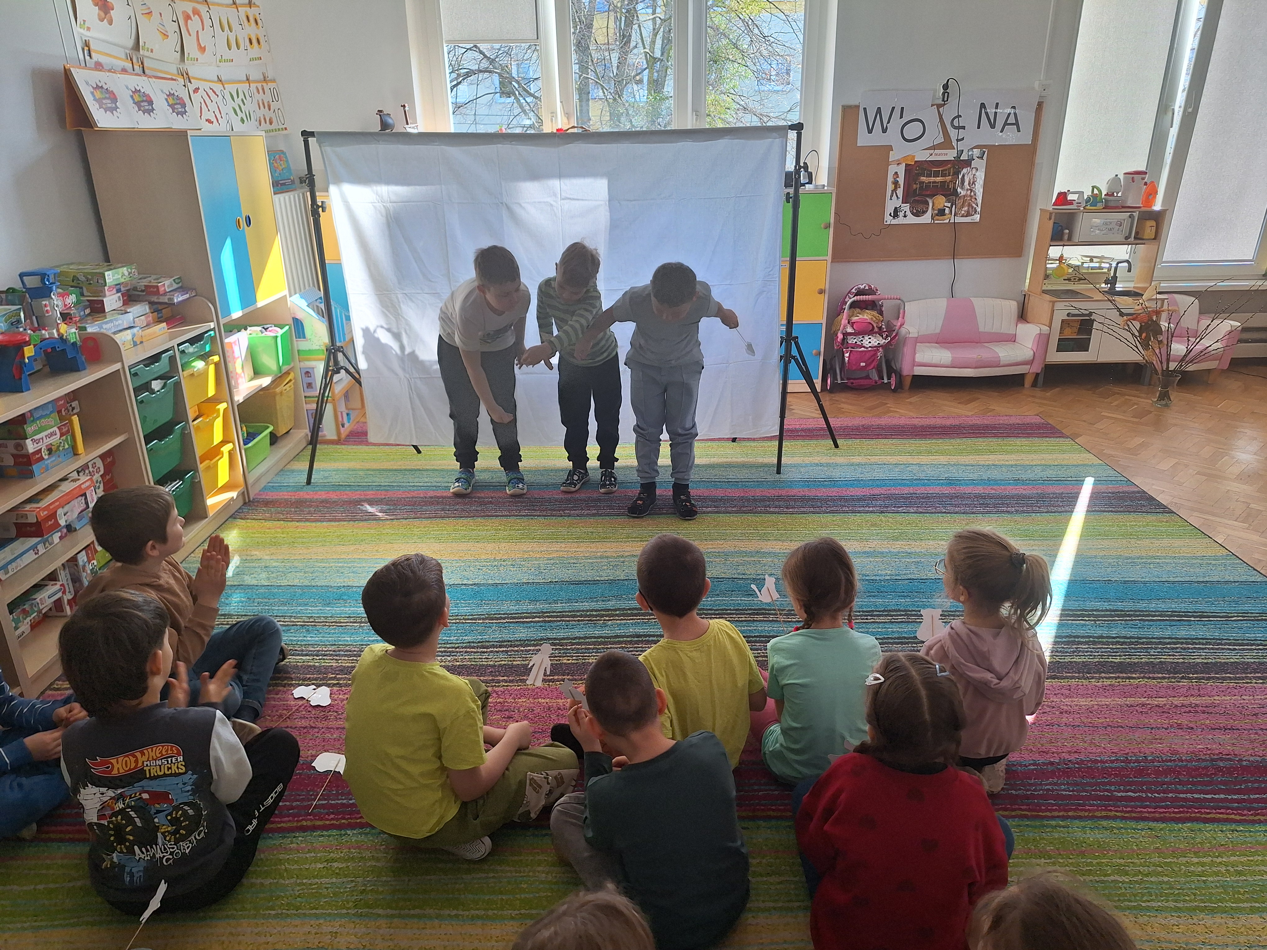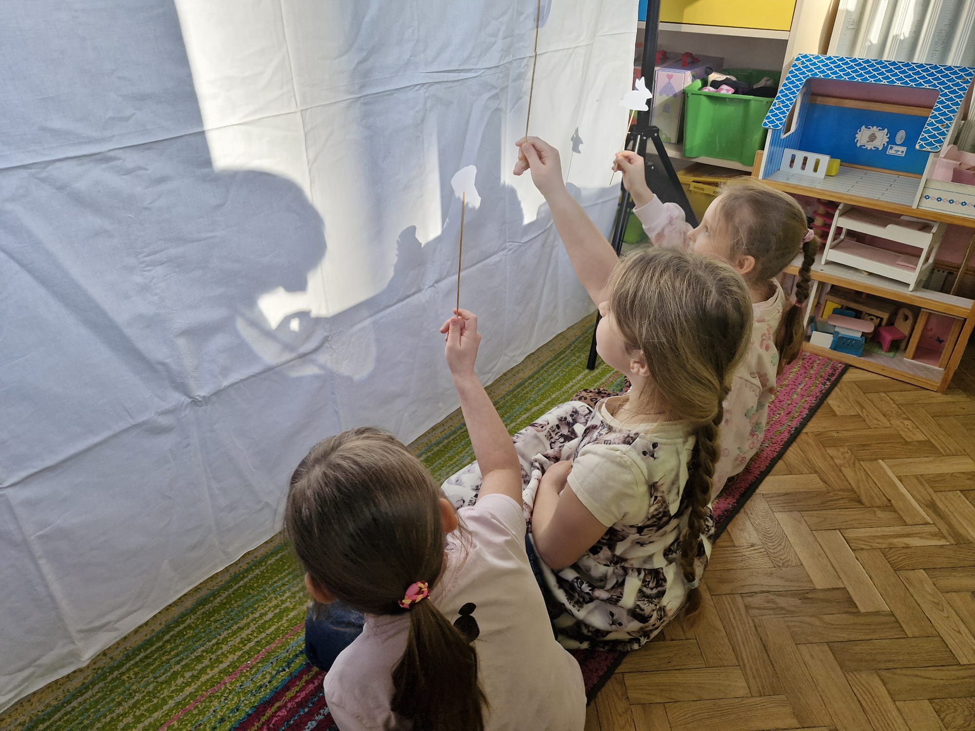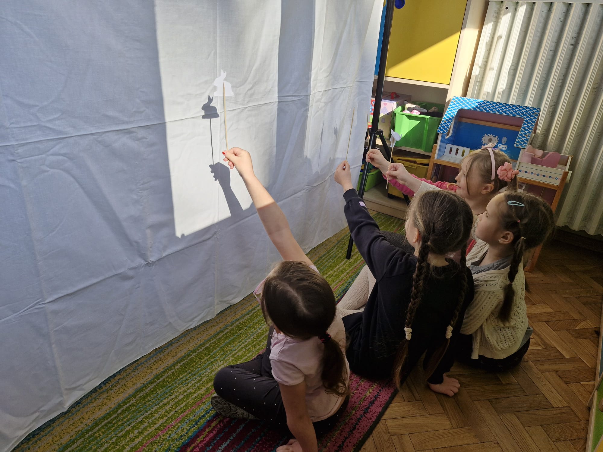 W tym tygodniu dzieci w naszej grupie miały okazję podsumować zdobyte wiadomości na temat teatru i kina poprzez twórczą i angażującą zabawę w teatr cieni.