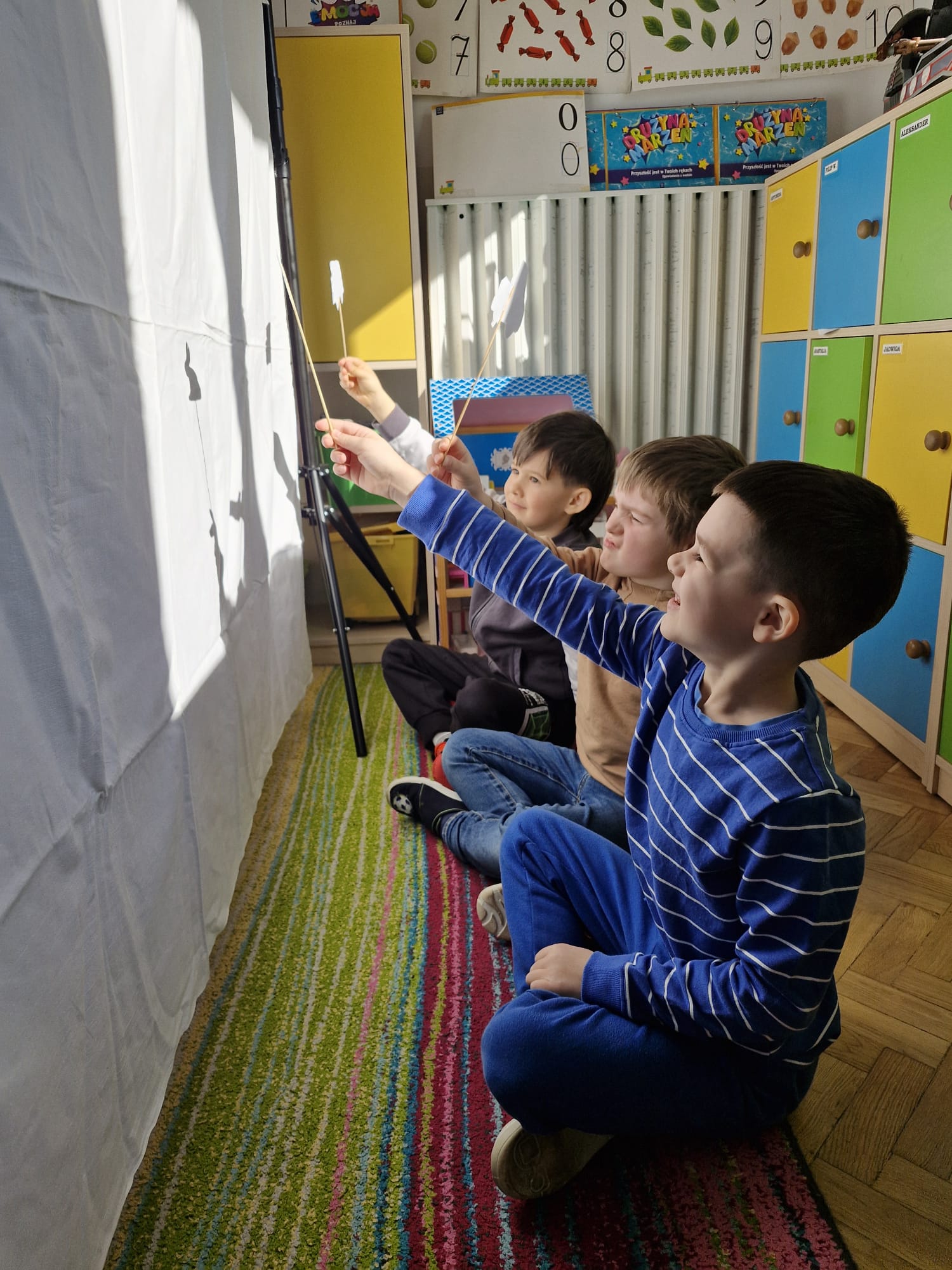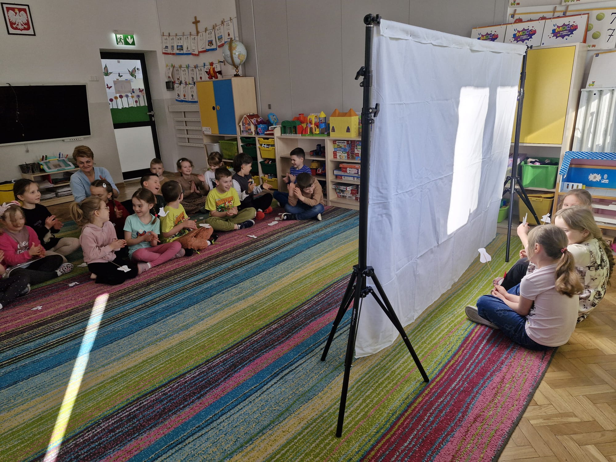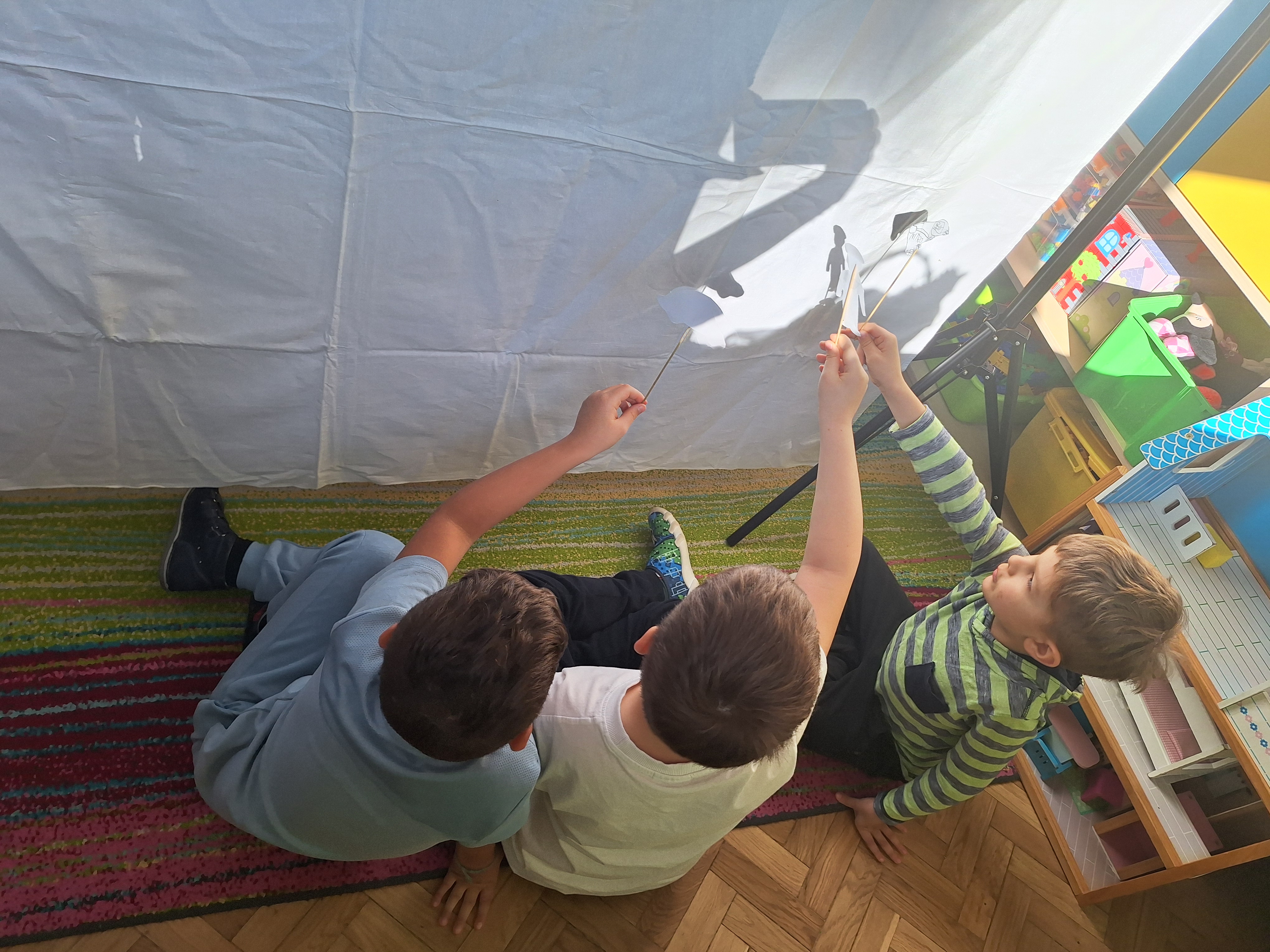 W tym tygodniu dzieci w naszej grupie miały okazję podsumować zdobyte wiadomości na temat teatru i kina poprzez twórczą i angażującą zabawę w teatr cieni.