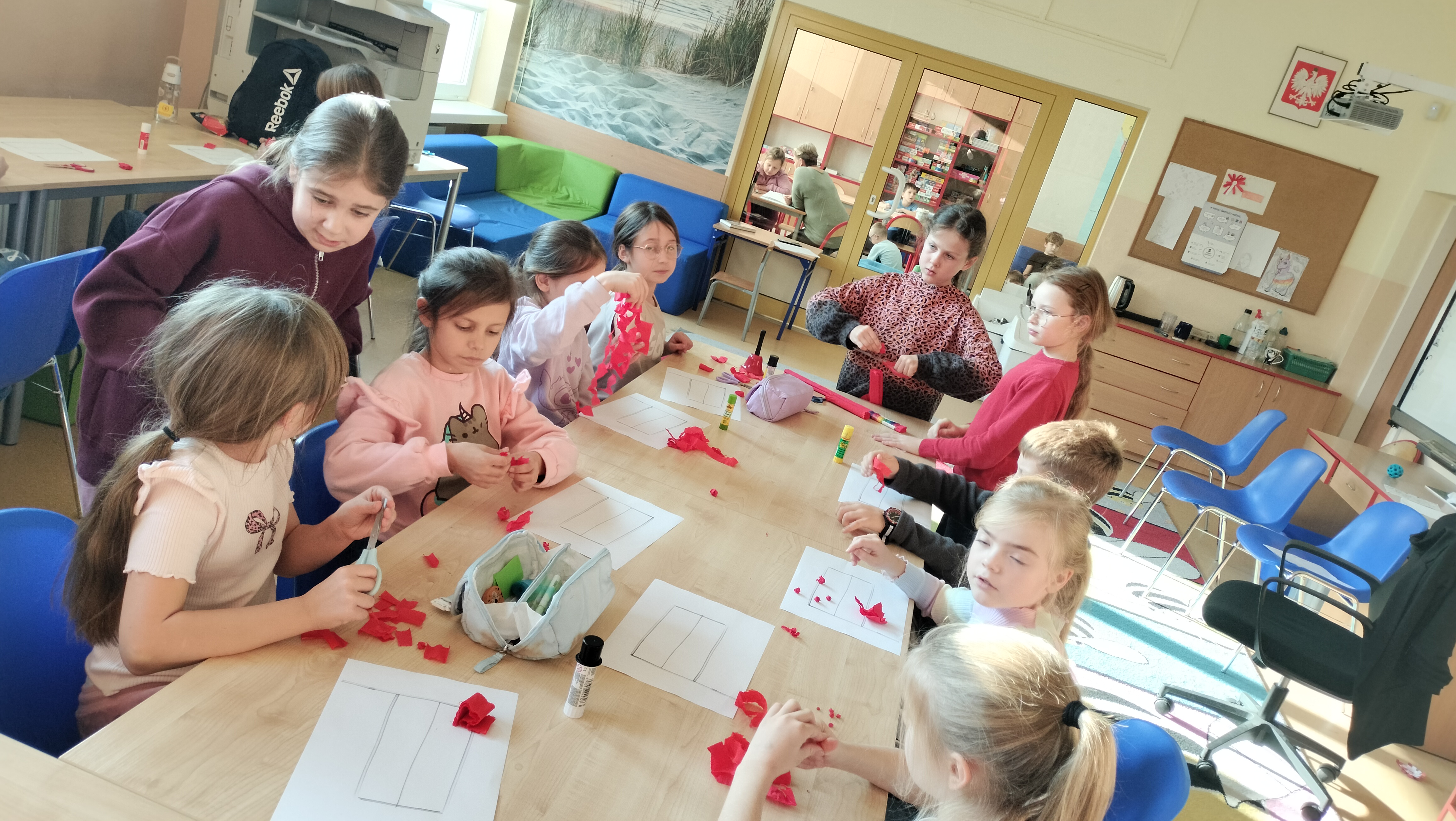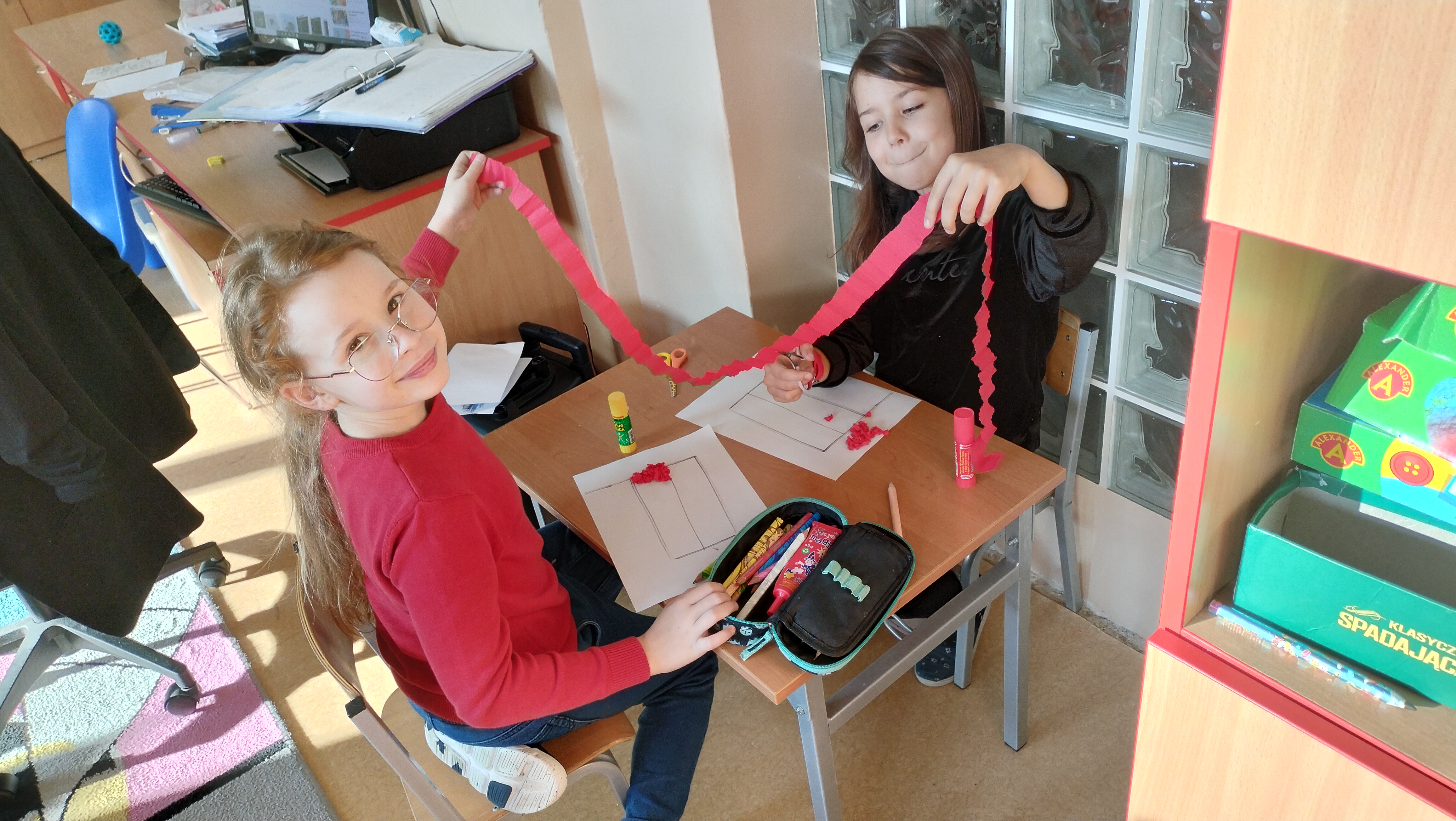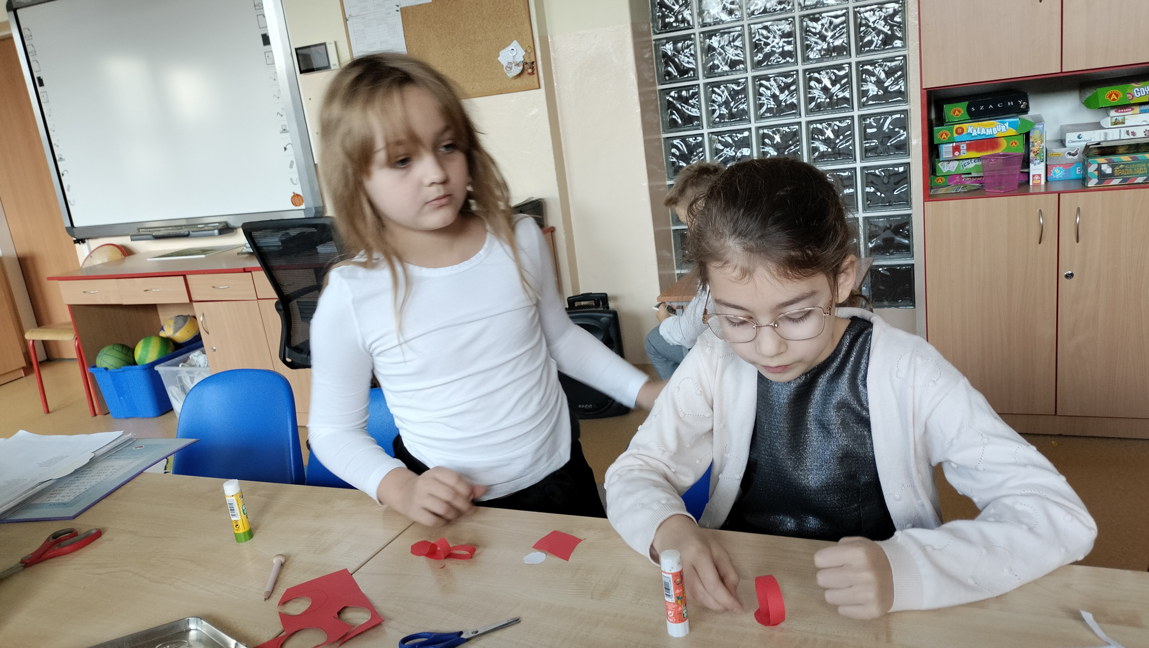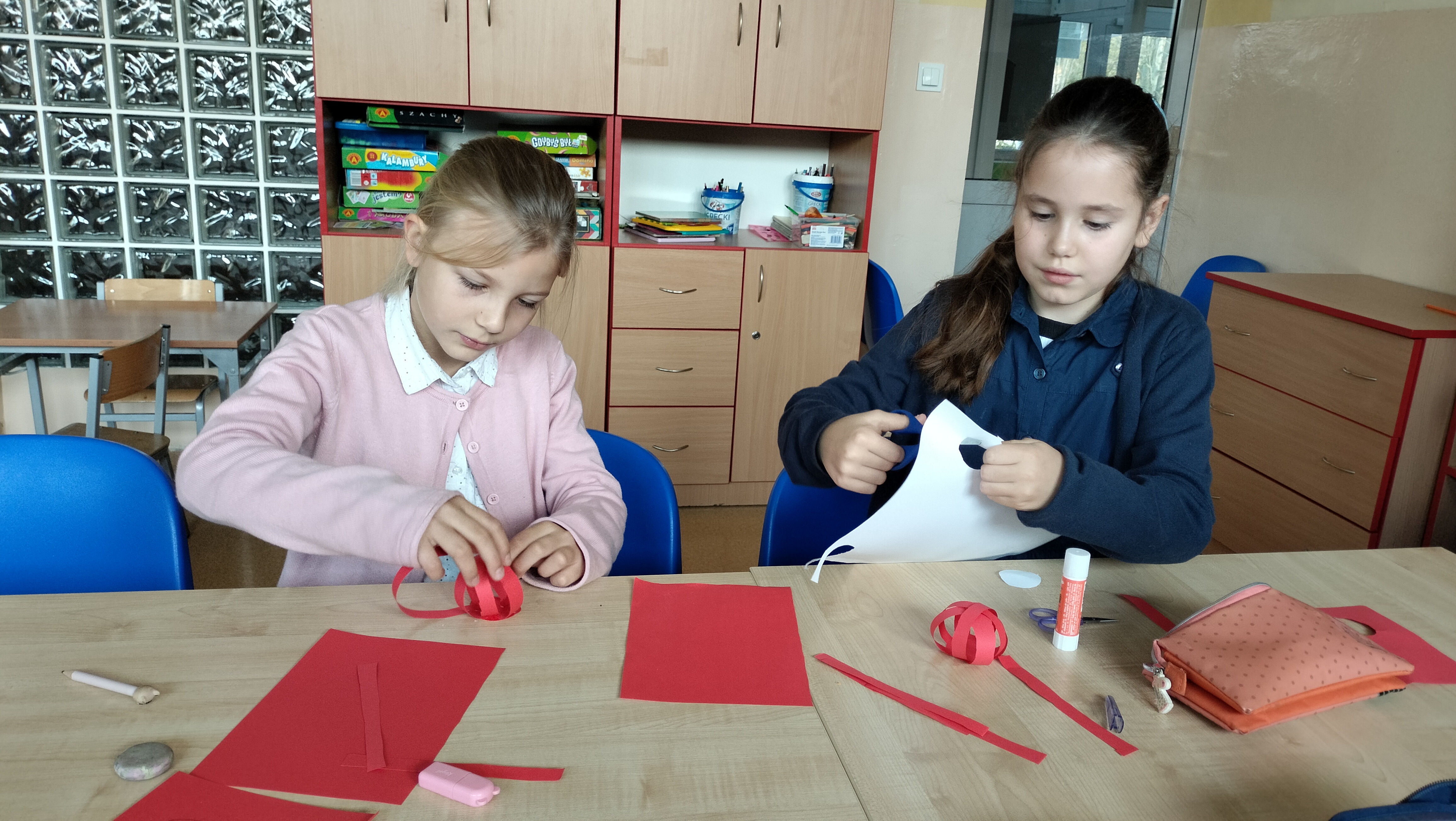 Świętowaliśmy m.in. Dzień Nauczyciela, a innym razem uczennice z klasy trzeciej wcieliły się w rolę nauczycielek i poprowadziły ciekawą lekcję zakończoną pracą plastyczną polegającą na wyklejaniu flagi Polski. Gotowe prace zostały zaprezentowane na tablicy świetlicowej. W związku ze Świętem Niepodległości uczniowie przygotowywali również kotyliony.