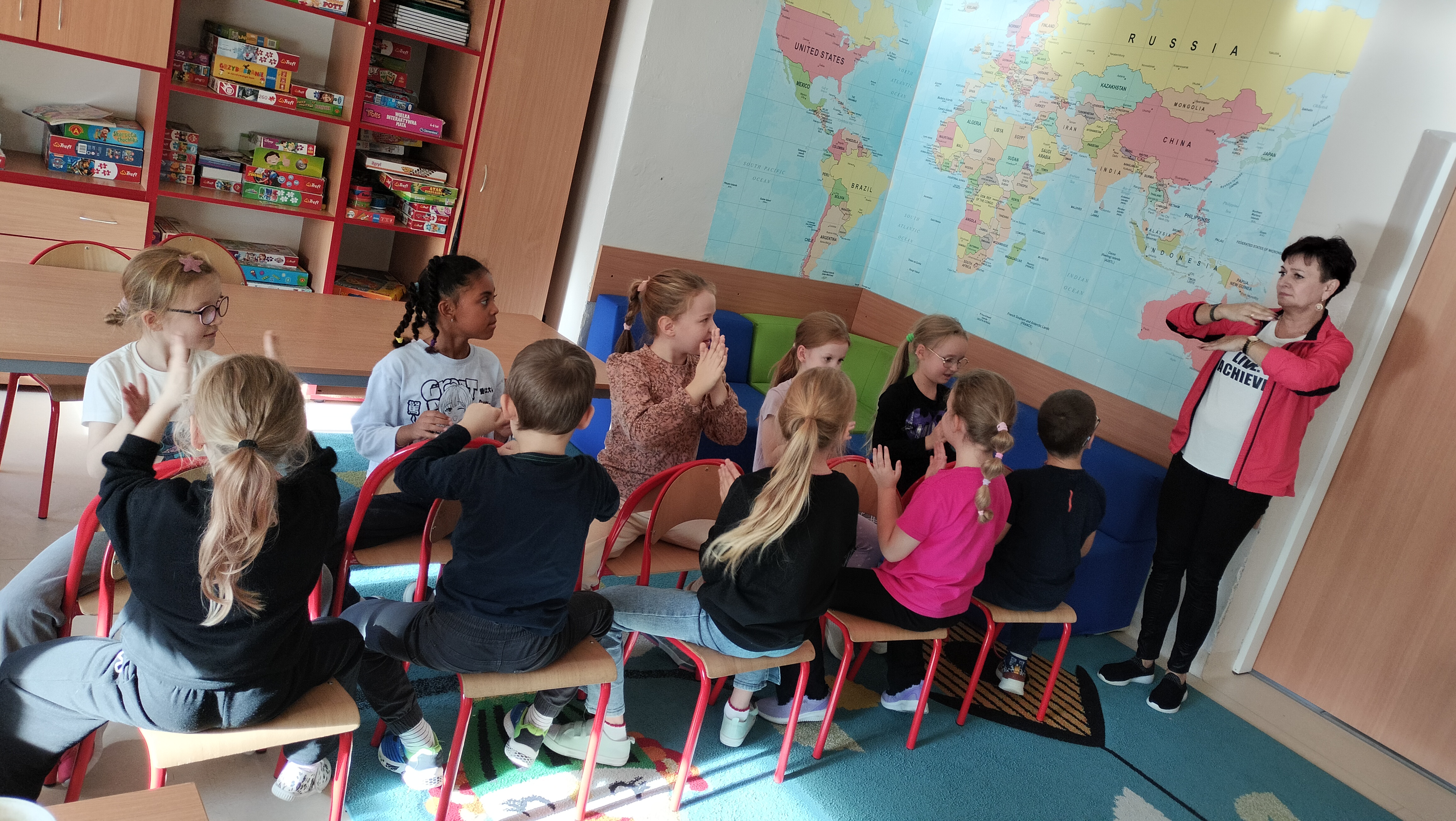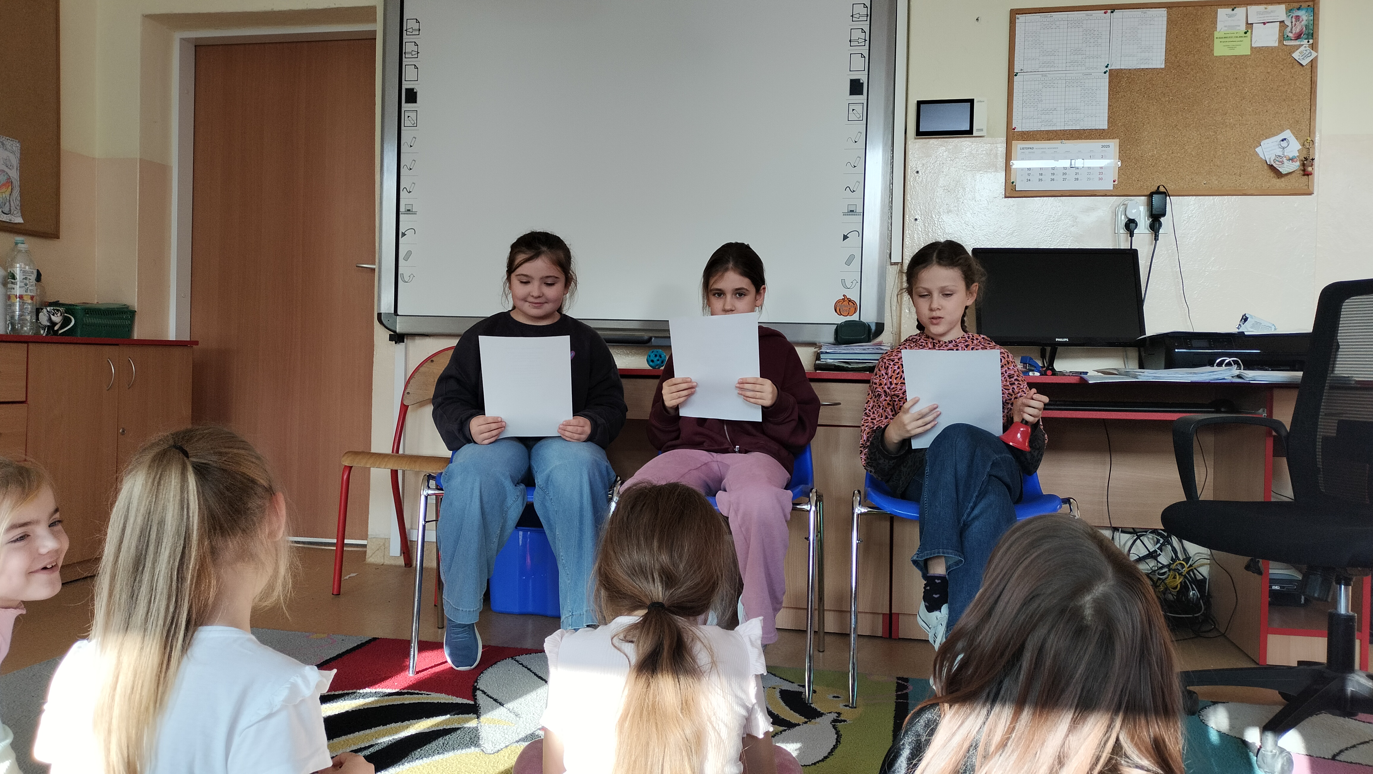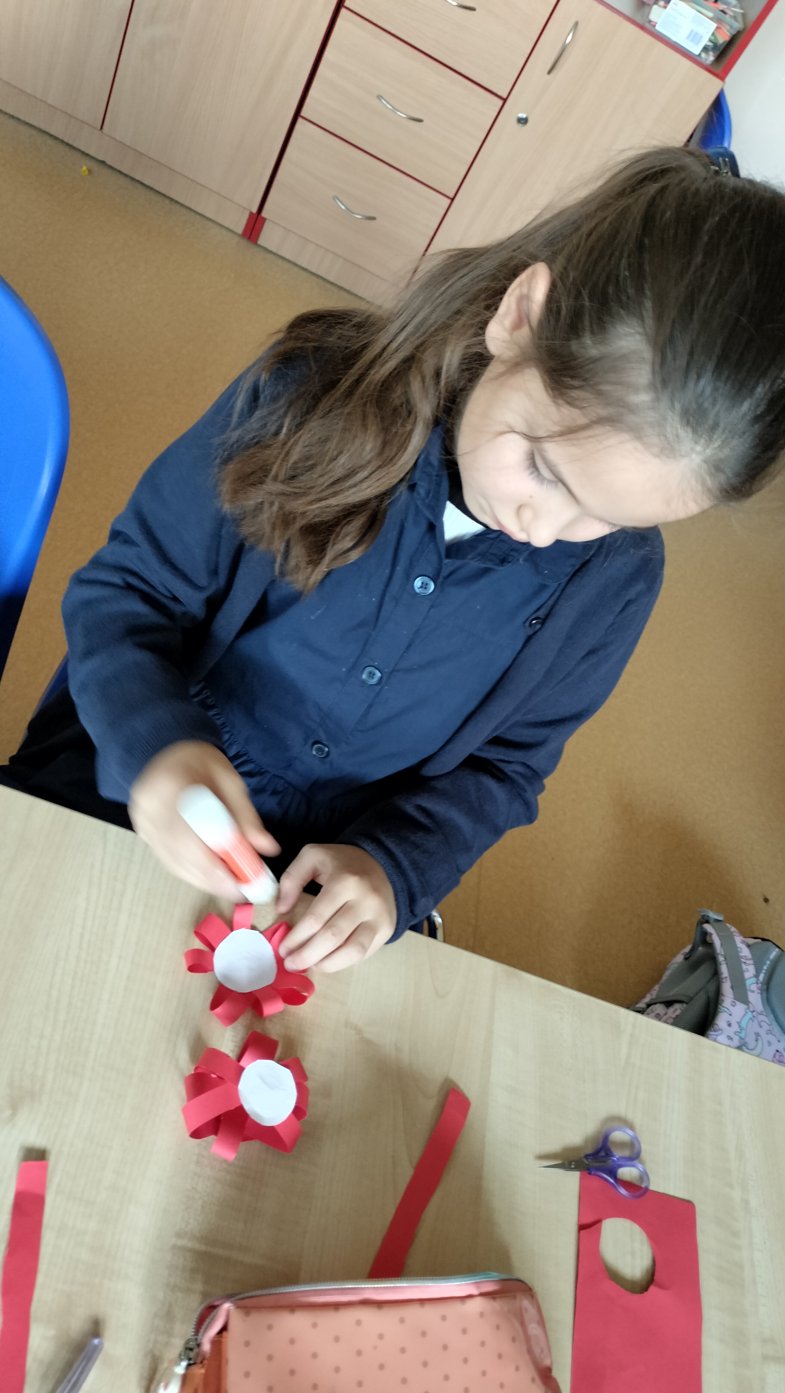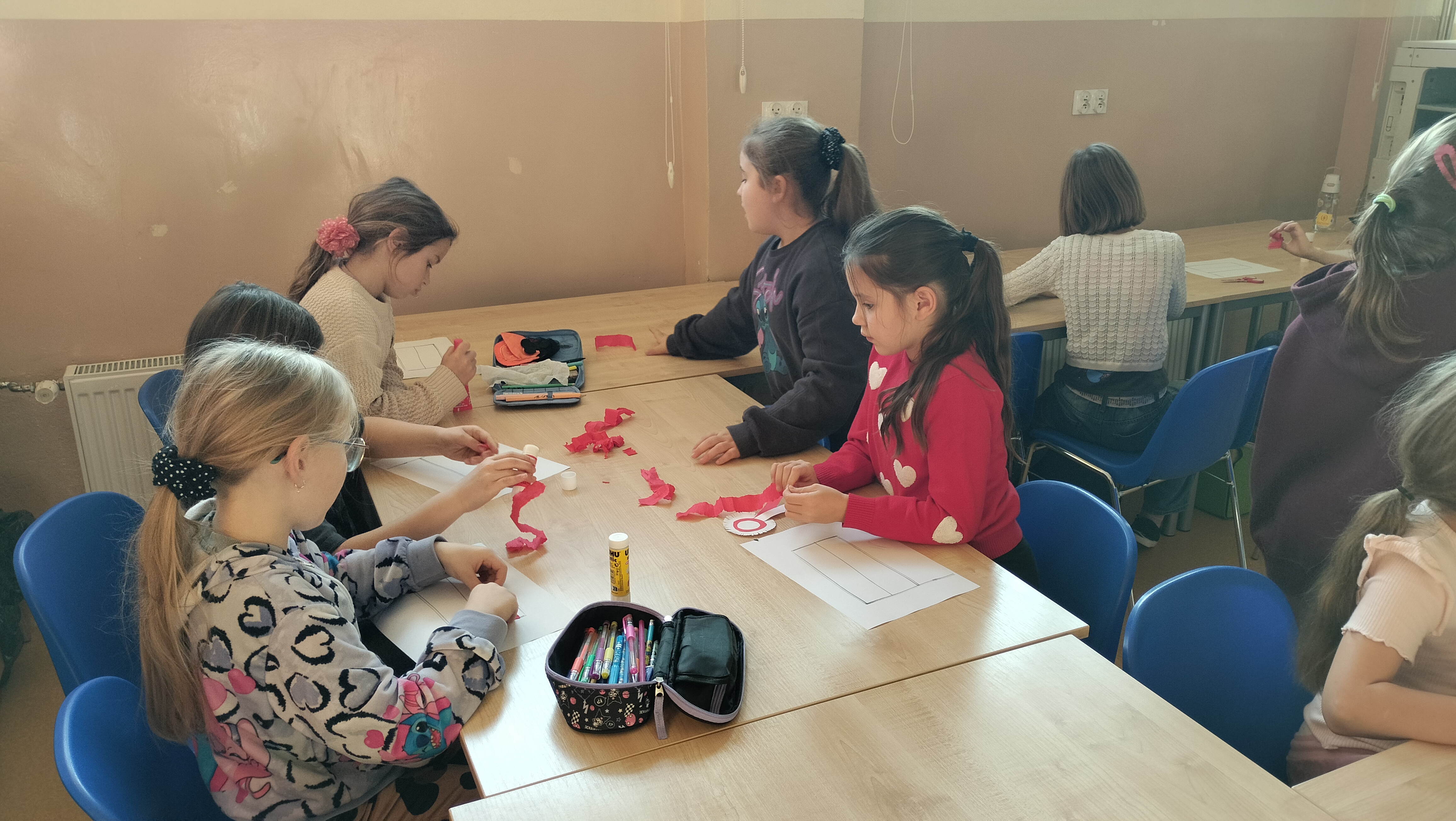 Świętowaliśmy m.in. Dzień Nauczyciela, a innym razem uczennice z klasy trzeciej wcieliły się w rolę nauczycielek i poprowadziły ciekawą lekcję zakończoną pracą plastyczną polegającą na wyklejaniu flagi Polski. Gotowe prace zostały zaprezentowane na tablicy świetlicowej. W związku ze Świętem Niepodległości uczniowie przygotowywali również kotyliony.