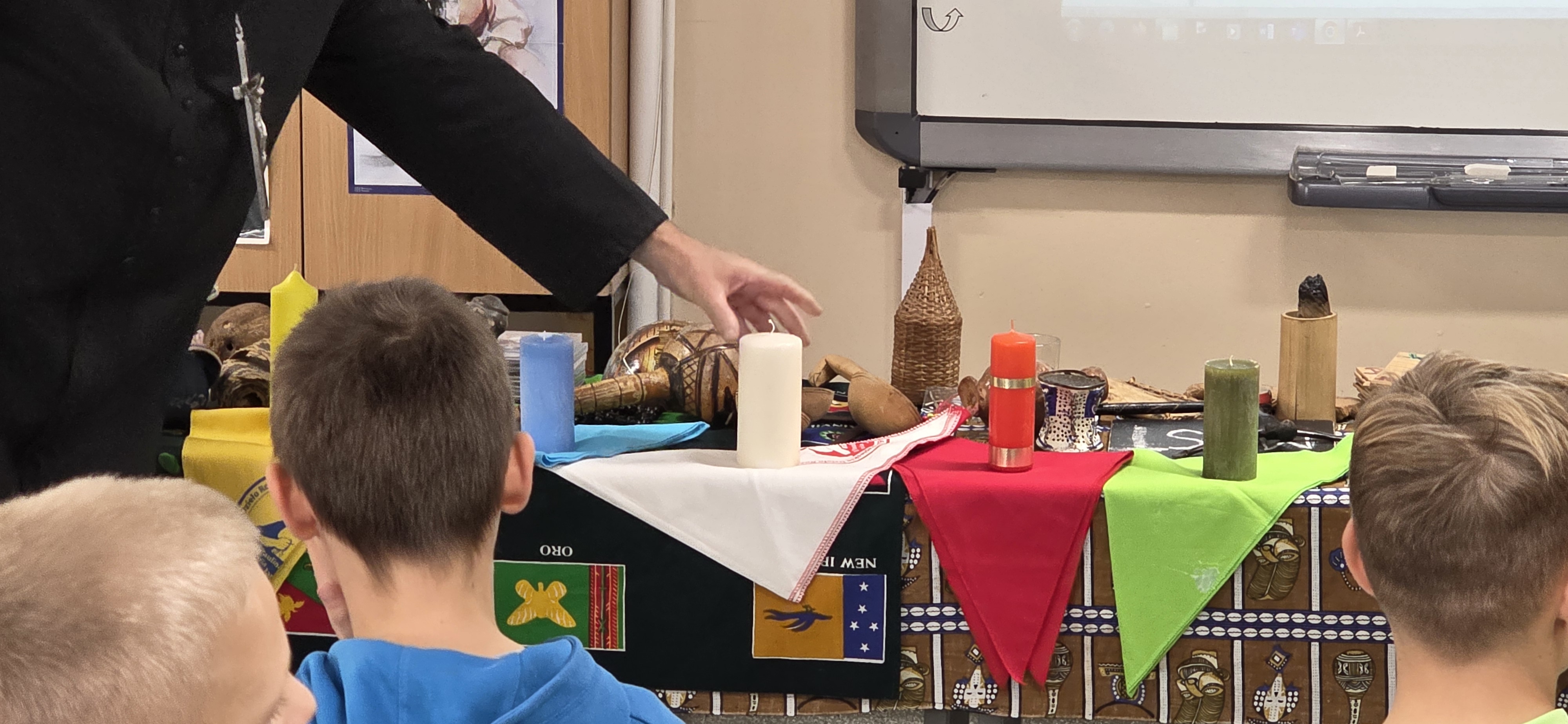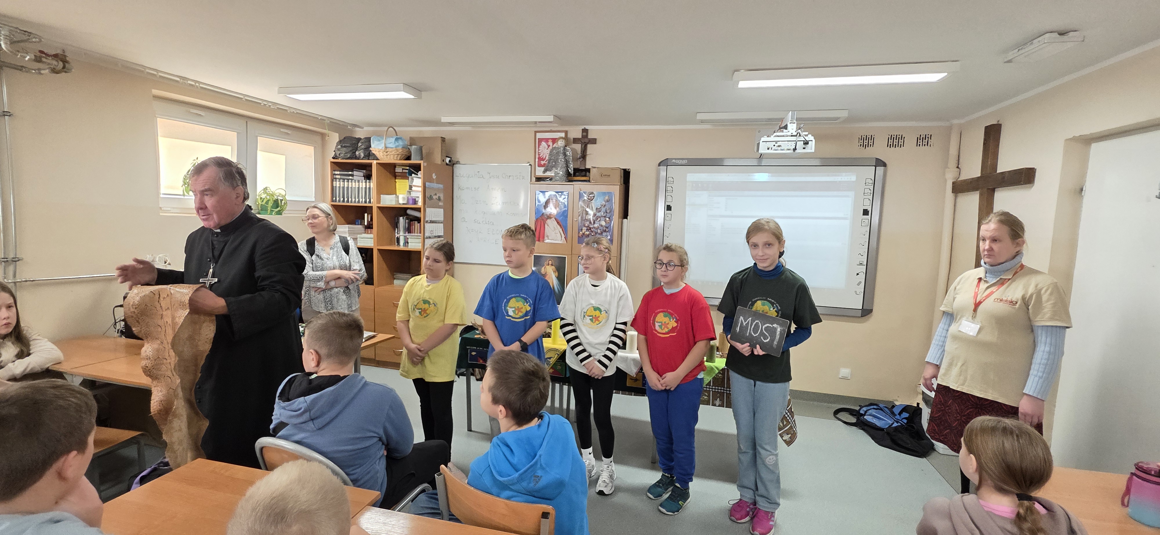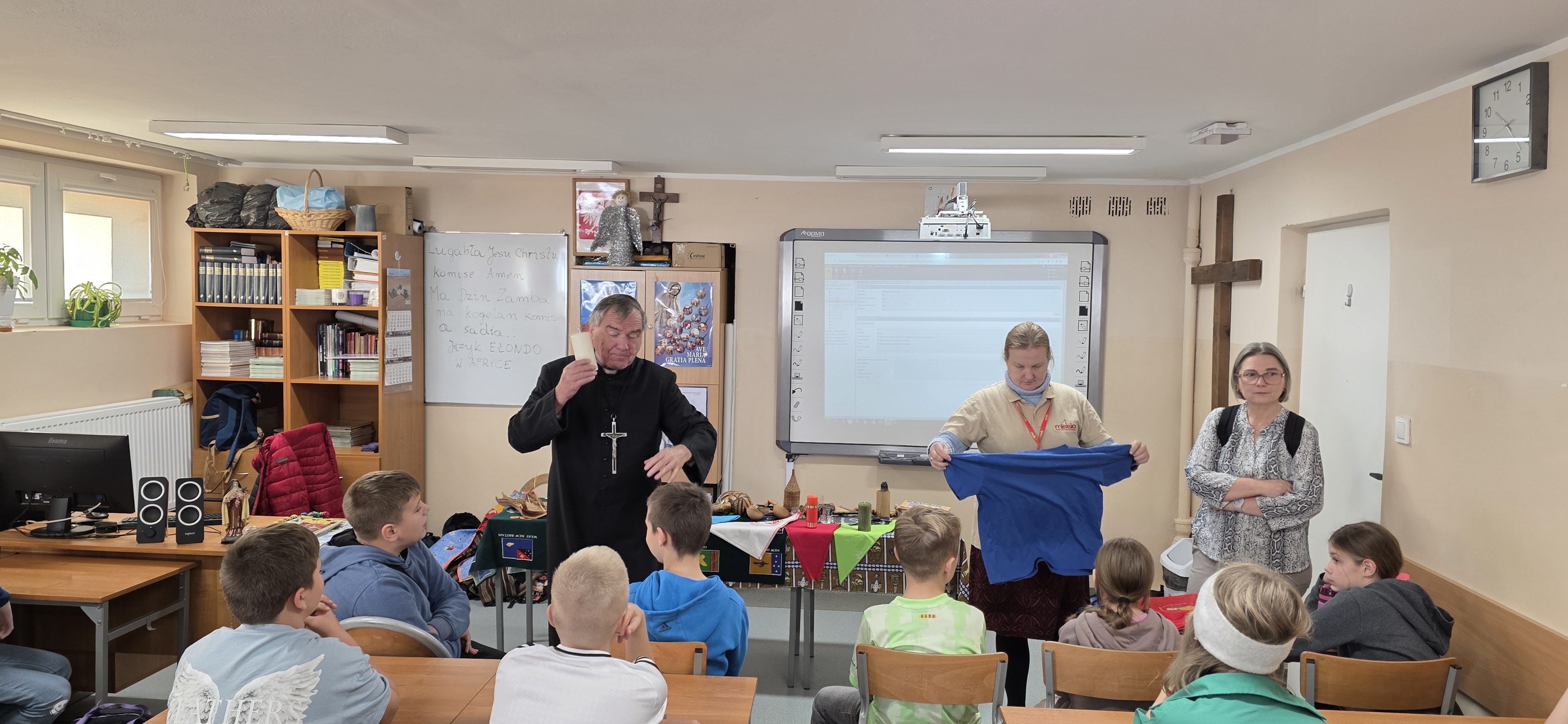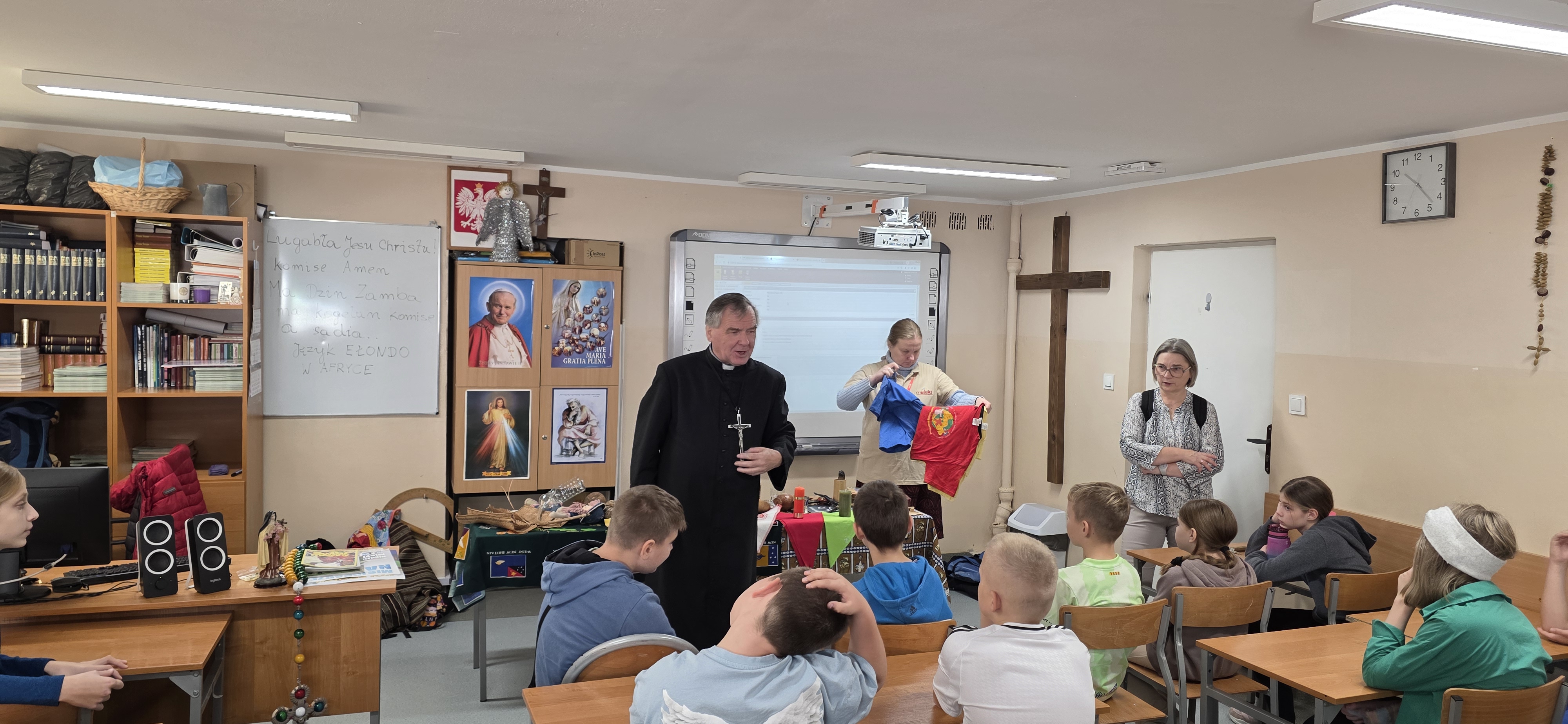 We wtorek, 21 października, uczniowie klas V–VII uczestniczyli w wyjątkowym spotkaniu z ks. Markiem Czajkowskim — misjonarzem, który przez wiele lat posługiwał w Kamerunie.