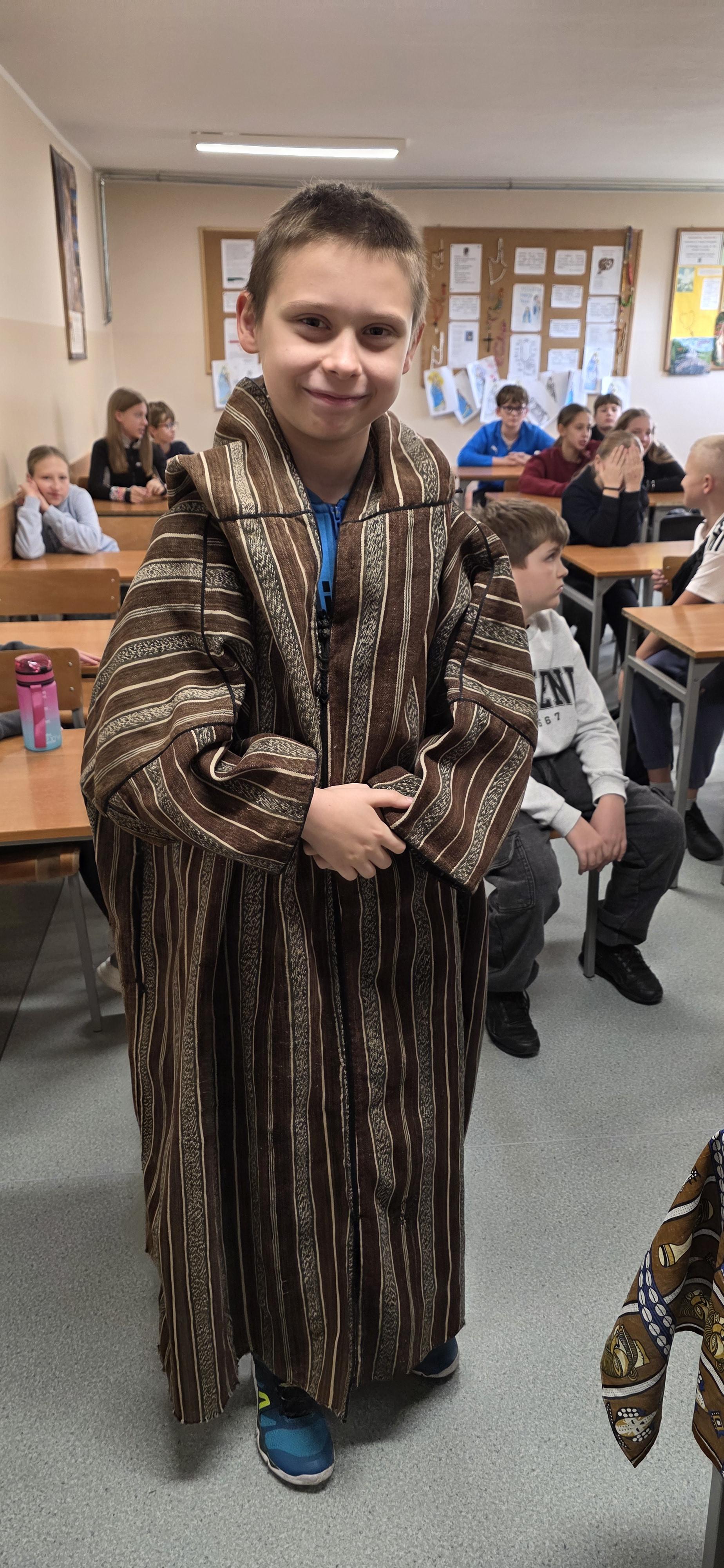 Spotkanie miało charakter edukacyjny i formacyjny — pełne ciekawostek, uśmiechu i inspirujących rozmów. Uczniowie aktywnie uczestniczyli, zadawali pytania, przymierzali stroje i poznawali kulturę Kamerunu poprzez bezpośredni kontakt z misjonarzem i jego pamiątkami.