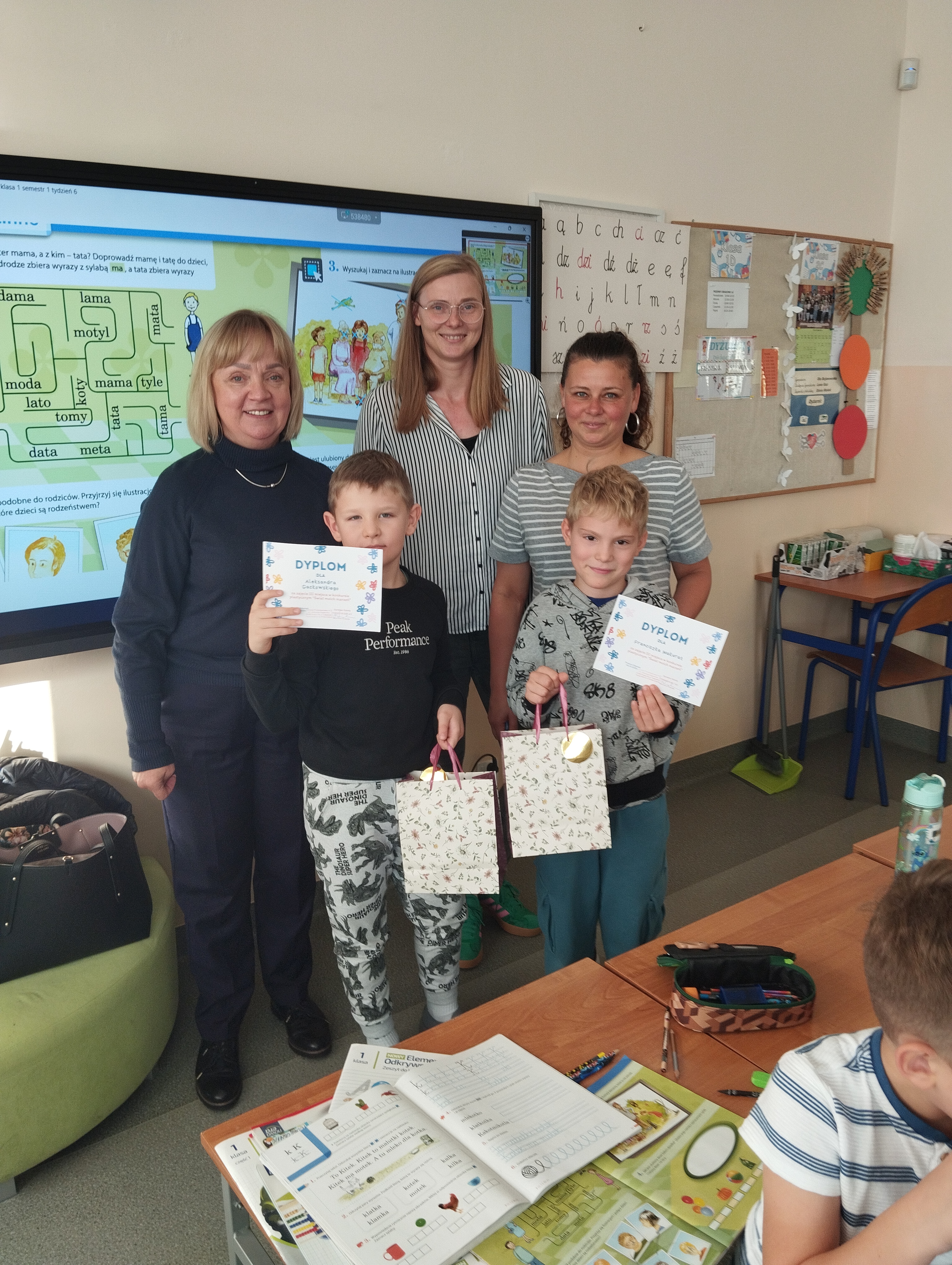 Tydzień Szczęścia w naszej szkole był pełen radości i pozytywnych emocji , obfitował w różnorodne wydarzenia przynoszące radość i uśmiech na twarze uczniów. Chłopcy z naszej klasy wzięli udział w konkursie „Świat moich marzeń” i odnieśli wielki sukces, zdobywając III miejsce. Ich praca była bardzo pomysłowa i starannie wykonana. Nagroda została wręczona przez Panią wicedyrektor Jolantę Janiuk.