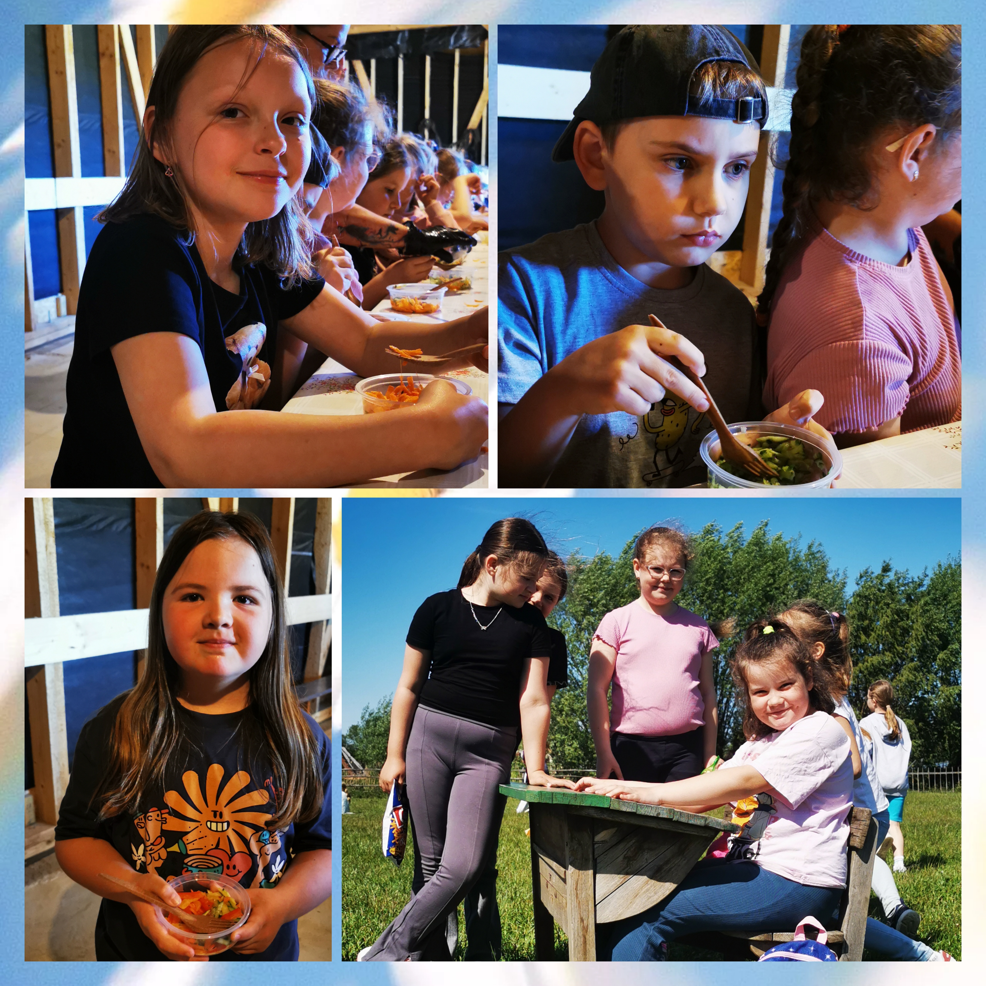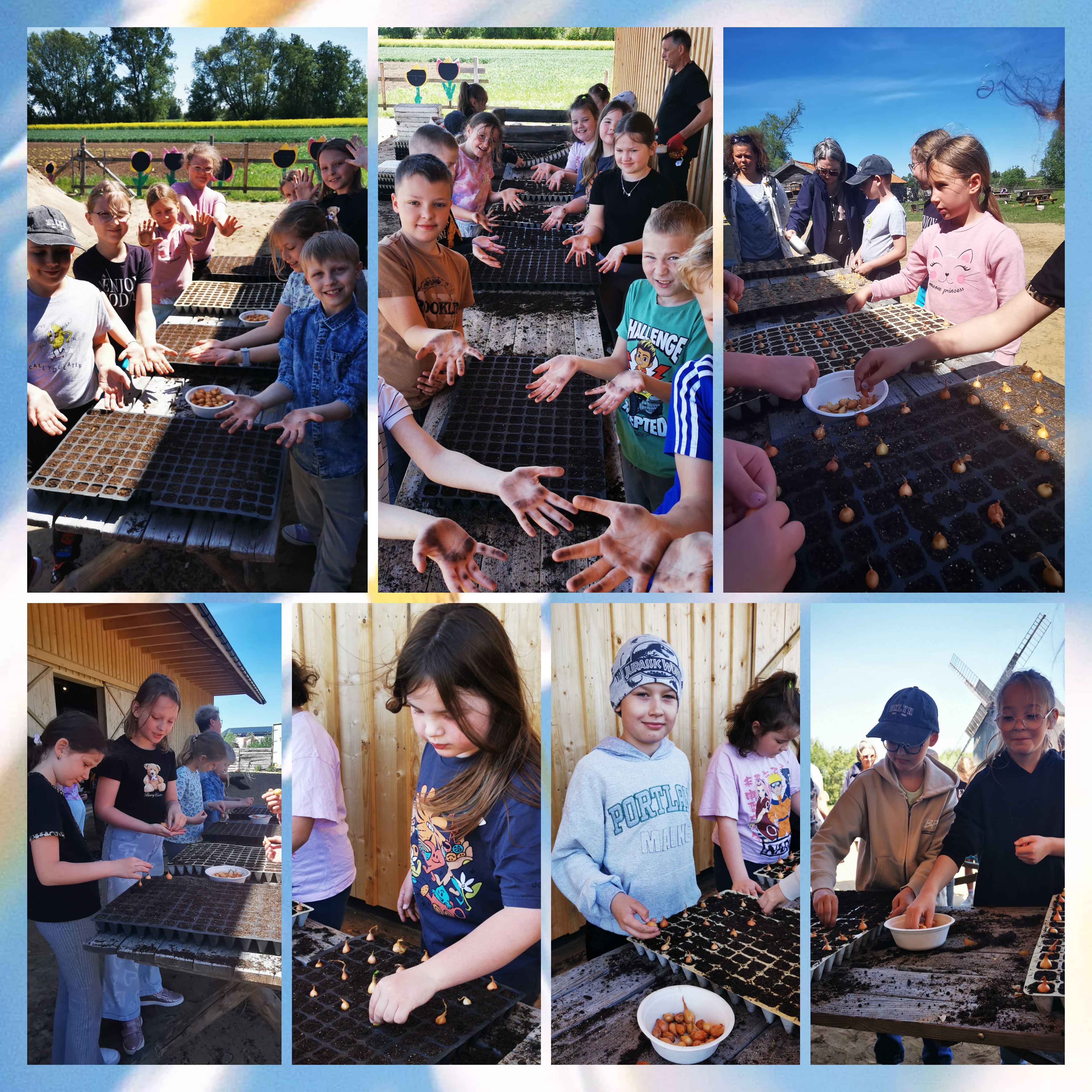 Dowiedzieliśmy się wielu ciekawostek oraz poznaliśmy praktyczne informacje o uprawie roślin na polu. Samodzielnie sadziliśmy cebulki. Uczestniczyliśmy w zajęciach kreatywnych, a także własnoręcznie przygotowywaliśmy surówki. Oczywiście dla zdrowotności odbyła się degustacja surówek. Piękne miejsce, słoneczna pogoda i wiele form aktywnego spędzania czasu wśród zwierząt gospodarskich sprawiało, że czas niespodziewanie szybko mijał. Największym zainteresowaniem przez drugoklasistów cieszyły się niesforne kozy, które próbowały zjeść nasze drugie śniadanie i zerkać do naszych plecaków.