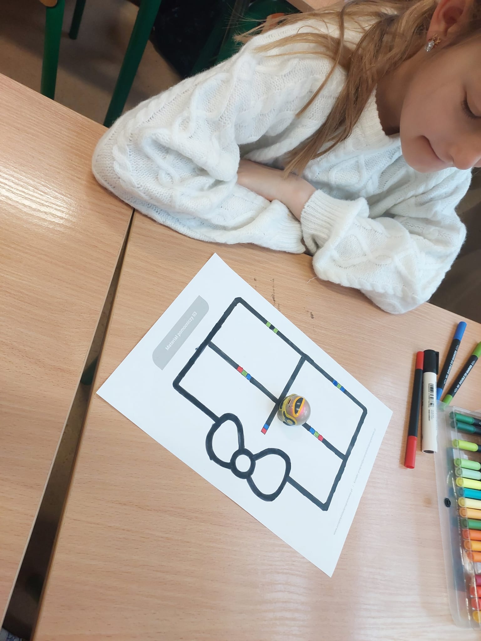 Podczas zajęć dzieci uczą się podstaw kodowania w sposób dostosowany do ich wieku, głównie poprzez zabawę i działania praktyczne. Uczniowie pracują m.in. z robotami edukacyjnymi Ozobot oraz Genibot, które pomagają zrozumieć zasady programowania, planowania i rozwiązywania problemów.