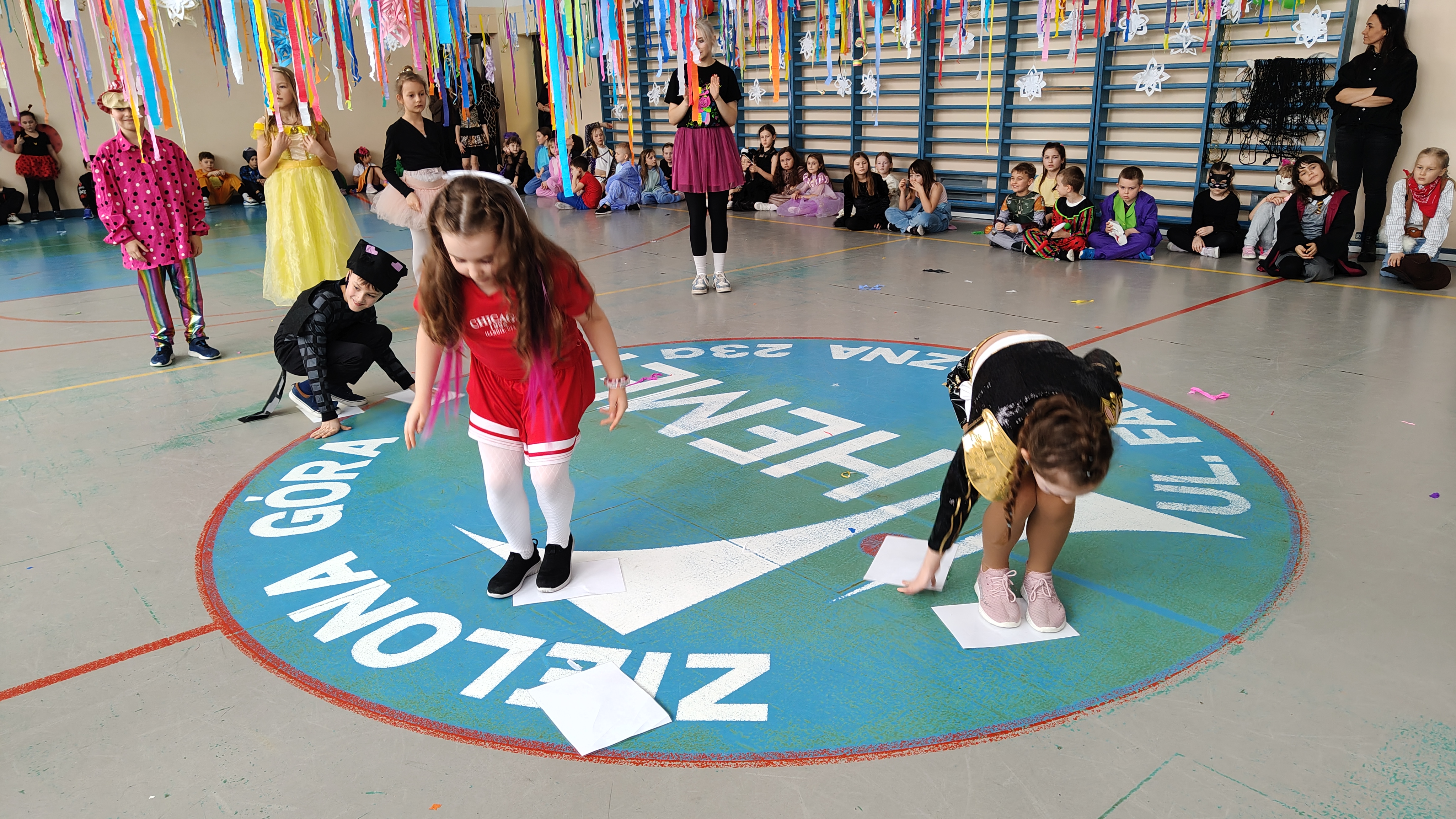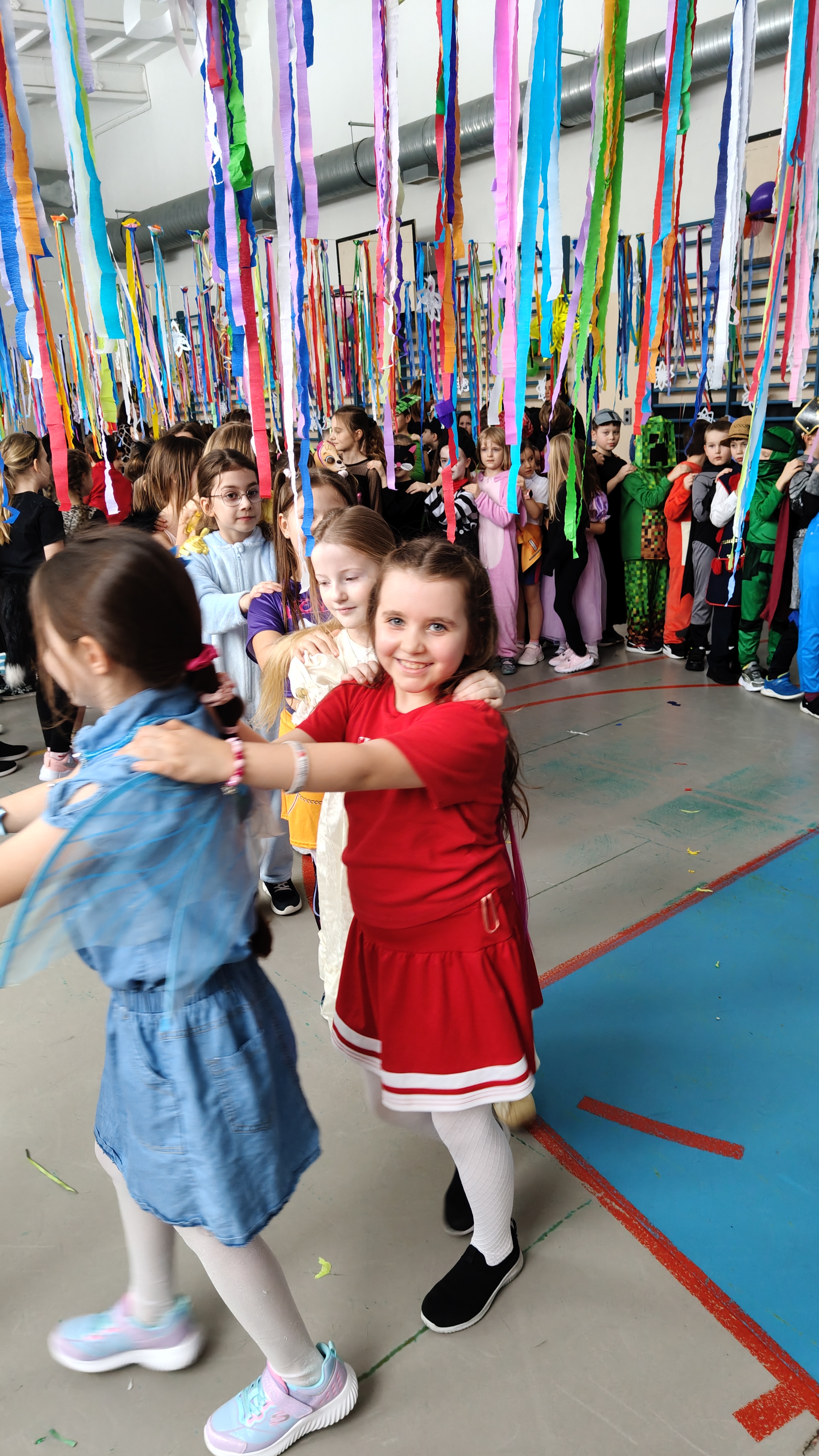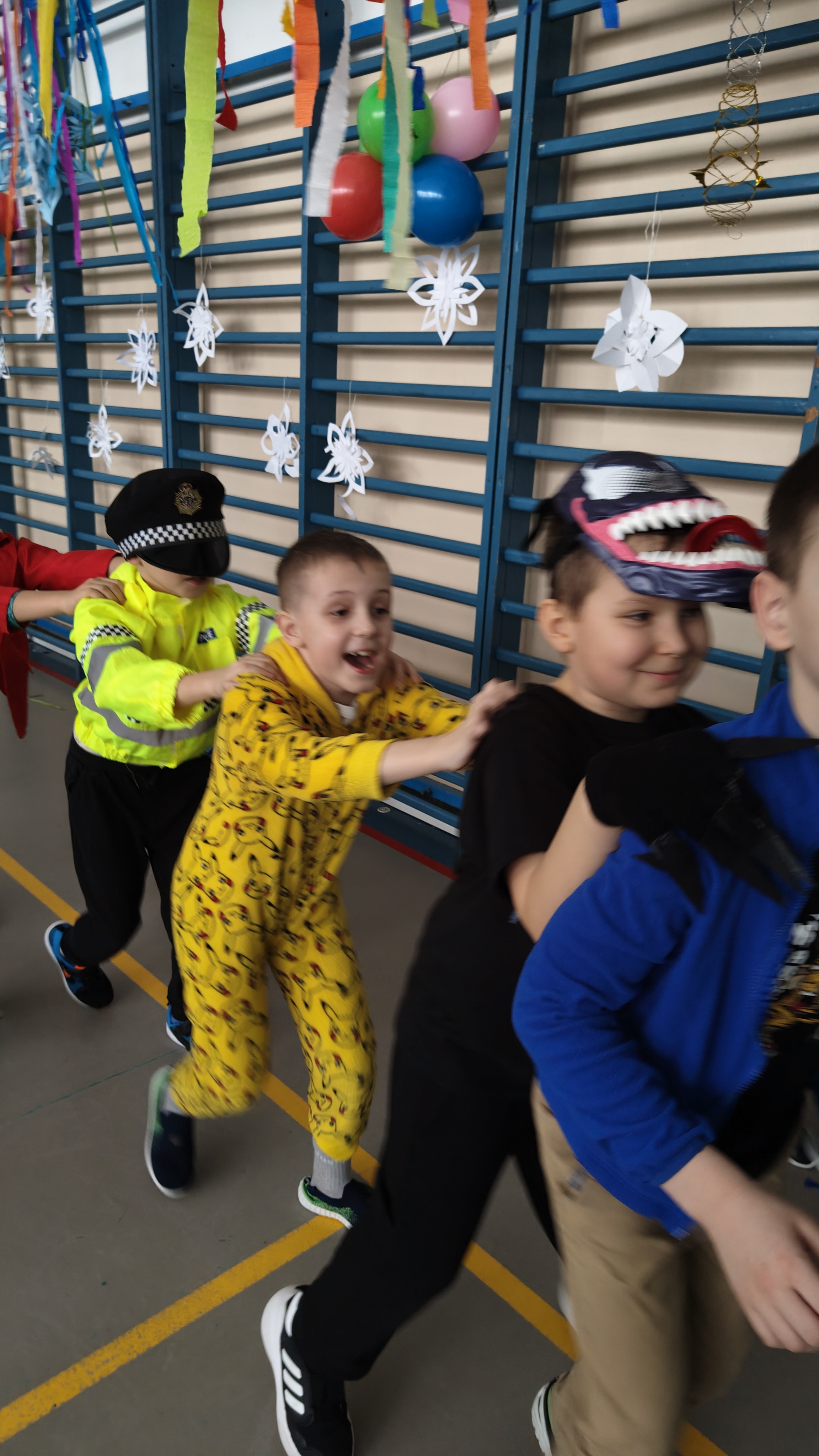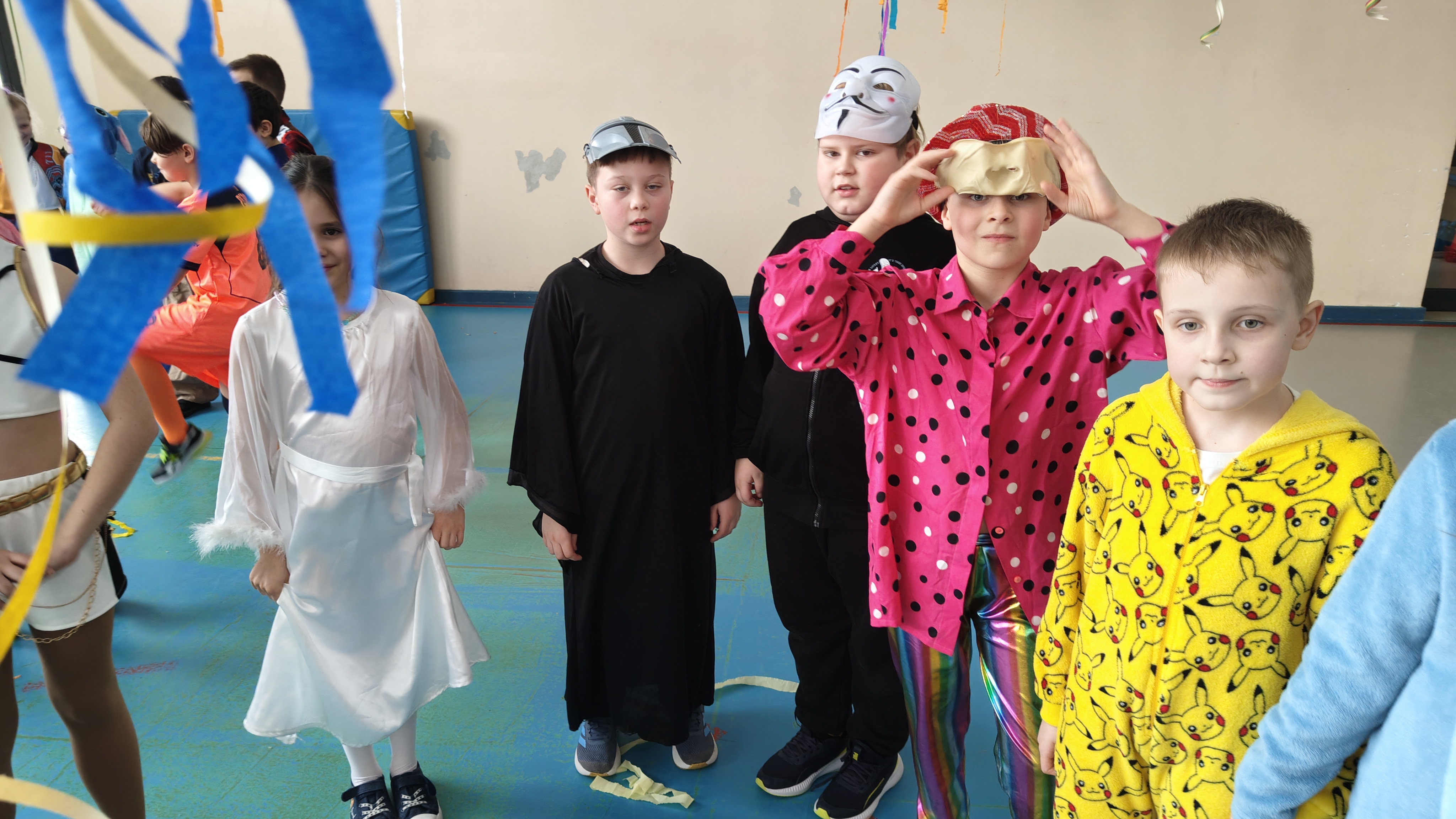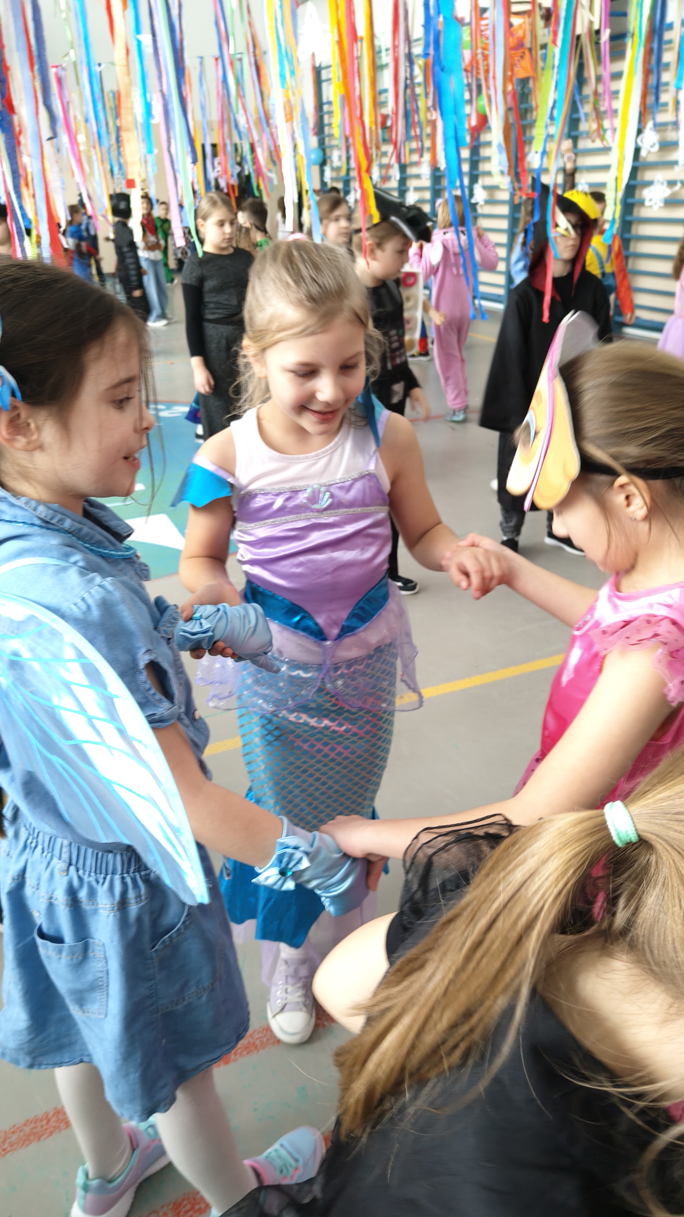 W "tłusty czwartek" 12.02. odbył się w szkole bal karnawałowy dla klas 1-3, prowadzony przez Szkołę Tańca "GABI". Różnorodne stroje, dobry humor i muzyka zagwarantowały świetną zabawę, przeplataną konkursami sprawnościowymi. Aby tradycji stało się zadość, na zmęczonych uczniów w sali czekał słodki poczęstunek, zorganizowany przez rodziców. Natomiast nazajutrz obchodziliśmy "WALENTYNKI": była poczta walentynkowa, symboliczny lizak dla każdego oraz pamiątkowe zdjęcie z przepiękną dekoracją w tle.